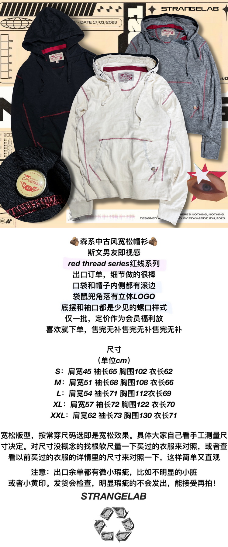 日本單 森系中古風寬鬆舒適棉質帽衫 oversize男友風情侶連帽運動衫
