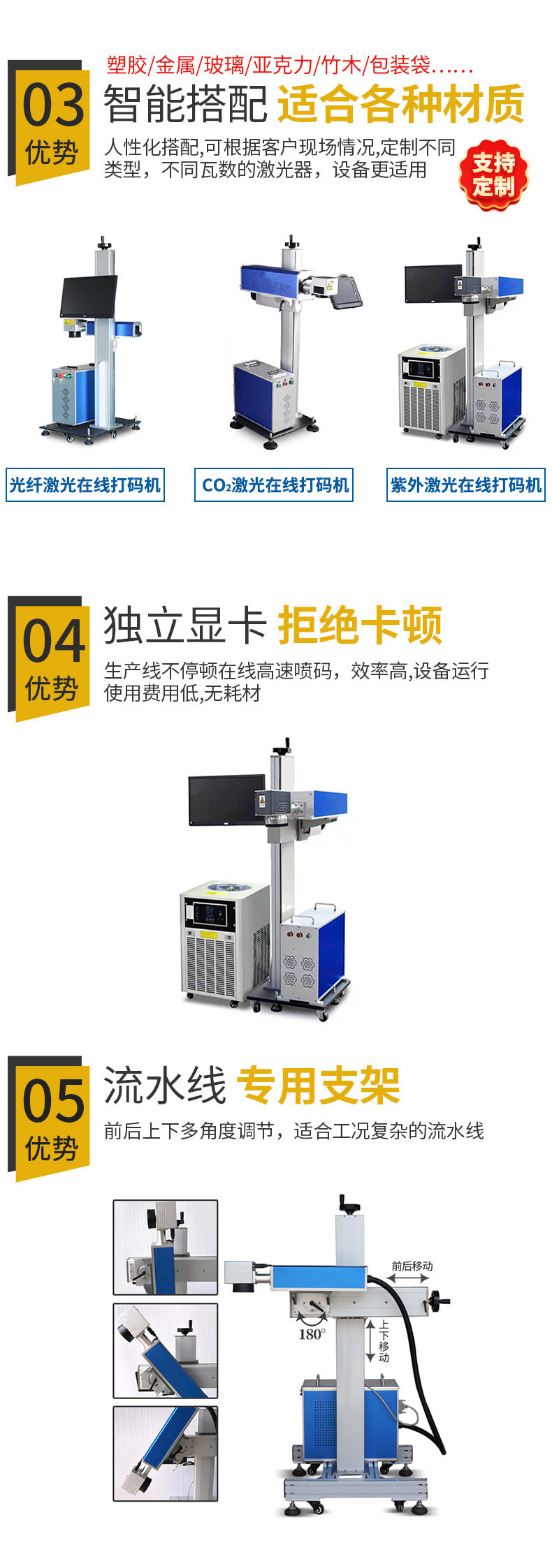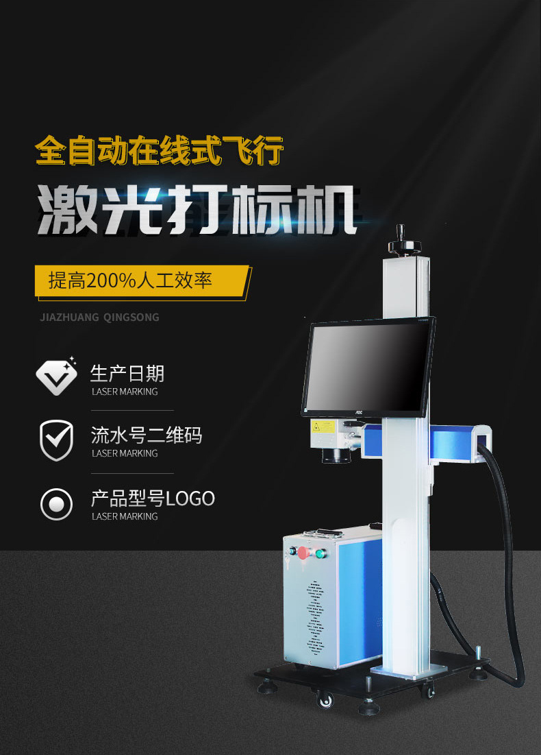 飞行激光喷码机纸盒包装袋日期批号全自动流水线在线式激光打码机