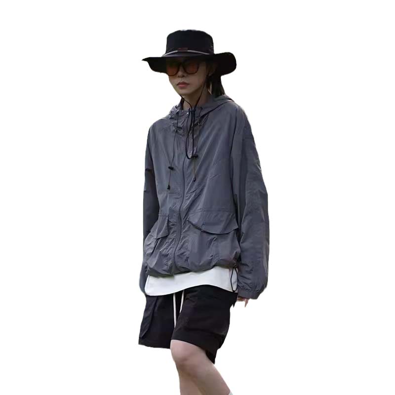 連帽防曬衣女夏季薄款透氣抗UV大尺碼工裝外套戶外衝鋒衣防曬服