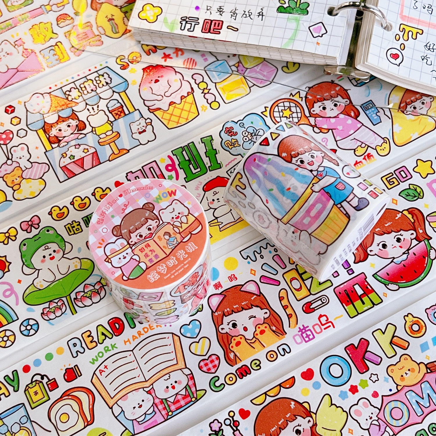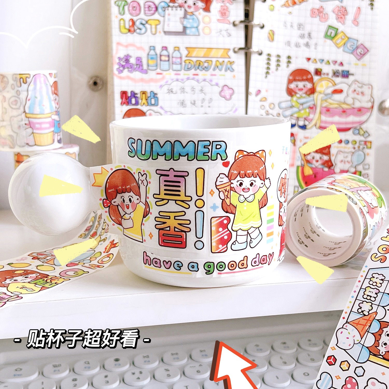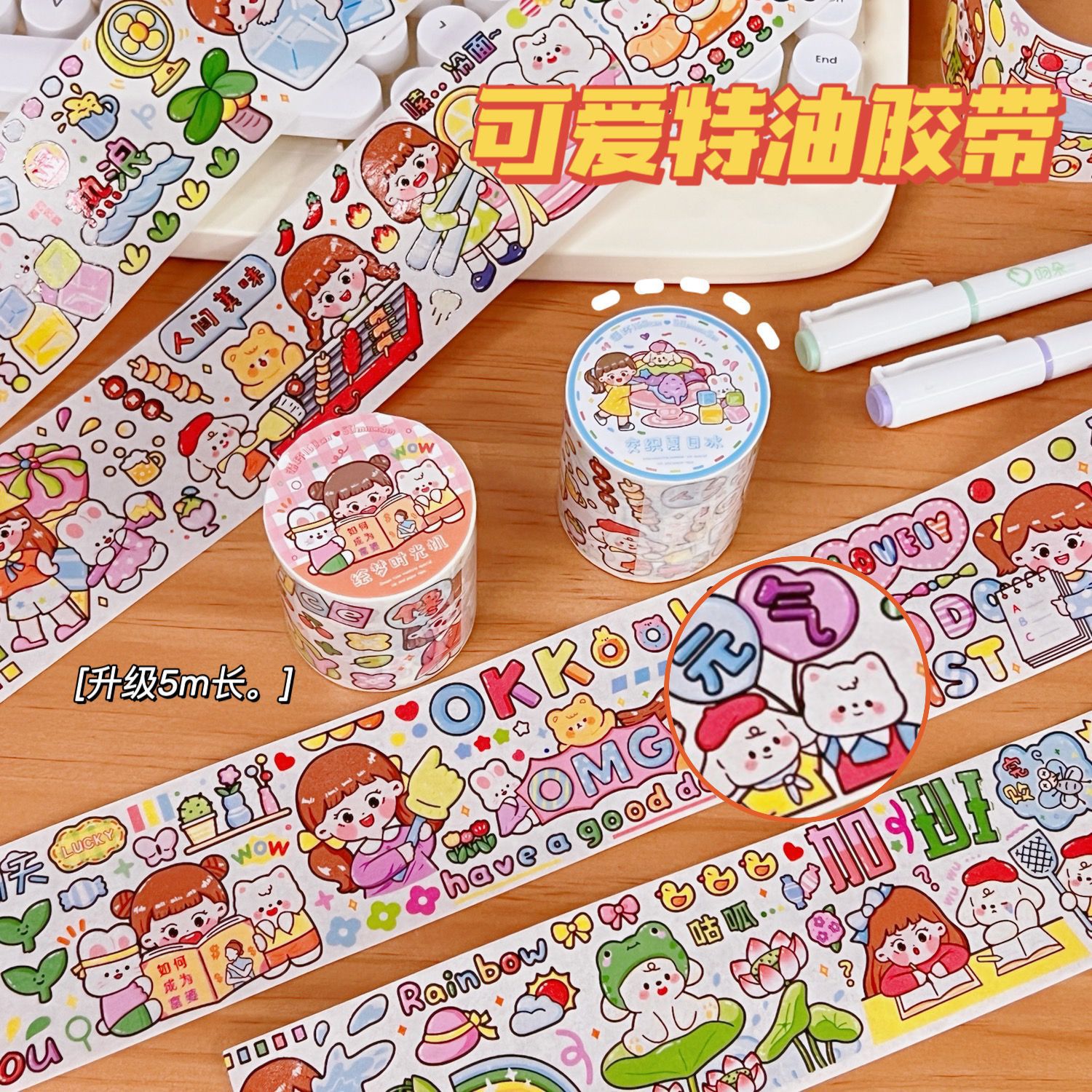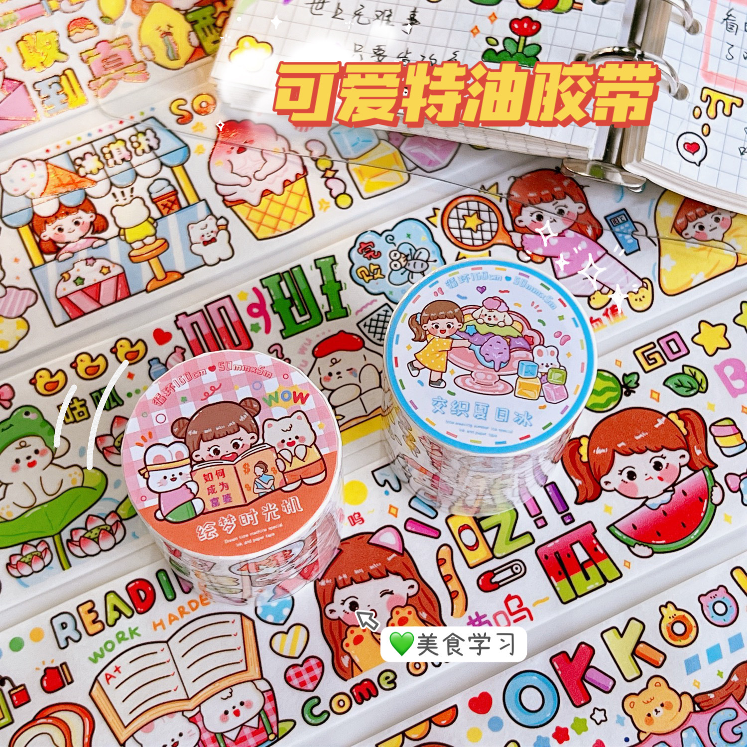 腾亿优品特油胶带ins风可可酱可爱少女贴纸文具手账胶带咕卡胶带