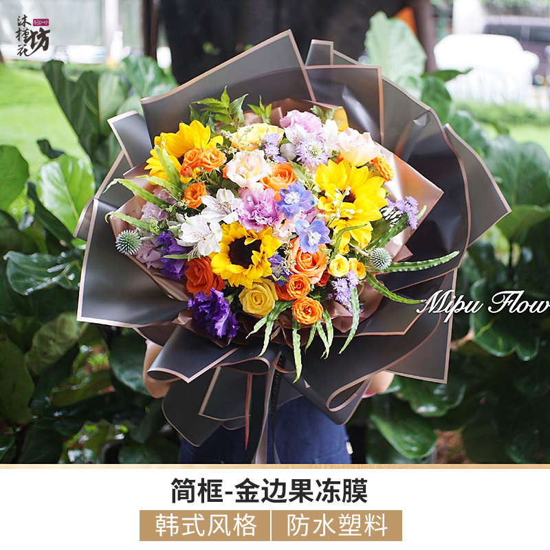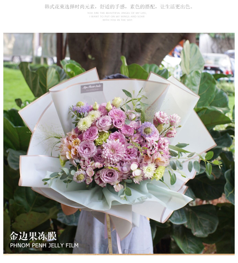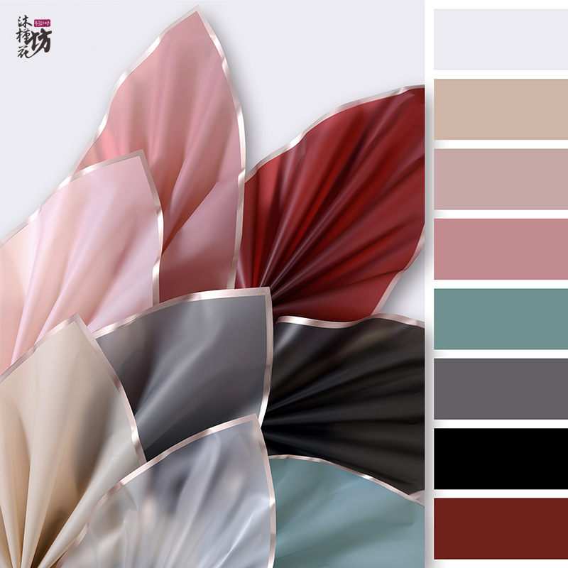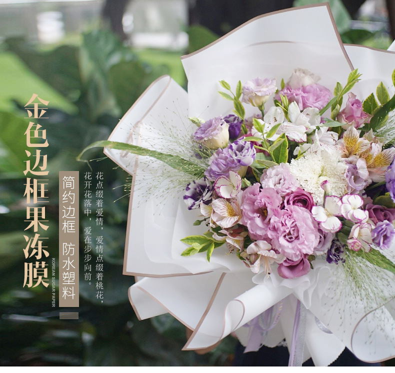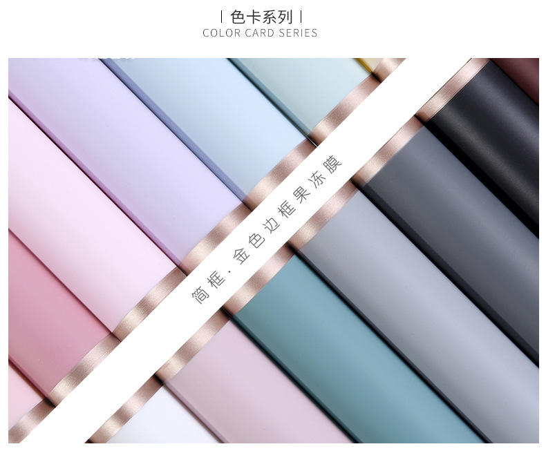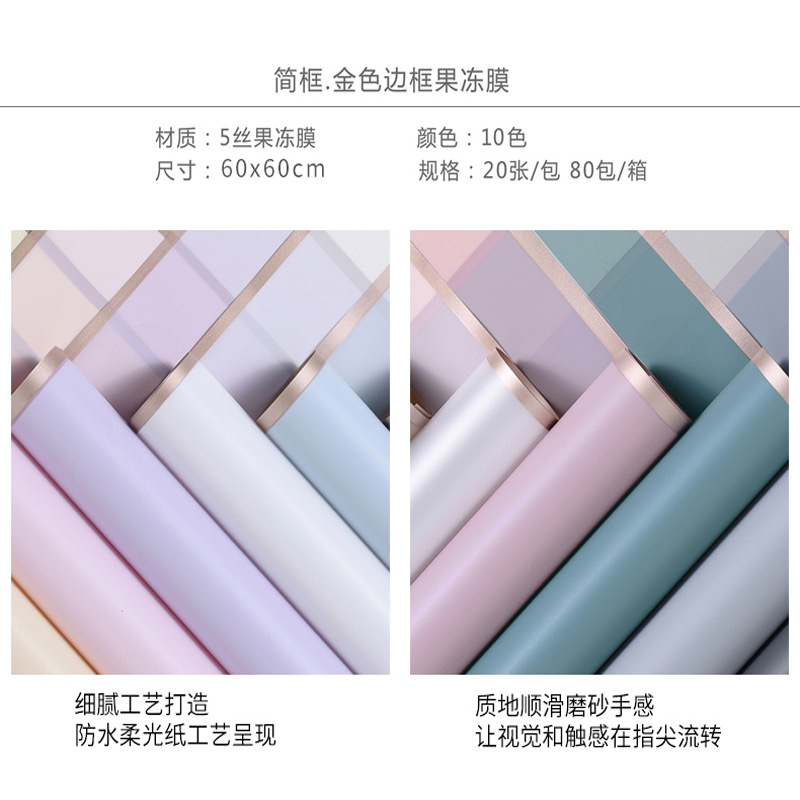 鲜花包装纸 防水金边果冻膜纯色柔光纸花束包花纸包装花材料批发