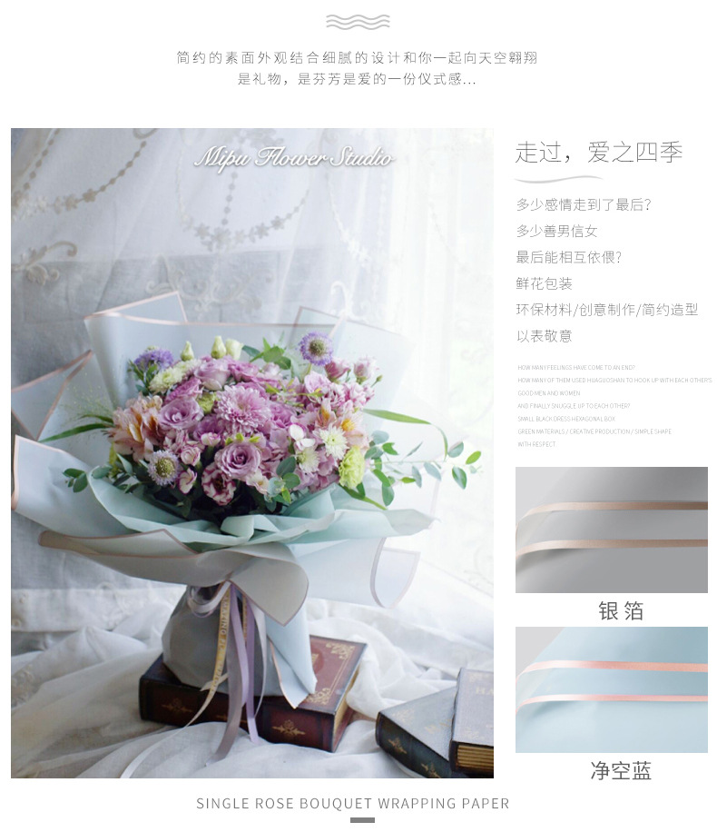 用途:主要用于鲜花花束的包装,用上这样的纸,很有档次哦!