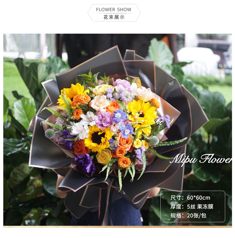 果冻膜纯色防水纸,花束包花纸,纯色防水纸,金边防水纸,果冻膜防水纸