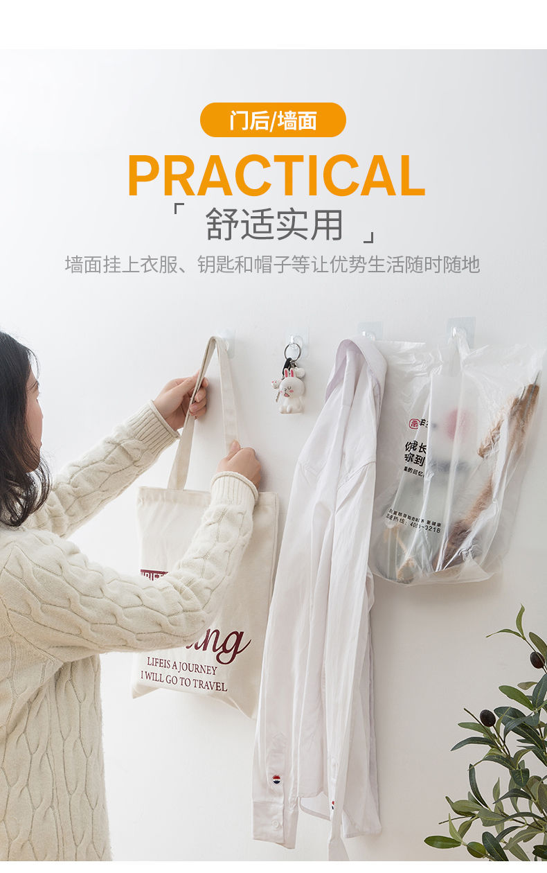 挂钩贴免打孔强力胶粘厨房卫生间宿舍墙面壁上钩子门后连粘钩