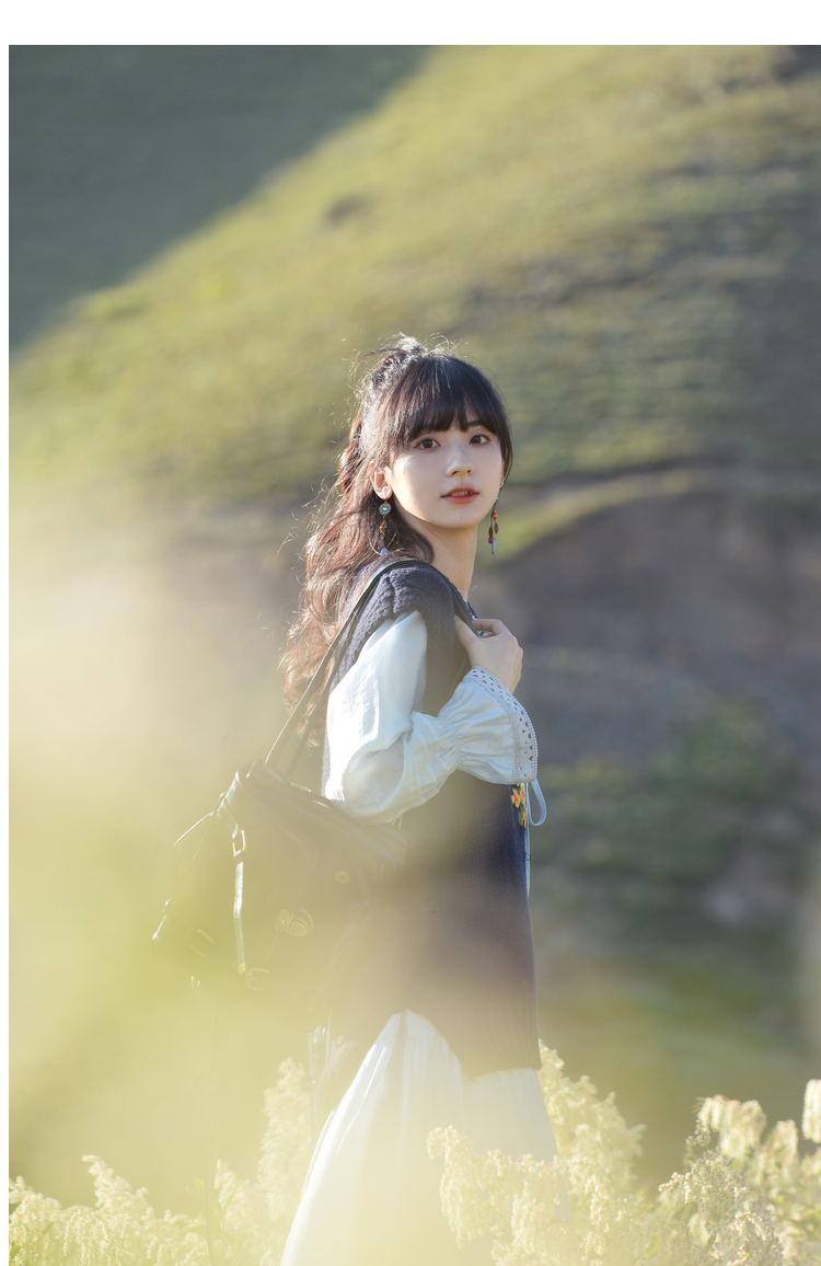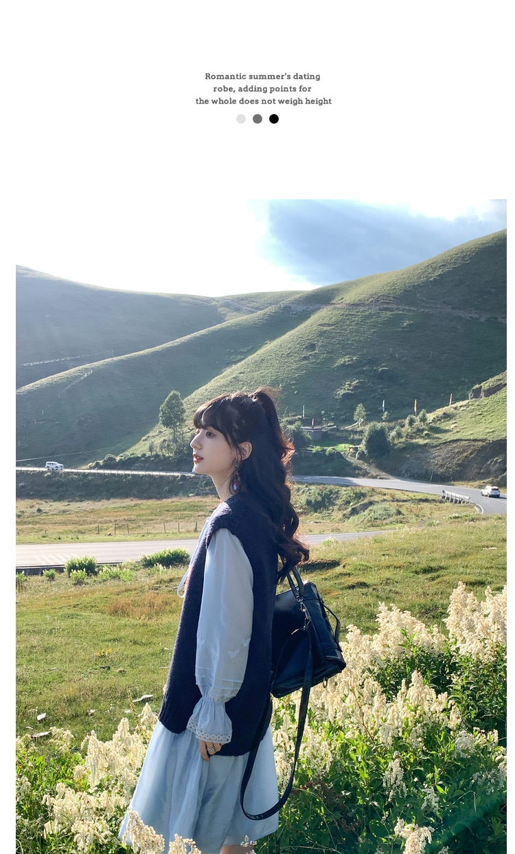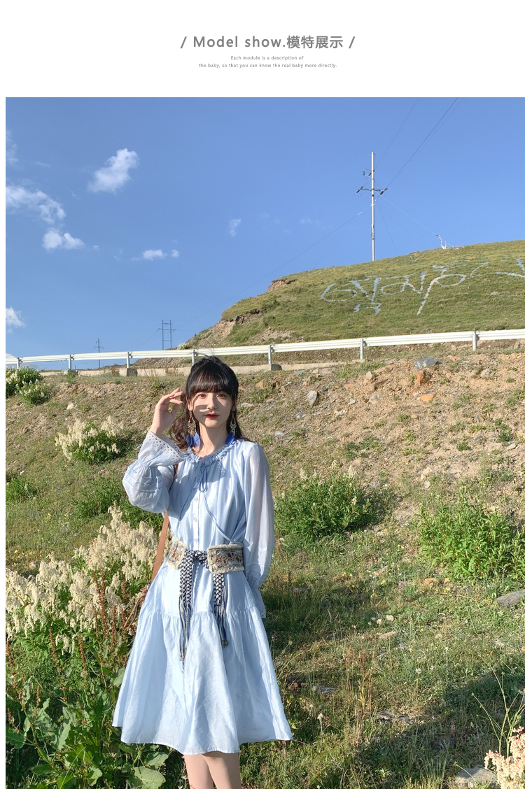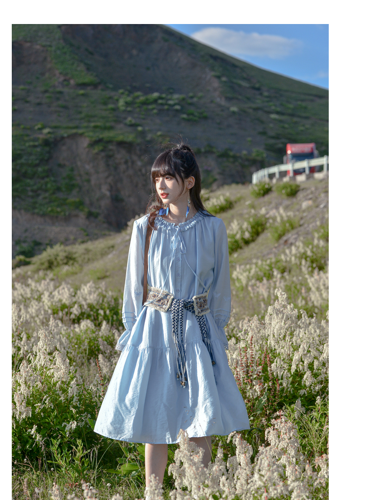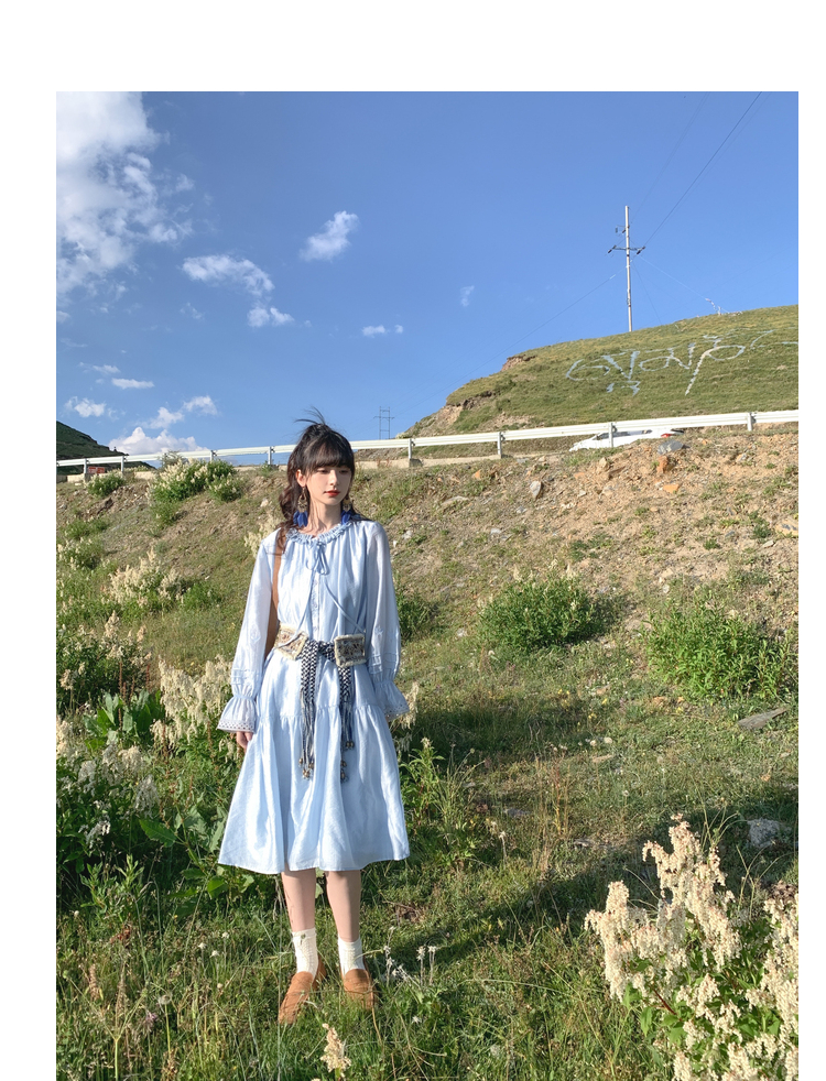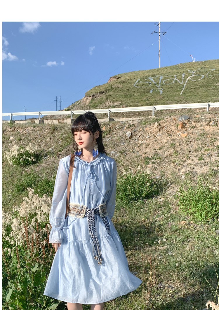 小鎮姍姍 紙舞蝴蝶~雙層木耳邊綁帶天絲洋裝2023新款高腰中長裙