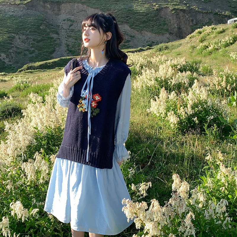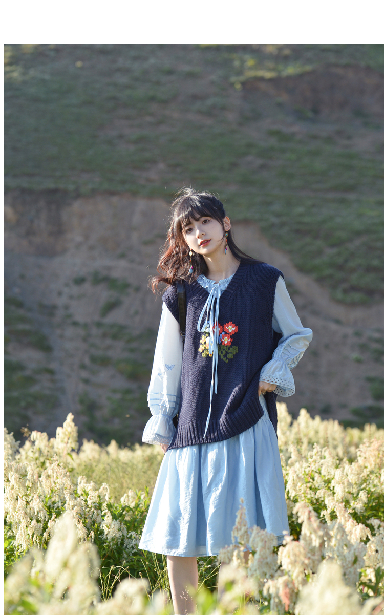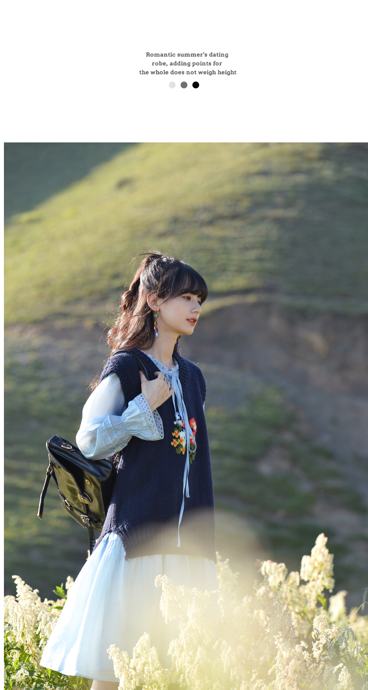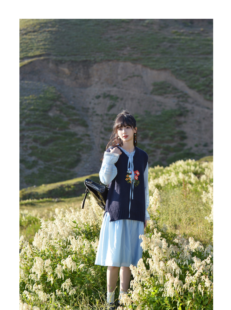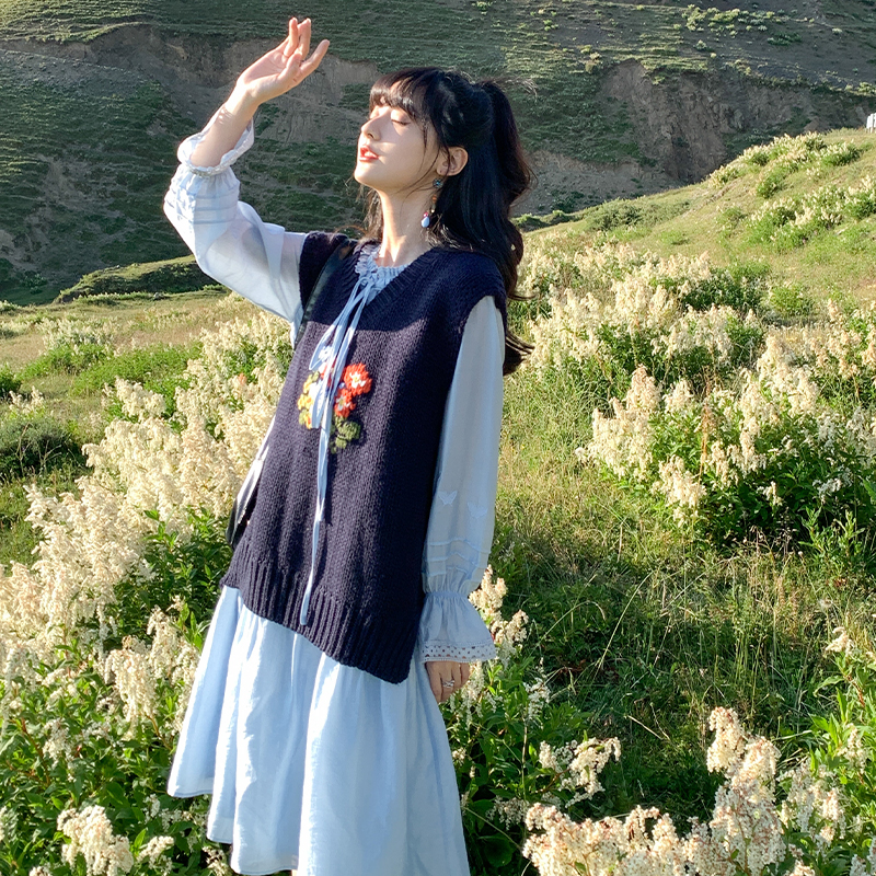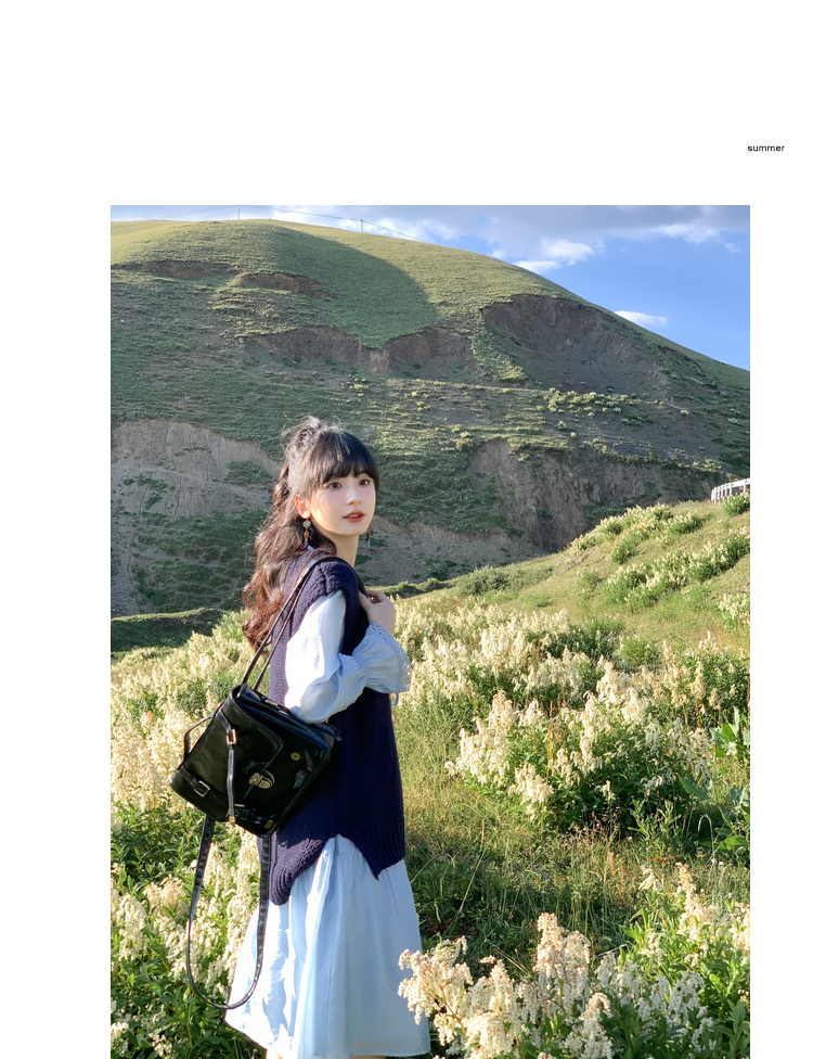 小鎮姍姍 紙舞蝴蝶~雙層木耳邊綁帶天絲洋裝2023新款高腰中長裙