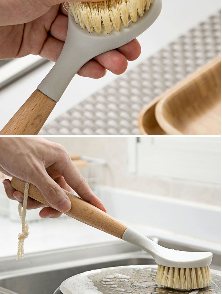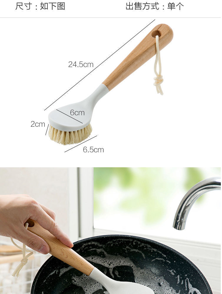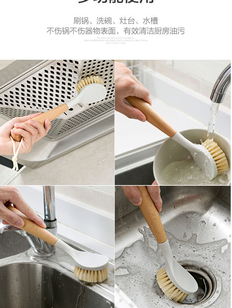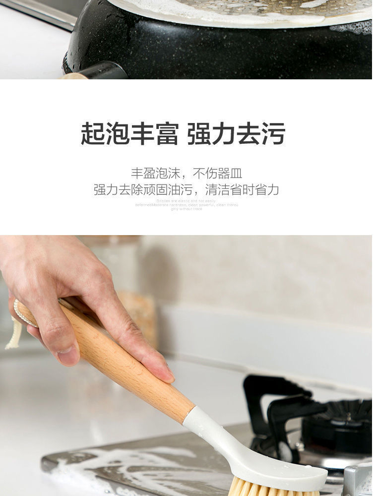 尼龙锅刷洗锅刷多功能长柄碟碗刷厨房清洁刷榉木木柄清洁锅刷