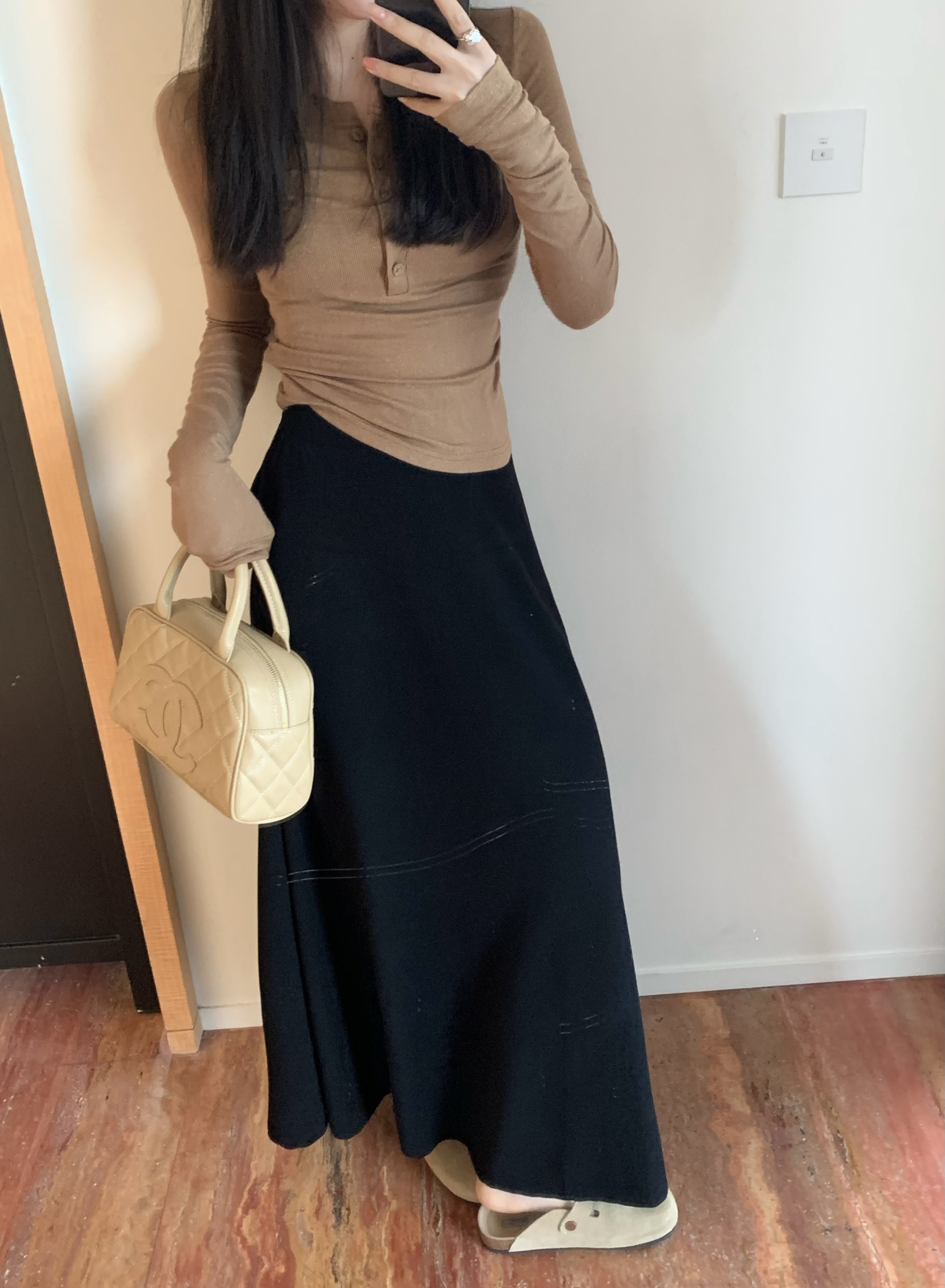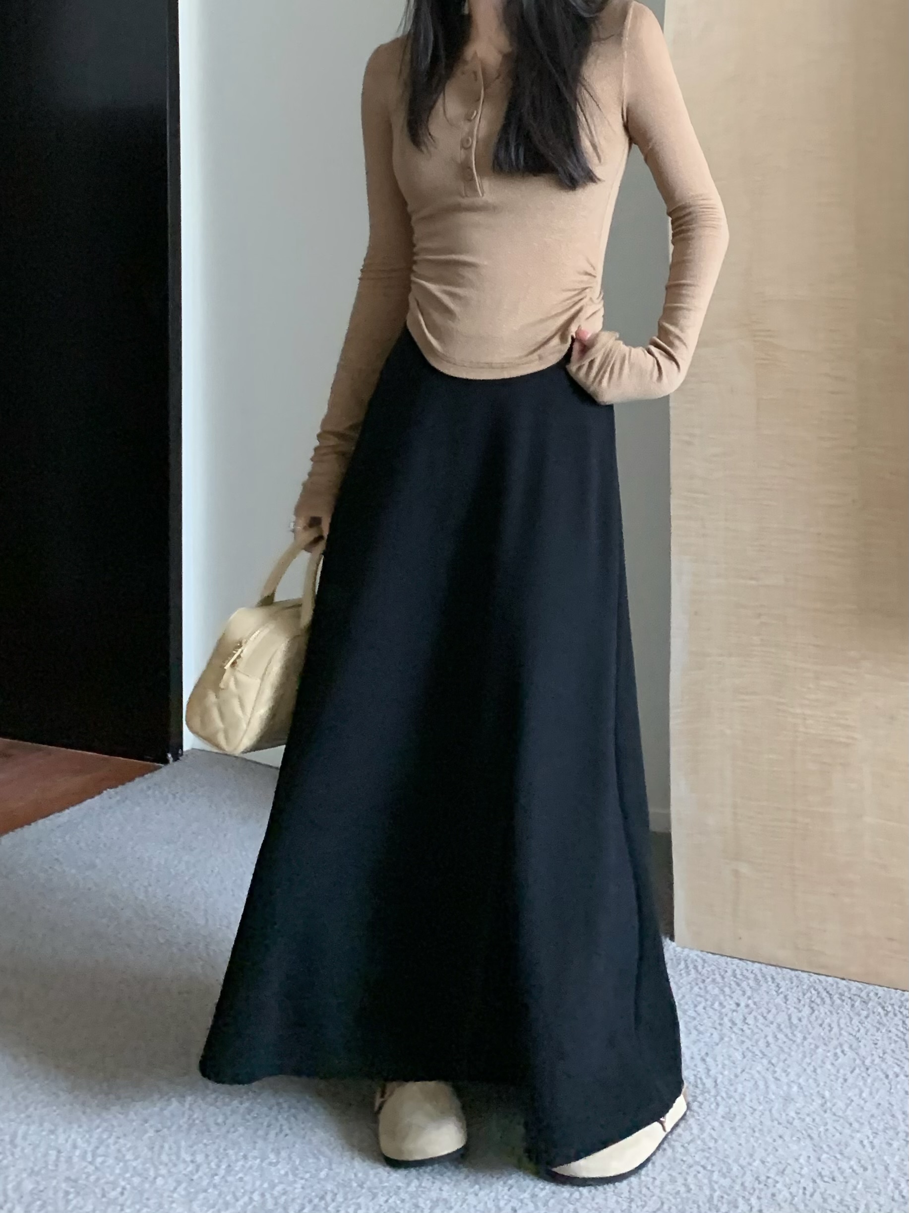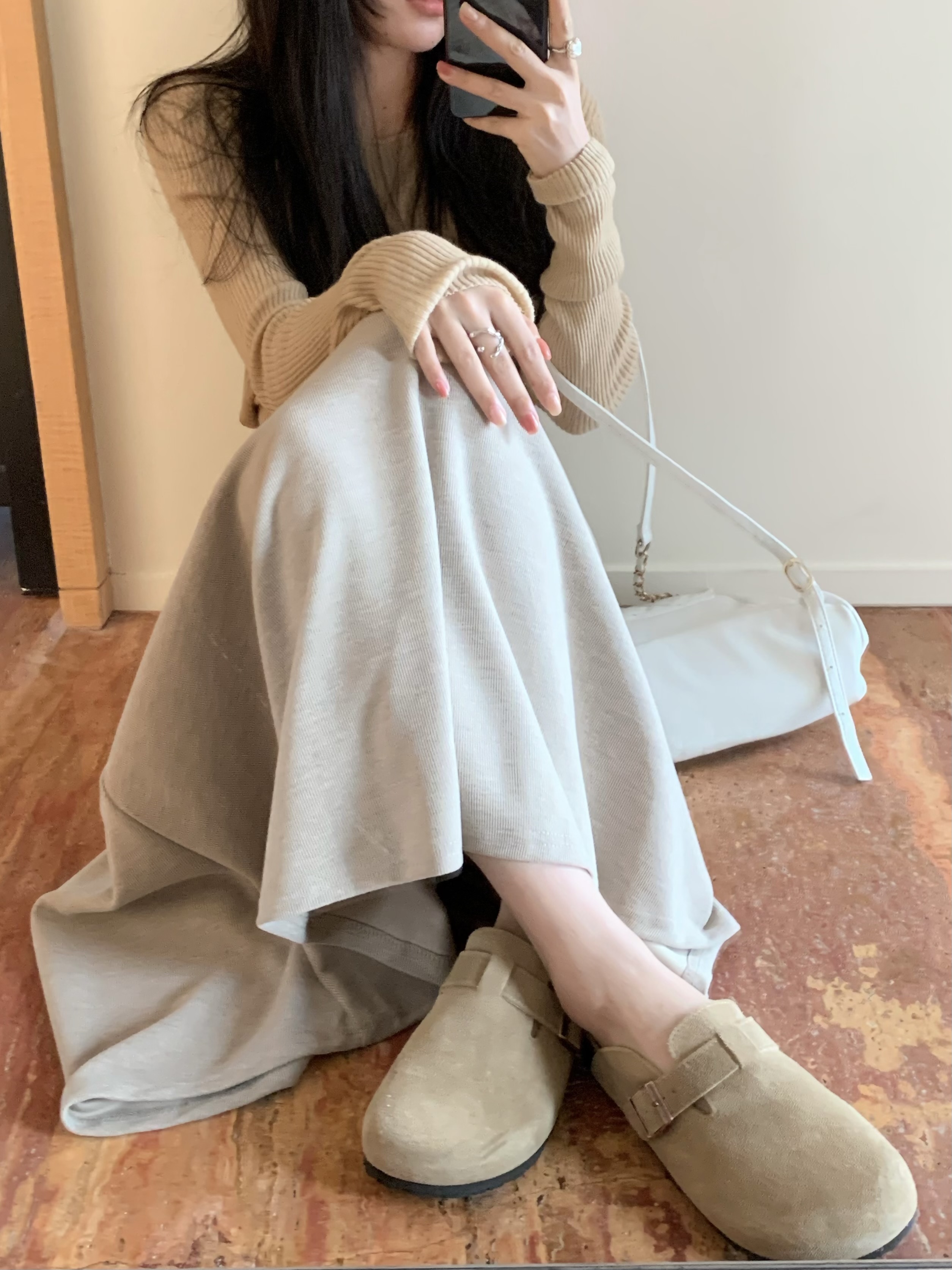 kumikumi設計感小眾半身裙女2023秋季新款鬆緊腰顯瘦A字裙長裙子