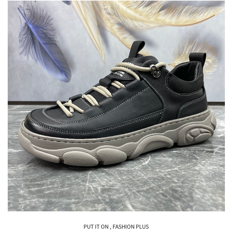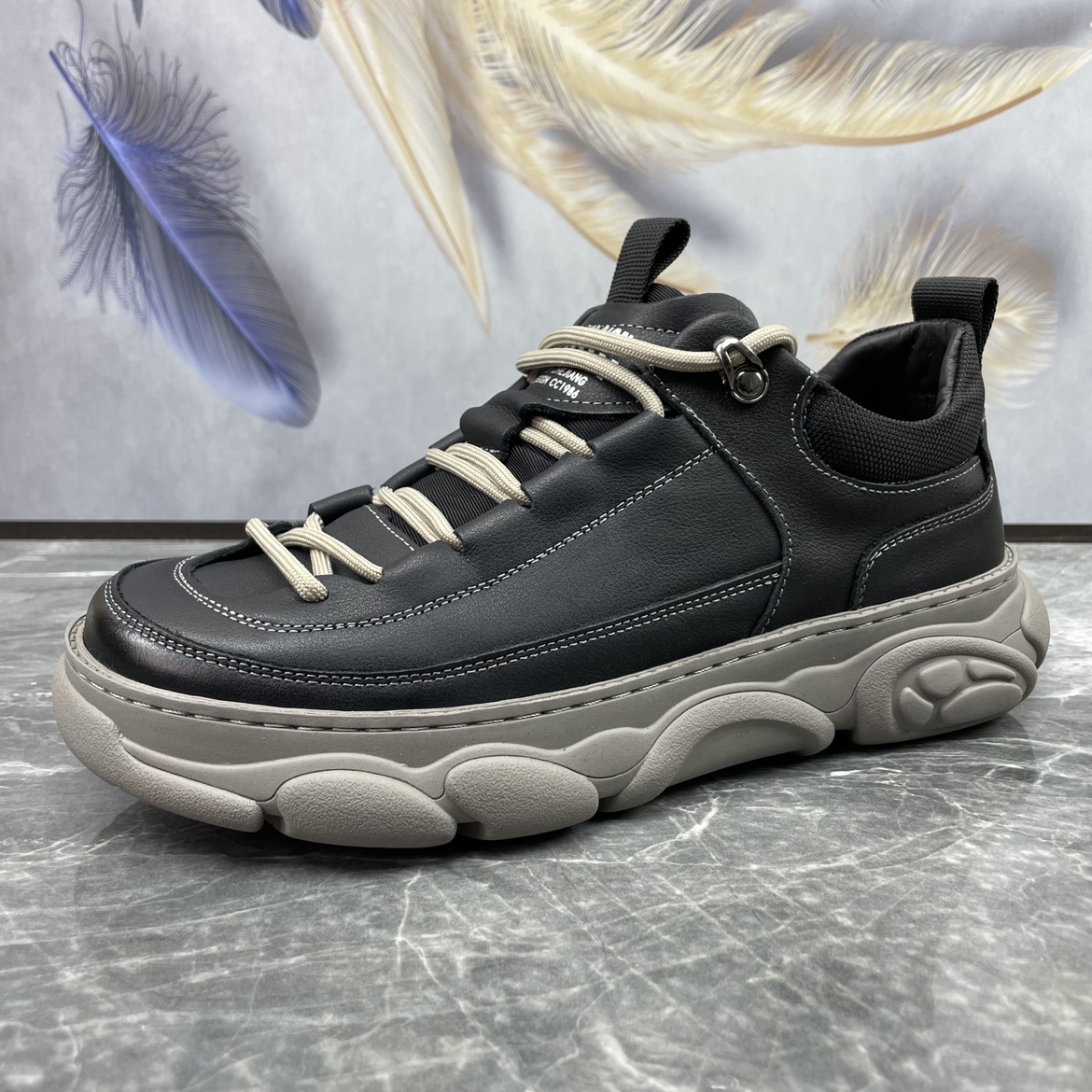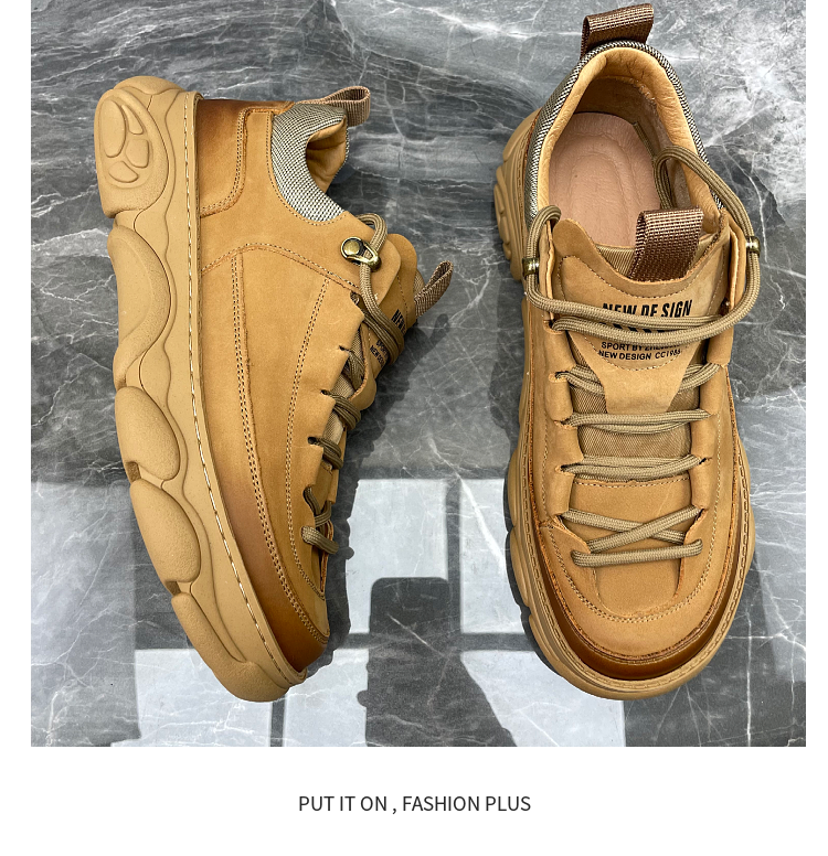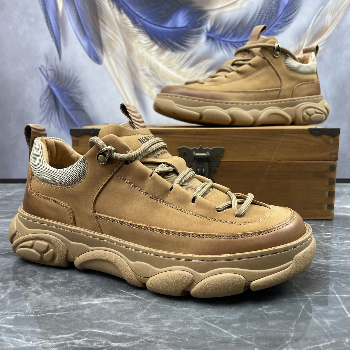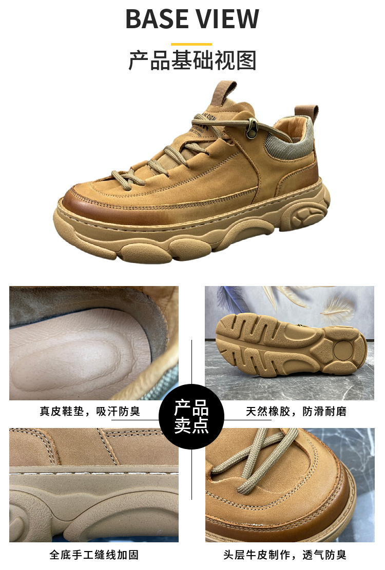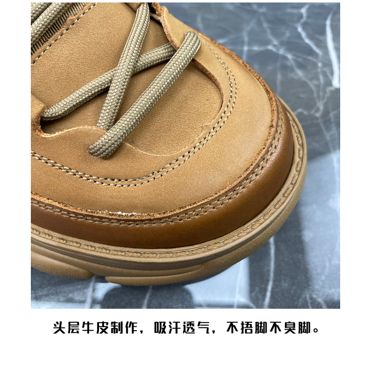 男鞋春季新款頭層牛皮厚底軟底歐洲站復古男士真皮戶外工裝休閒鞋