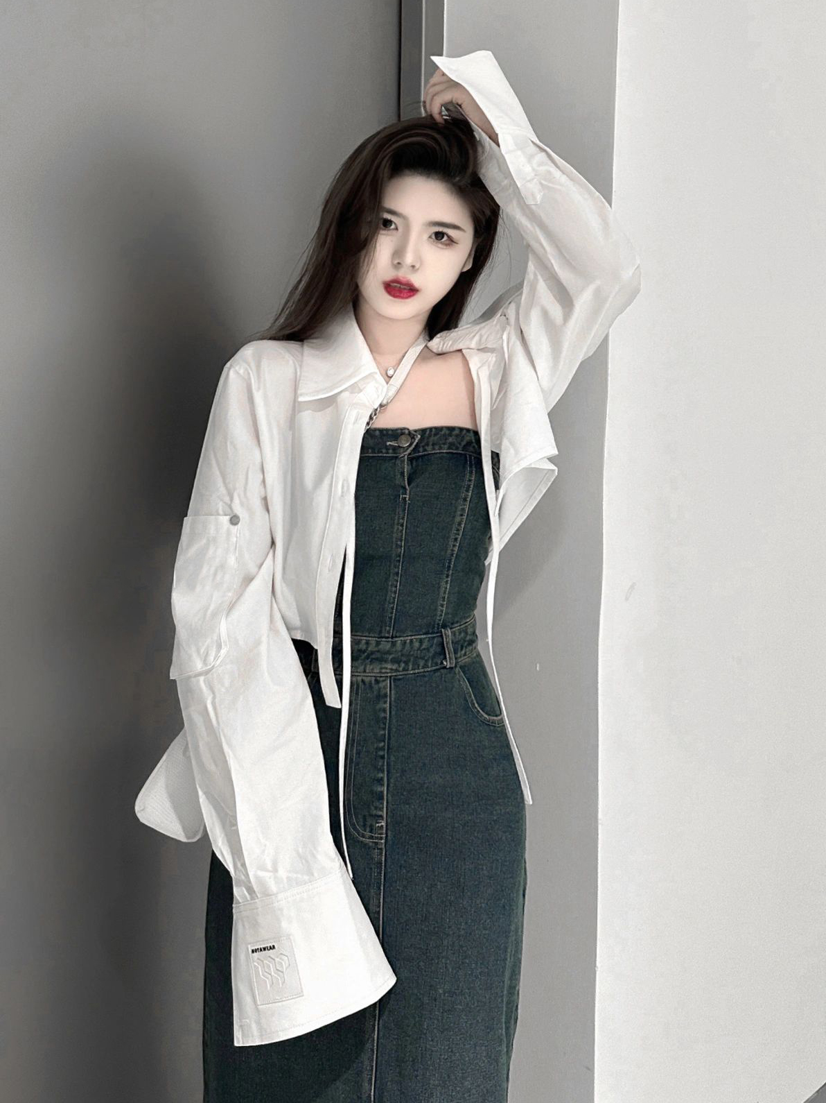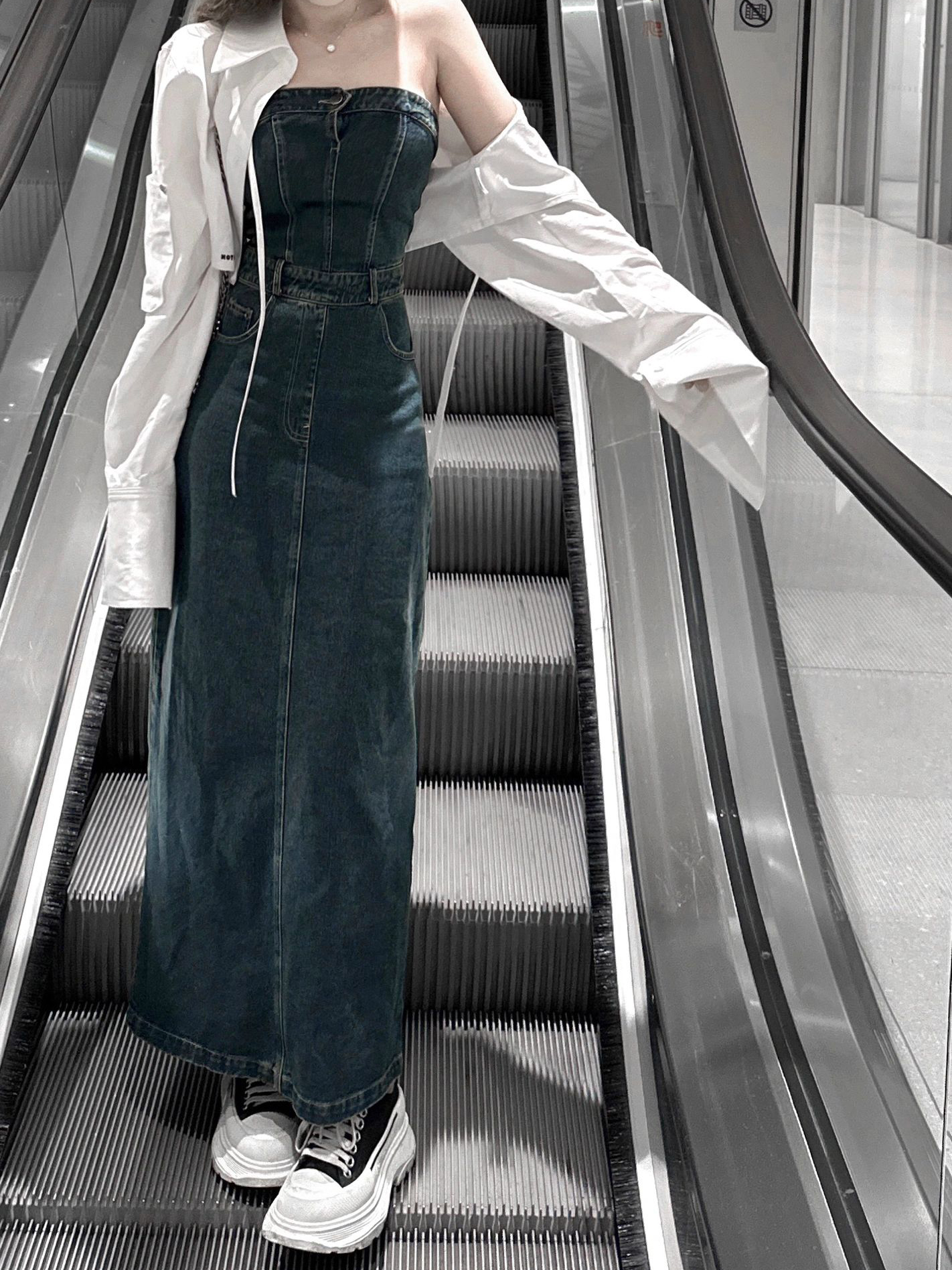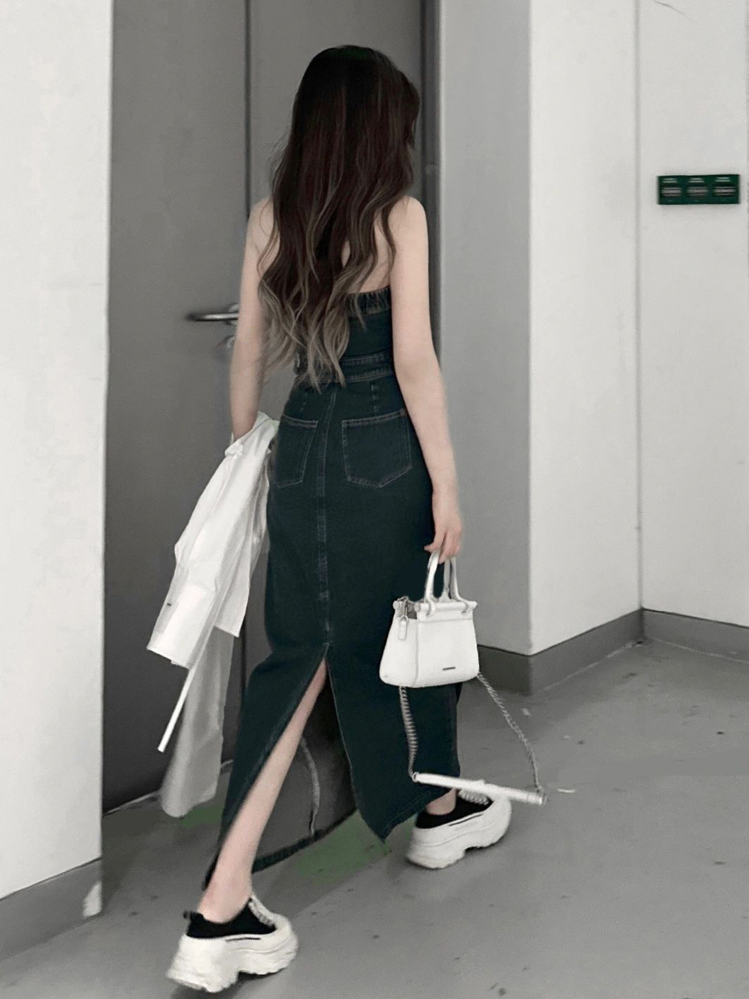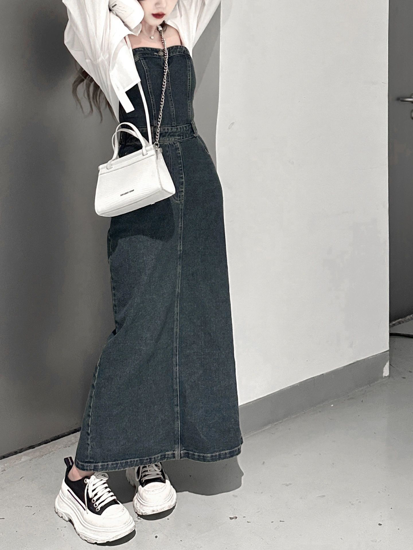 復古洋裝女2023夏季質感牛仔開叉抹胸裙辣妹高級感顯瘦包臀裙子