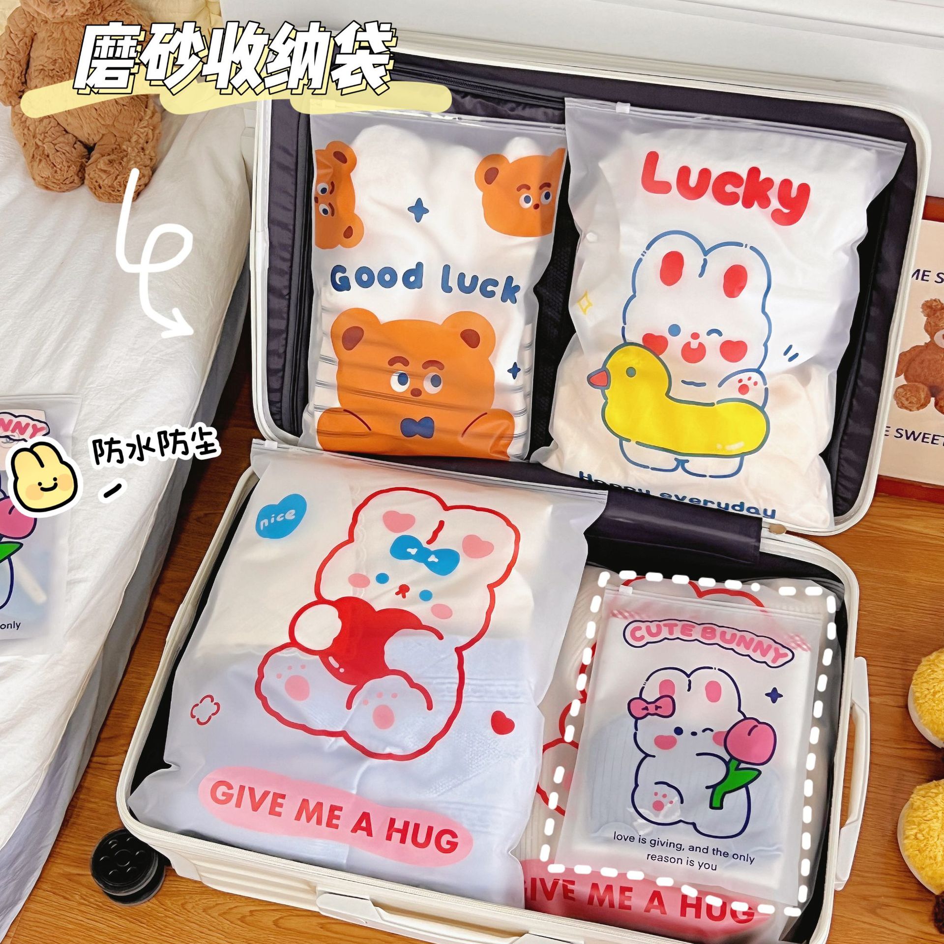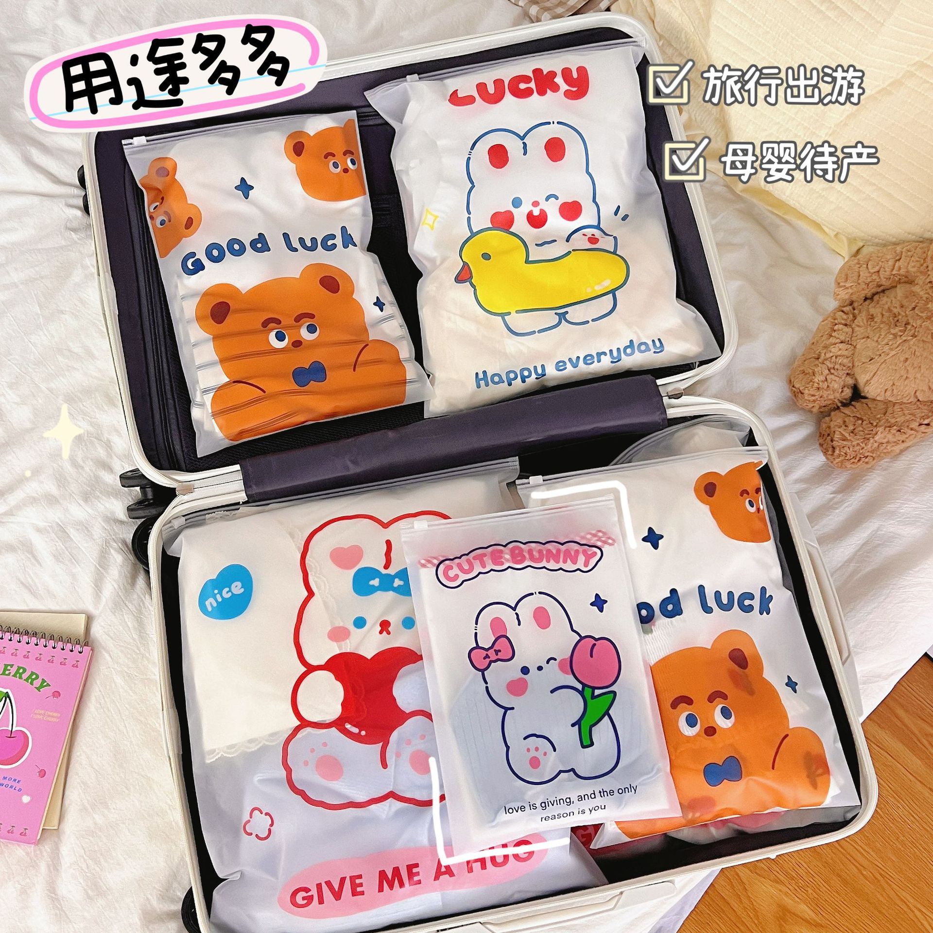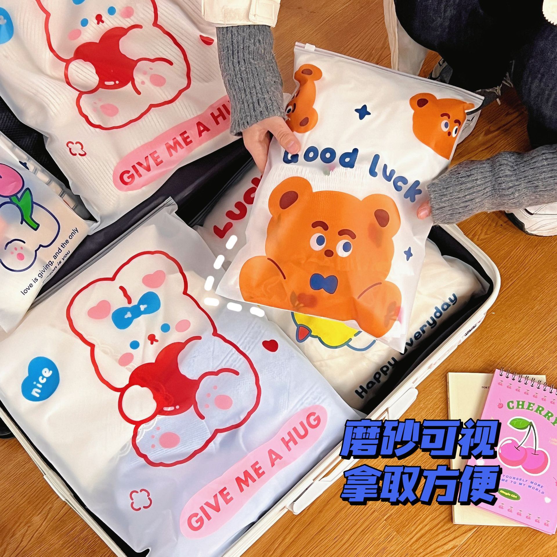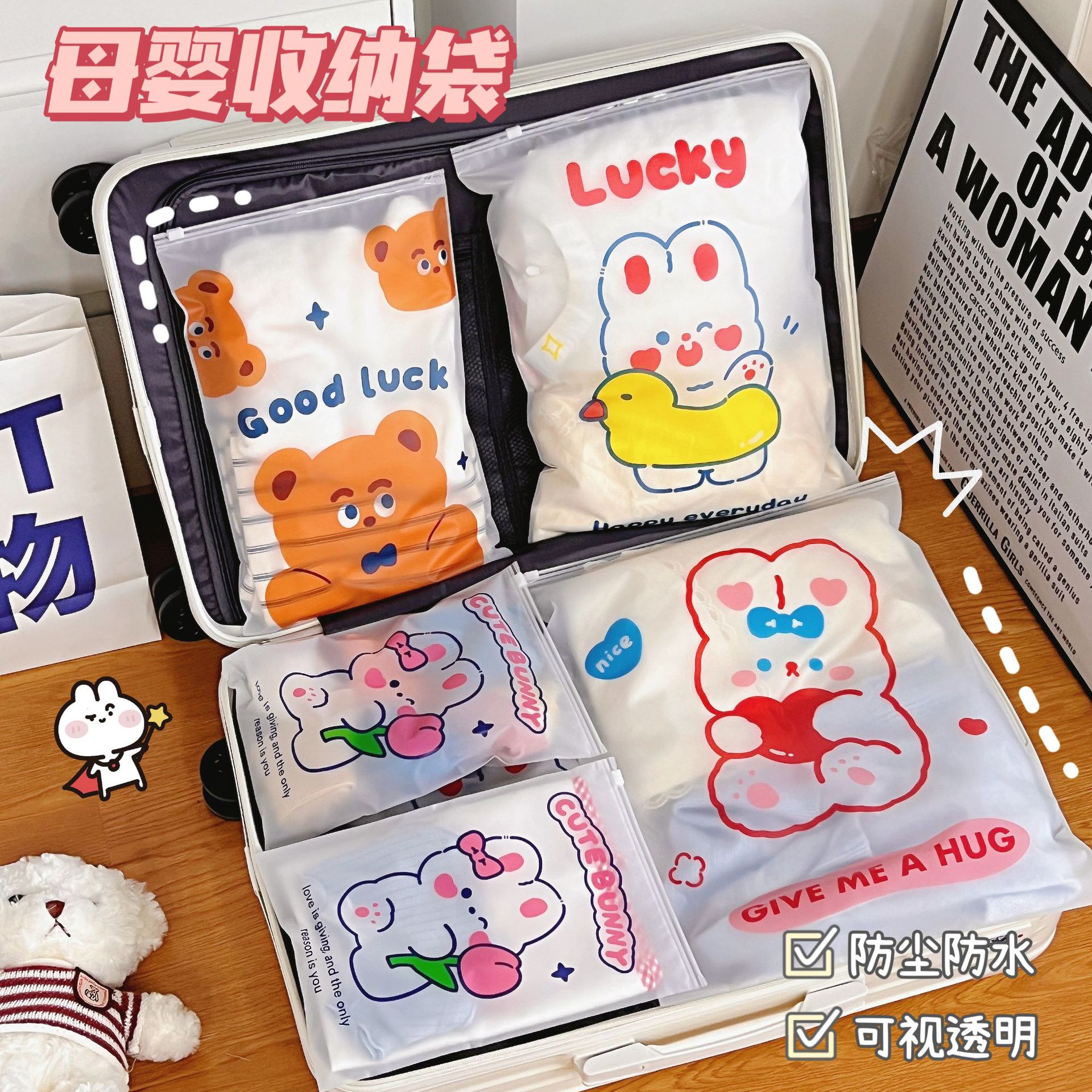 旅行收纳袋衣服衣物内衣便携整理袋行李箱磨砂卡通透明便携分装袋