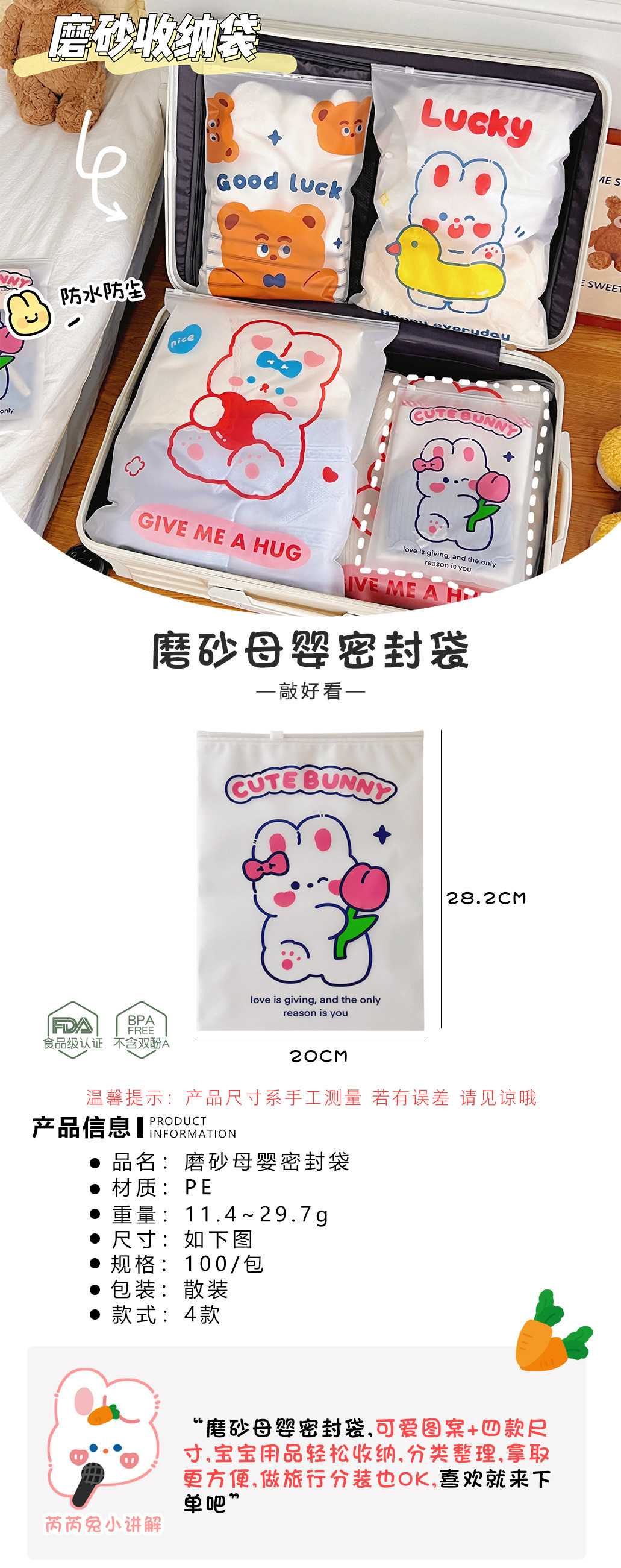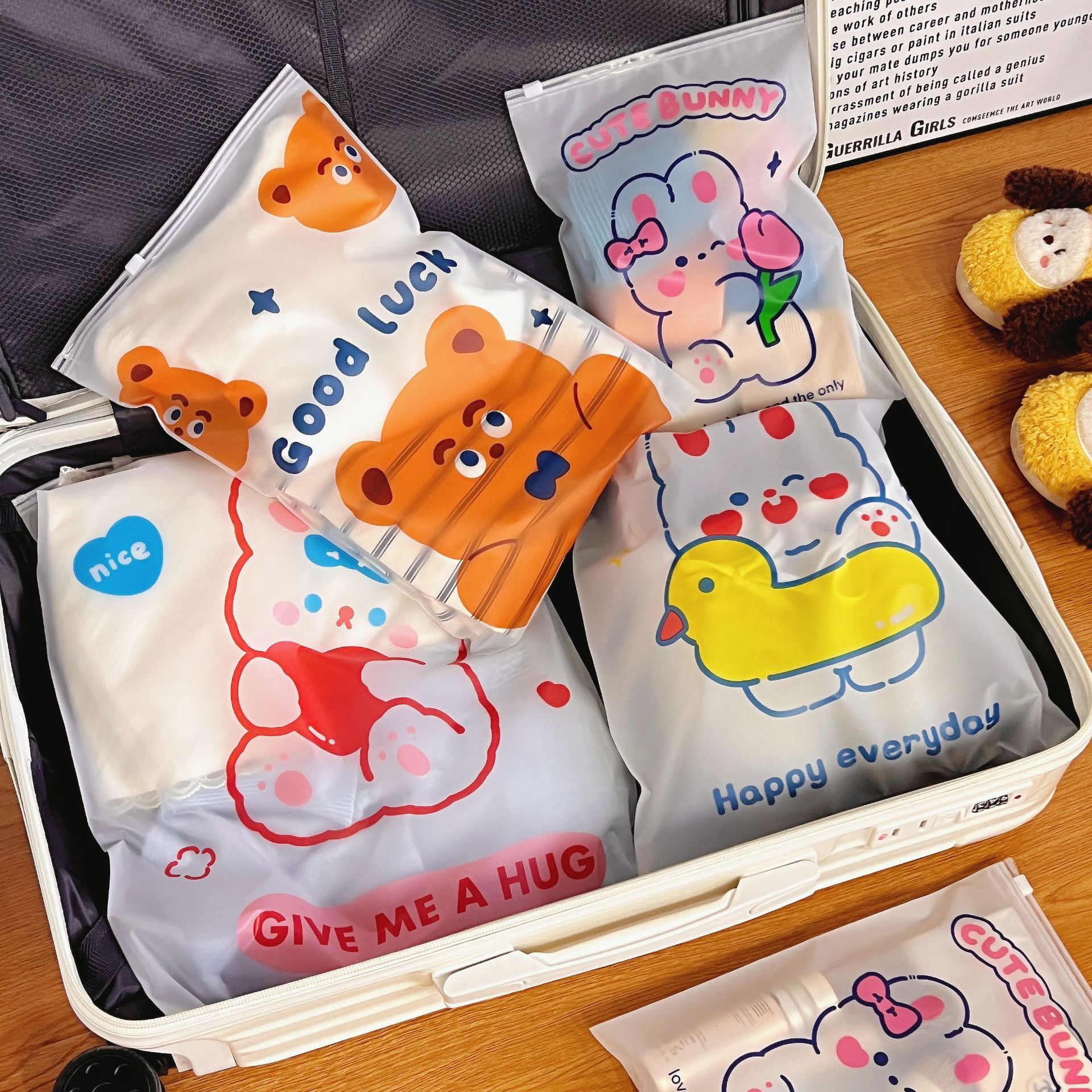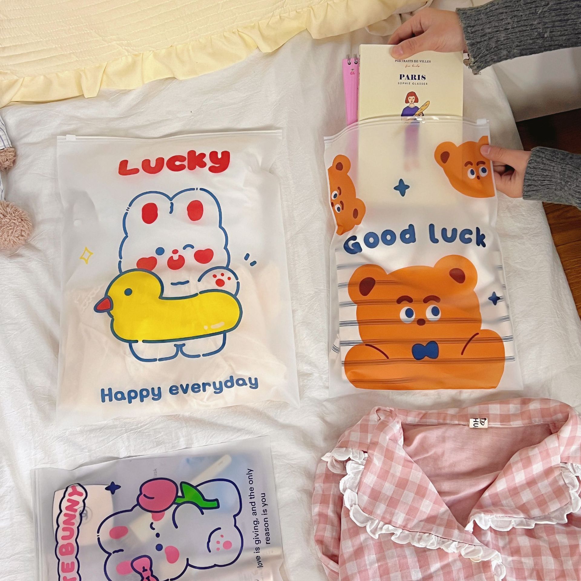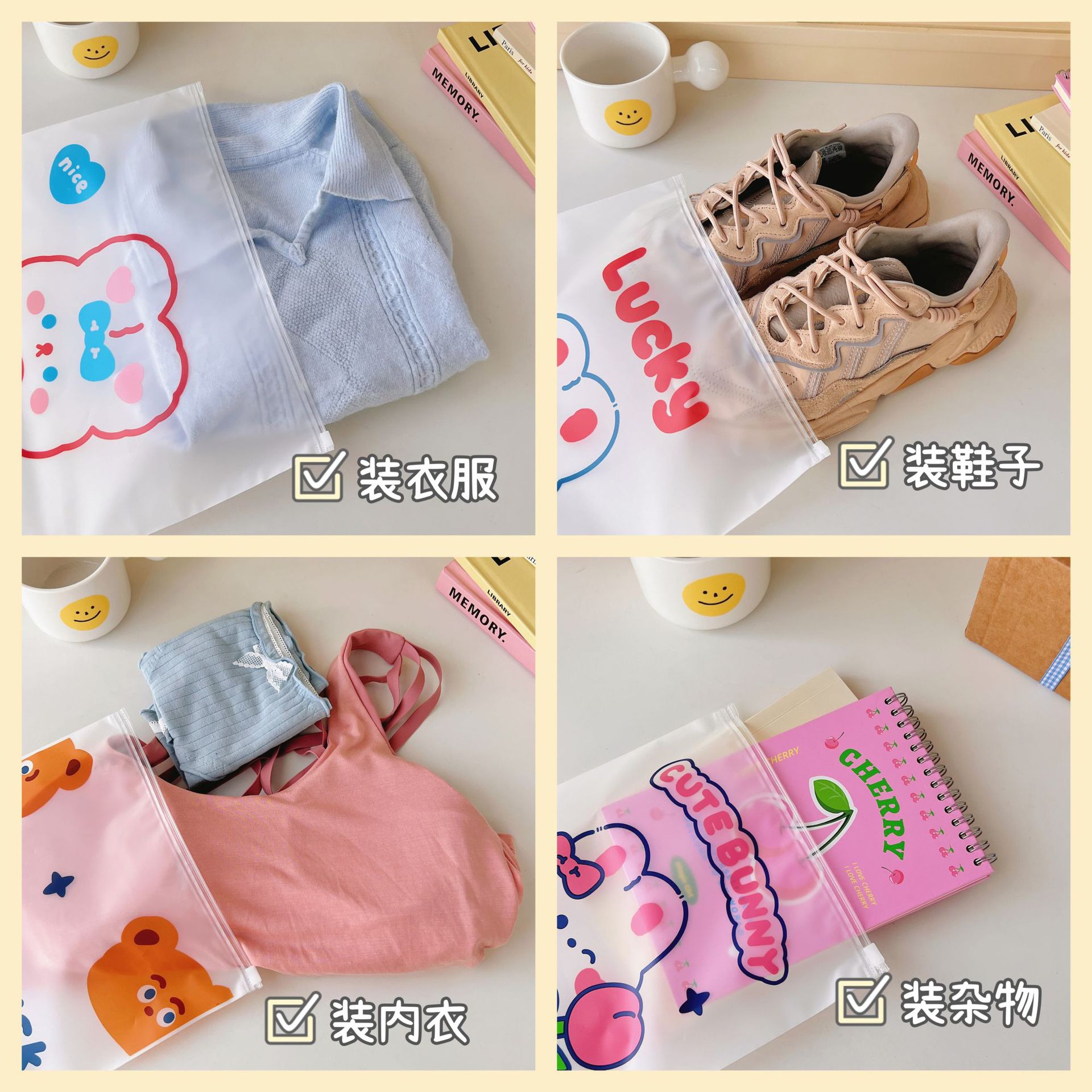 旅行收纳袋衣服衣物内衣便携整理袋行李箱磨砂卡通透明便携分装袋