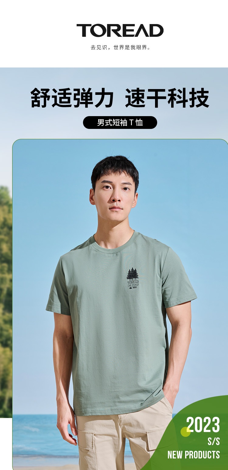 探路者T恤2023新款蜂巢仿生透氣男女戶外登山徒步速乾運動短袖