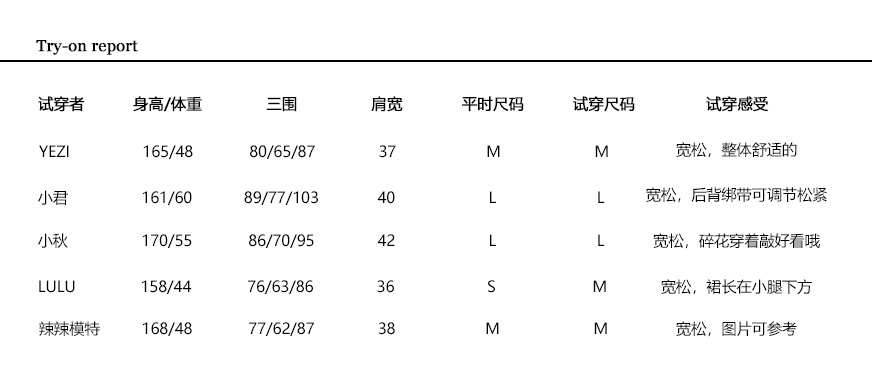 尺码 肩宽 袖长 胸围 腰围 下摆围 裙长
