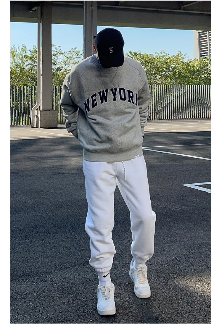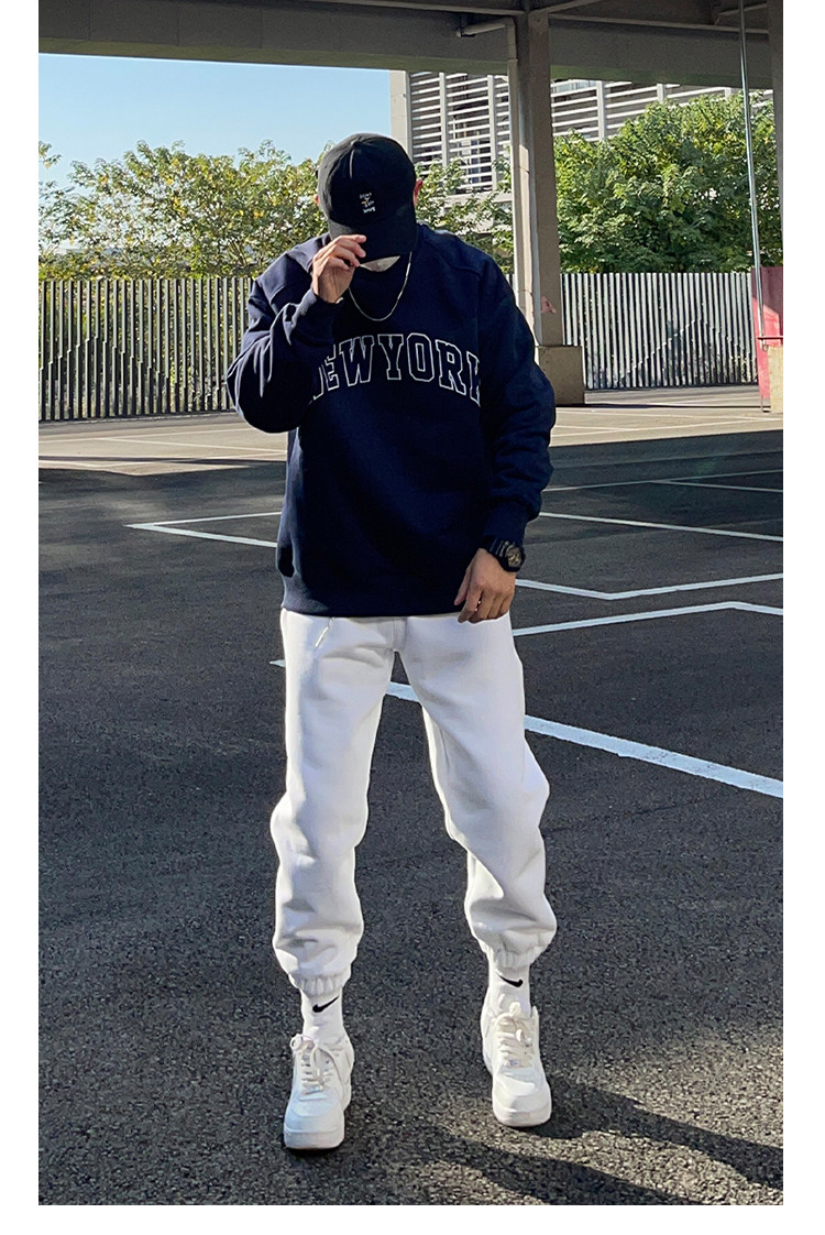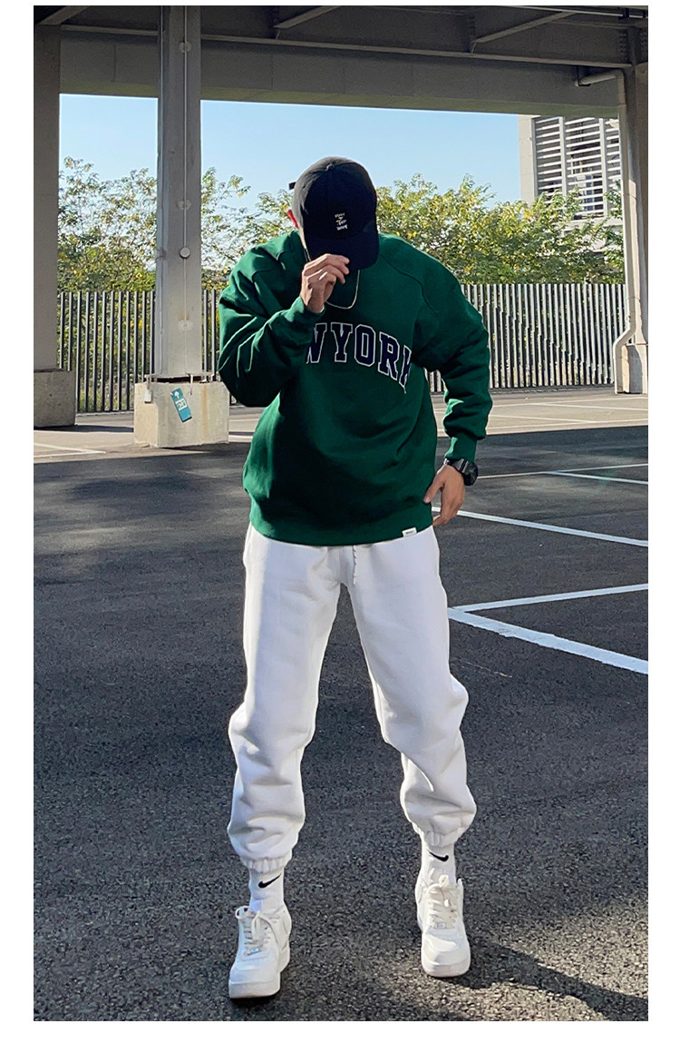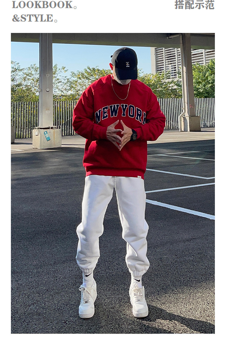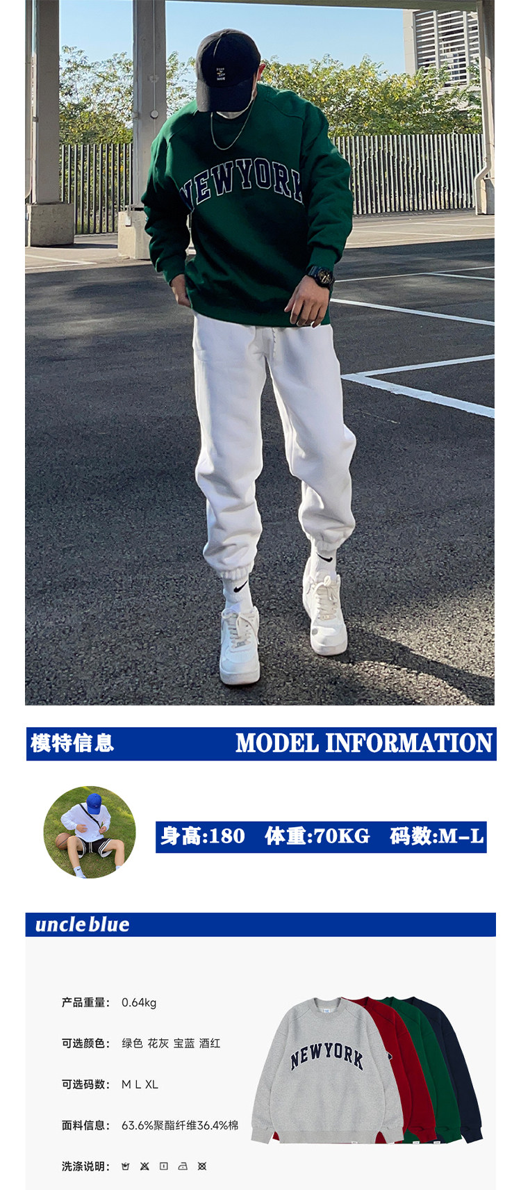 UNCLEBLUE 400g搖粒絨美式字母印花男士厚T恤加厚秋冬新品上衣