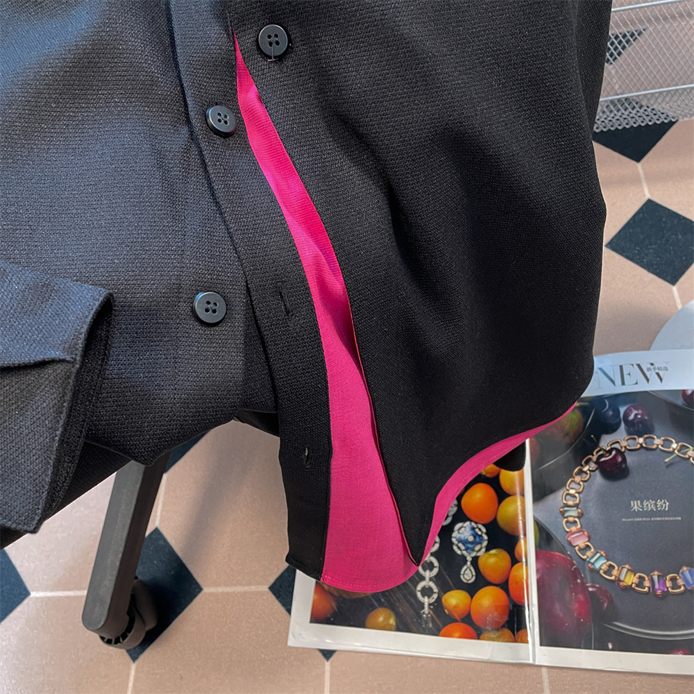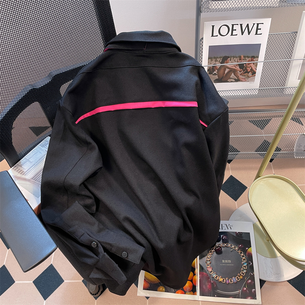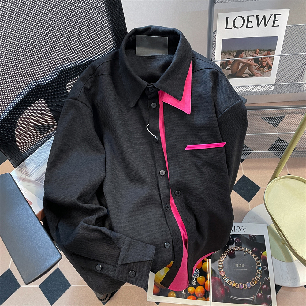 美式復古設計感小眾撞色拼接襯衫女春秋vintage港風長袖上衣外套