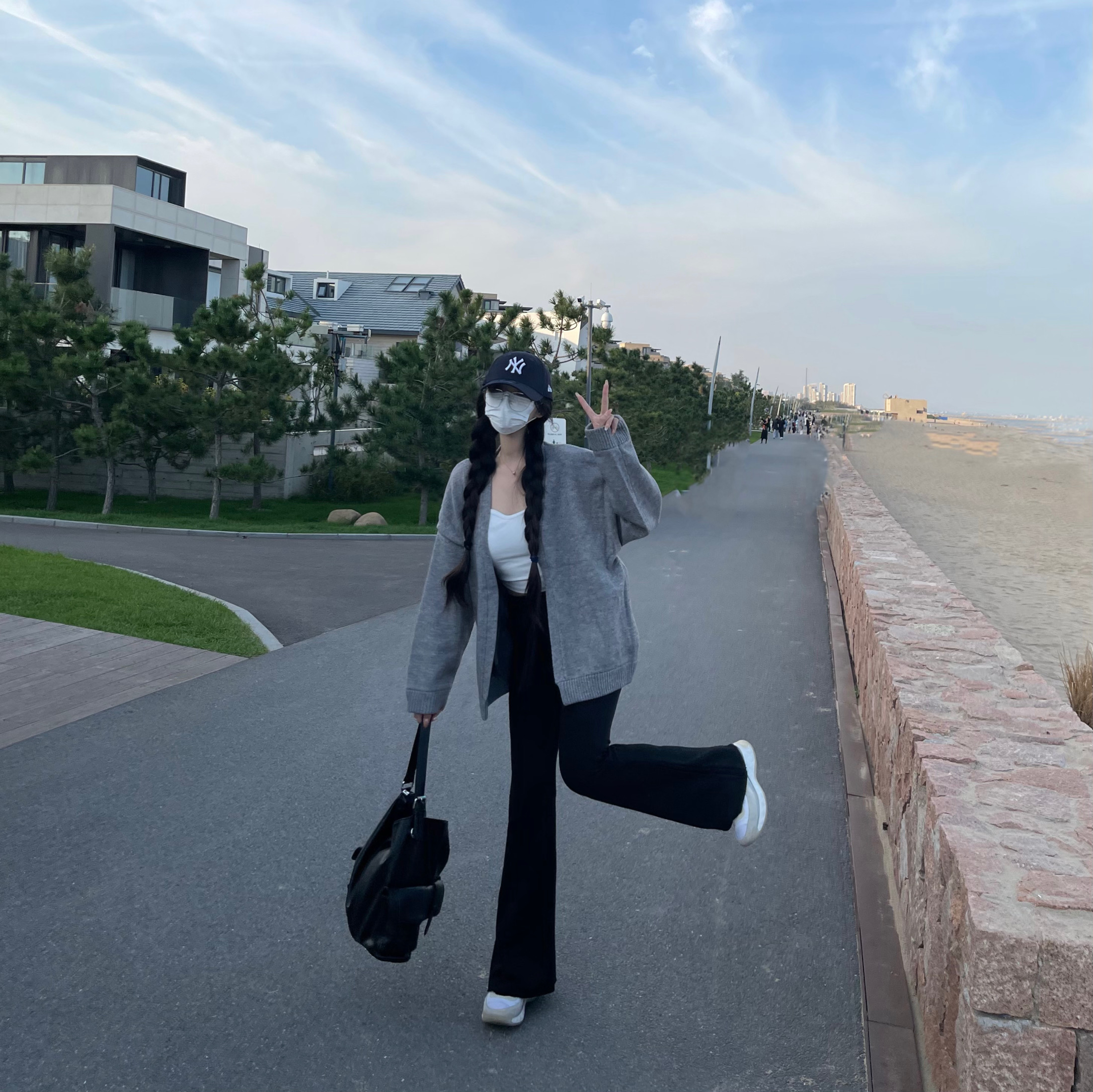 灰色会比较时髦一些 官搭喇叭裤很洋气 显瘦