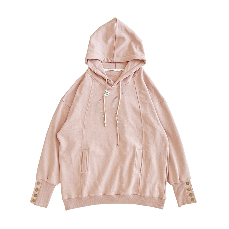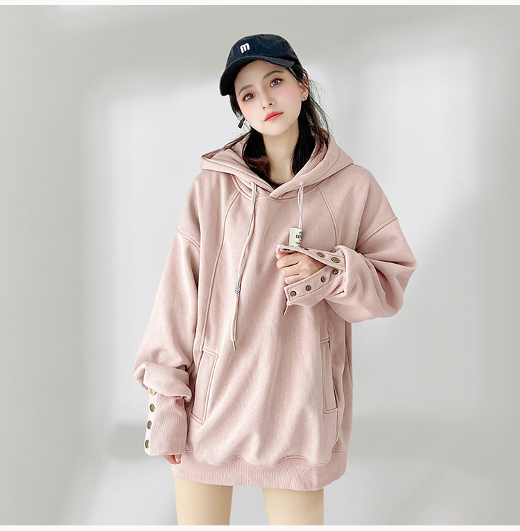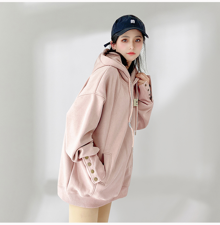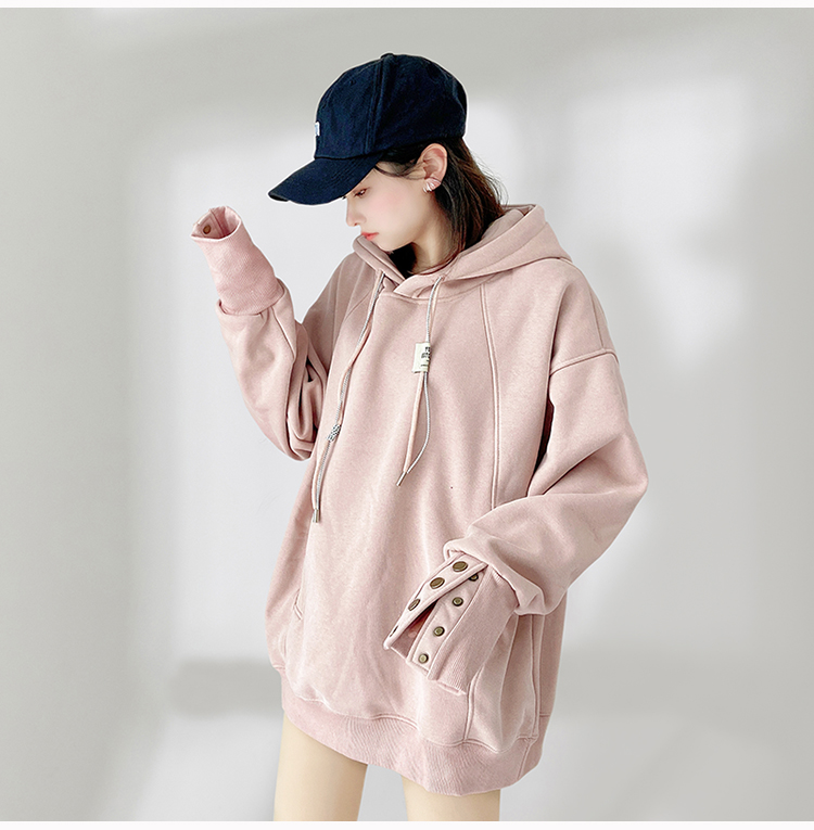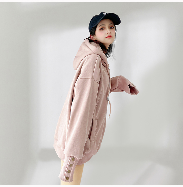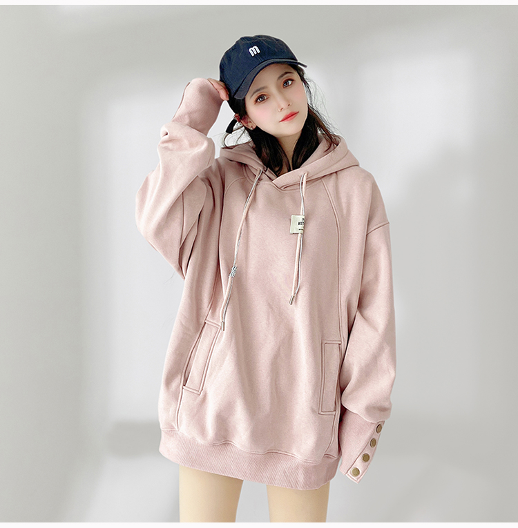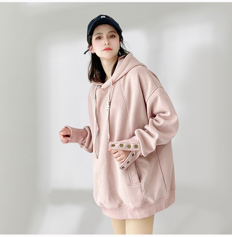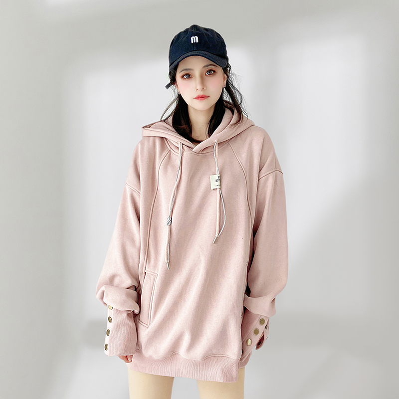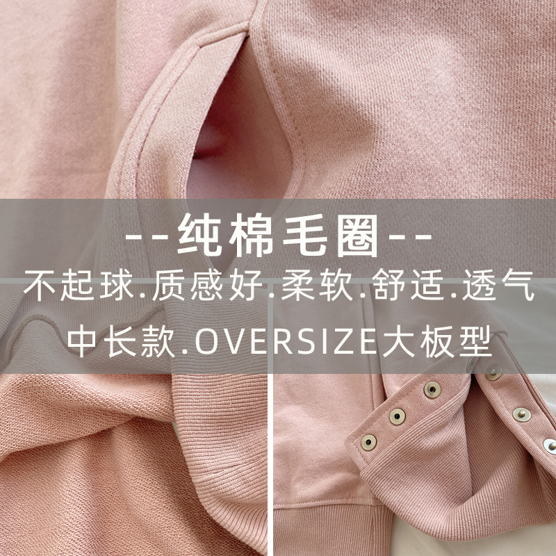 春裝薄款中長版遮屁股粉色連帽運動衫外套女寬鬆OVERSIZE設計感ins