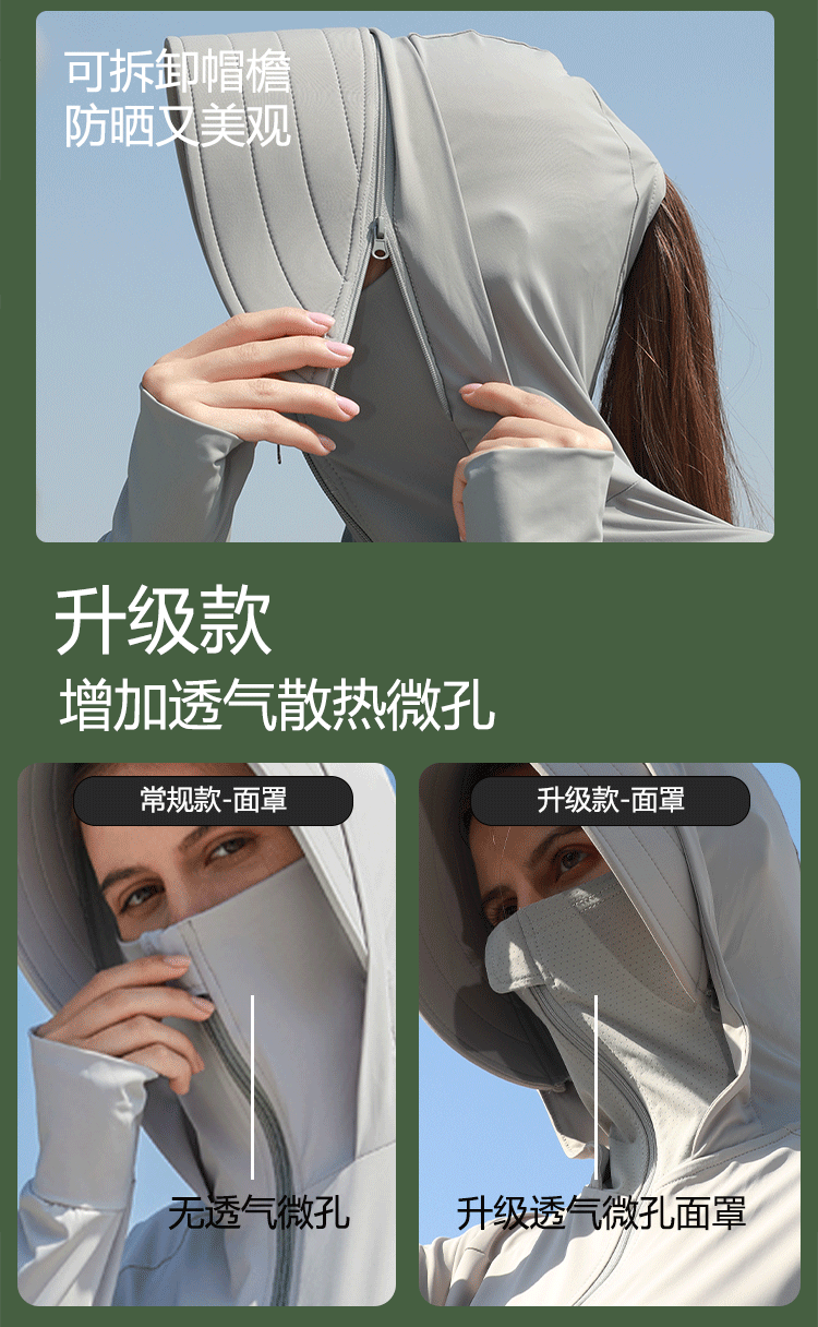 顏色分類 尼龍原紗涼感面料瞬間涼感 水洗不減防曬值 白色(UPF50+帽簷可拆卸) 高級灰(UPF50+帽簷可拆卸) 藍色(UPF50+帽簷可拆卸) 粉色(UPF50+帽簷可拆卸) 升級網孔款--高級灰(UPF50+帽簷可拆卸) 升級網孔款--淺灰色(UPF50+帽簷可拆卸) 升級網孔款--湖茶綠(UPF50+帽簷可拆卸) 升級網孔款--白色(UPF50+帽簷可拆卸) 升級網孔款--黑色(UPF50+帽簷可拆卸) 升級網孔款--藍色(UPF50+帽簷可拆卸) 升級網孔款--豆綠色(UPF50+帽簷可拆卸) 升級網孔款--檸檬黃(UPF50+帽簷可拆卸)
