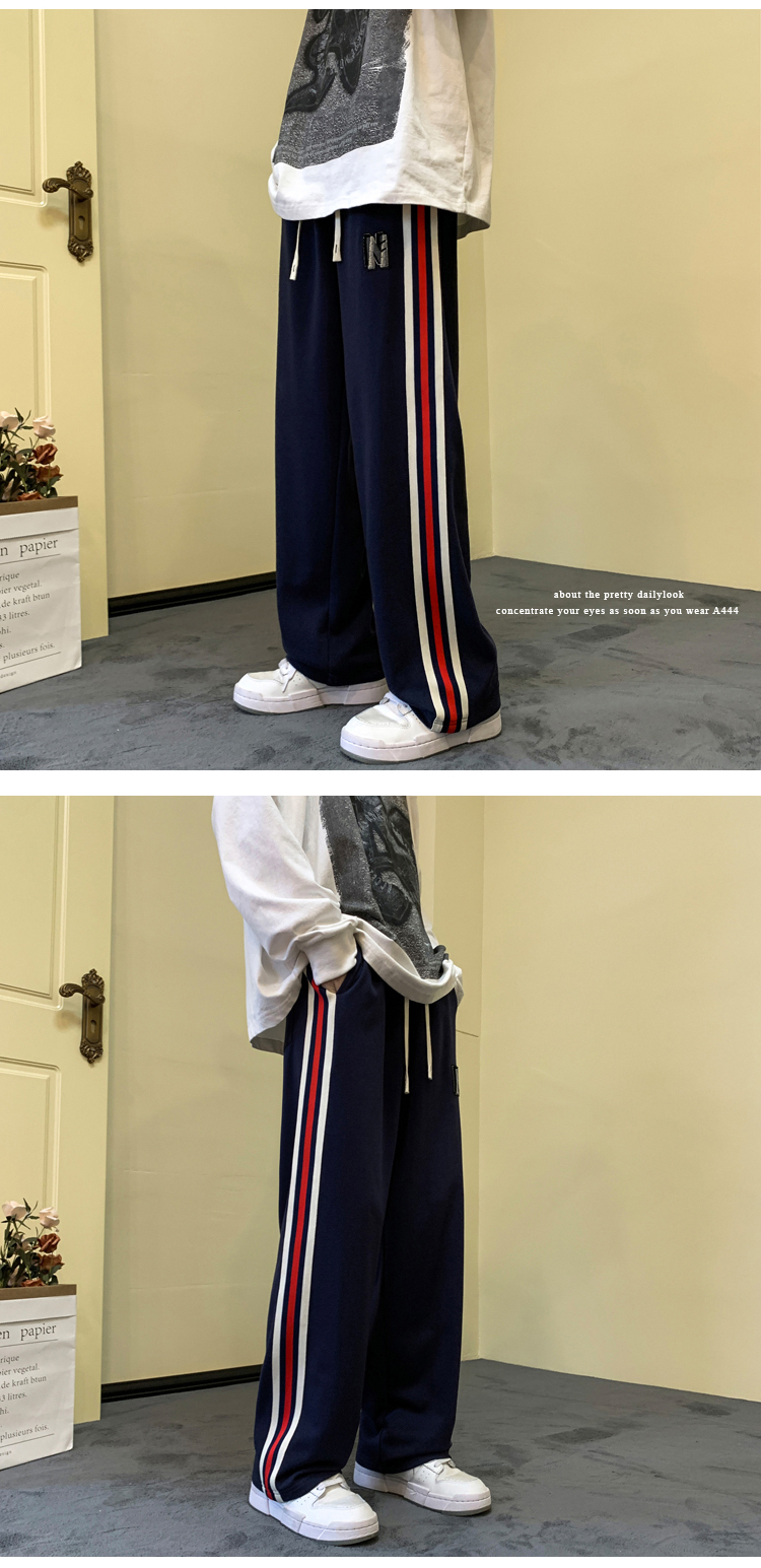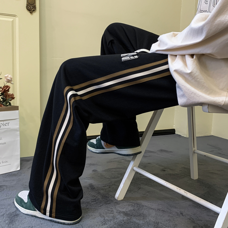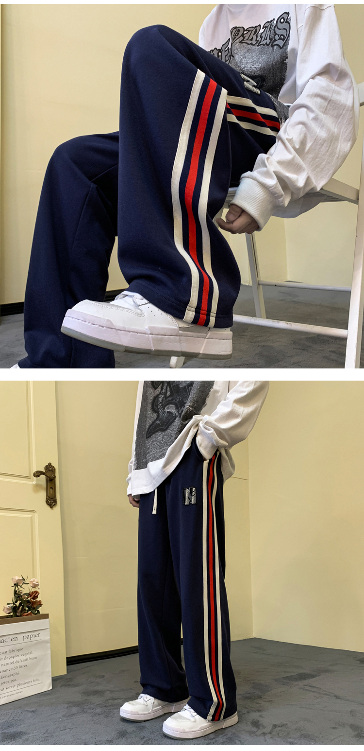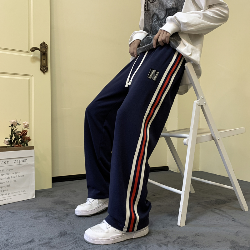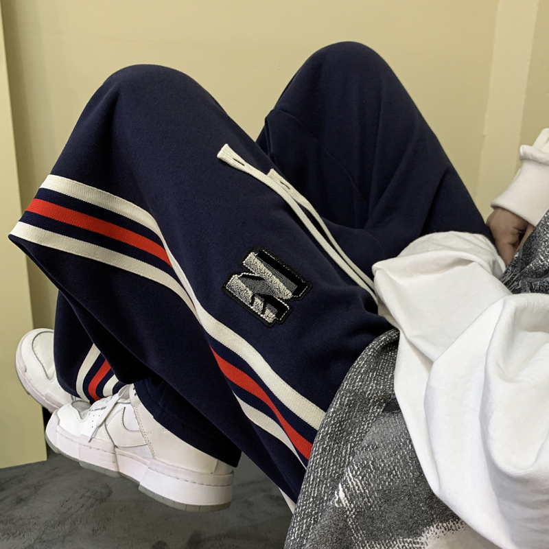 歐美hiphop褲子ins高街潮重磅藏青色衛褲男條紋休閒哈倫街舞褲秋