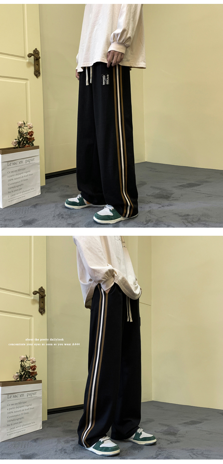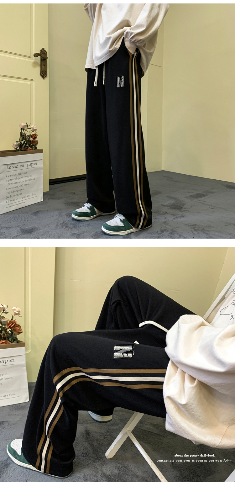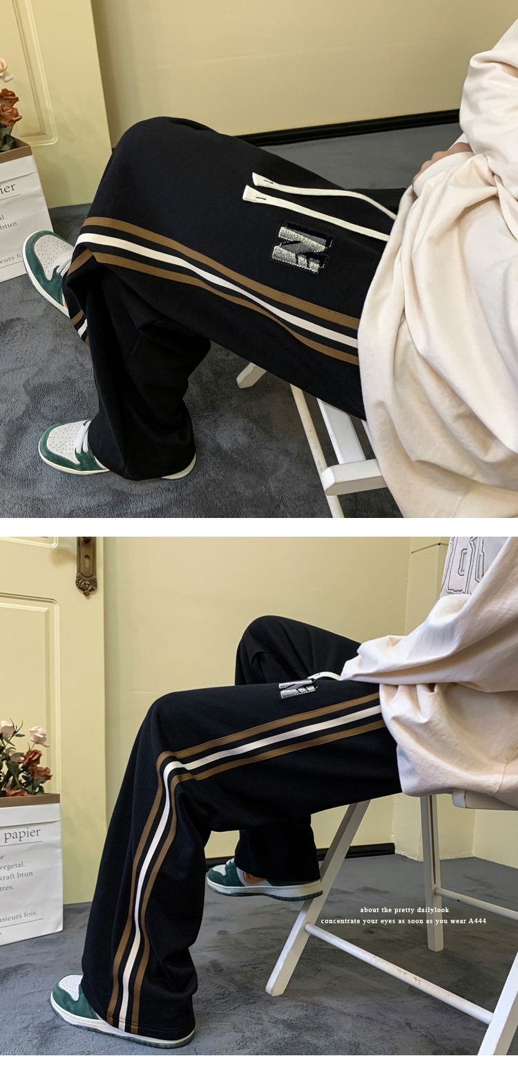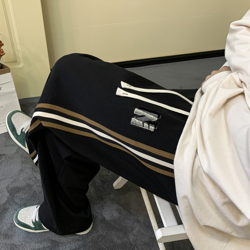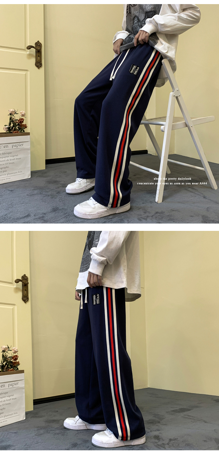 歐美hiphop褲子ins高街潮重磅藏青色衛褲男條紋休閒哈倫街舞褲秋