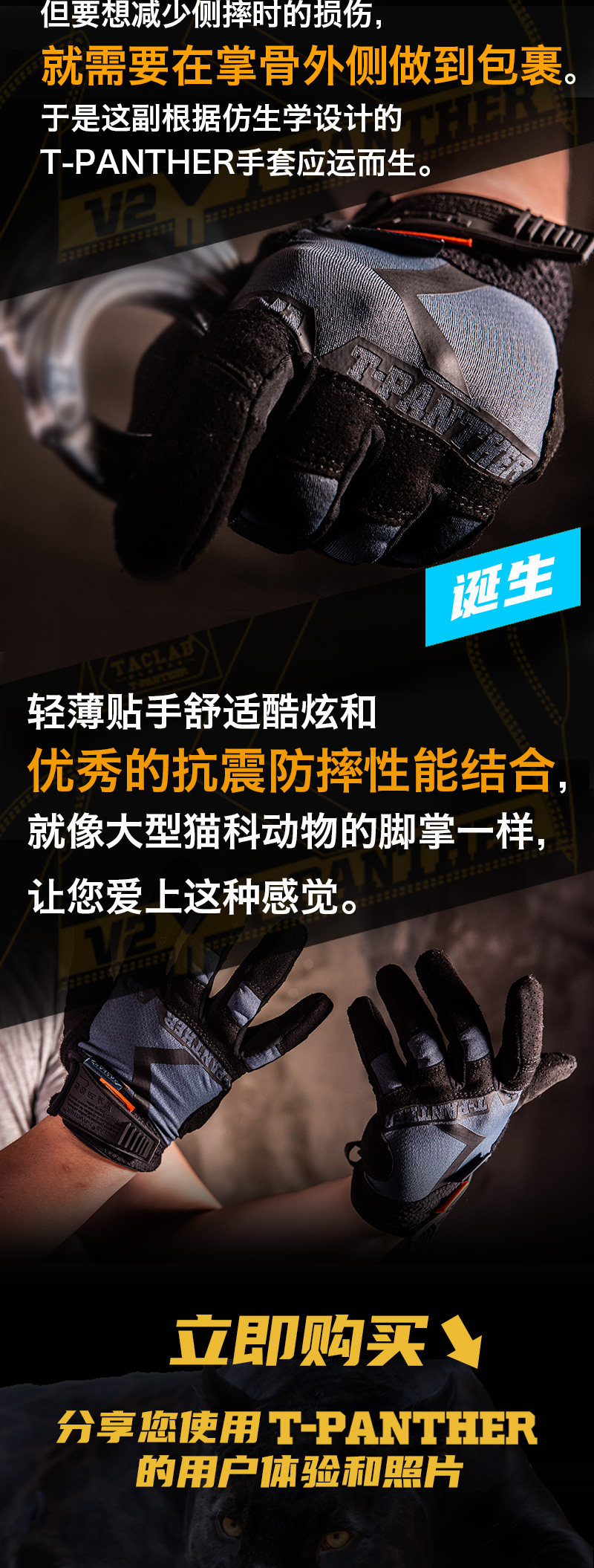 TACLAB T-PANTHER V1黑豹側摔防護戰術騎行戶外全指透氣夏季手套