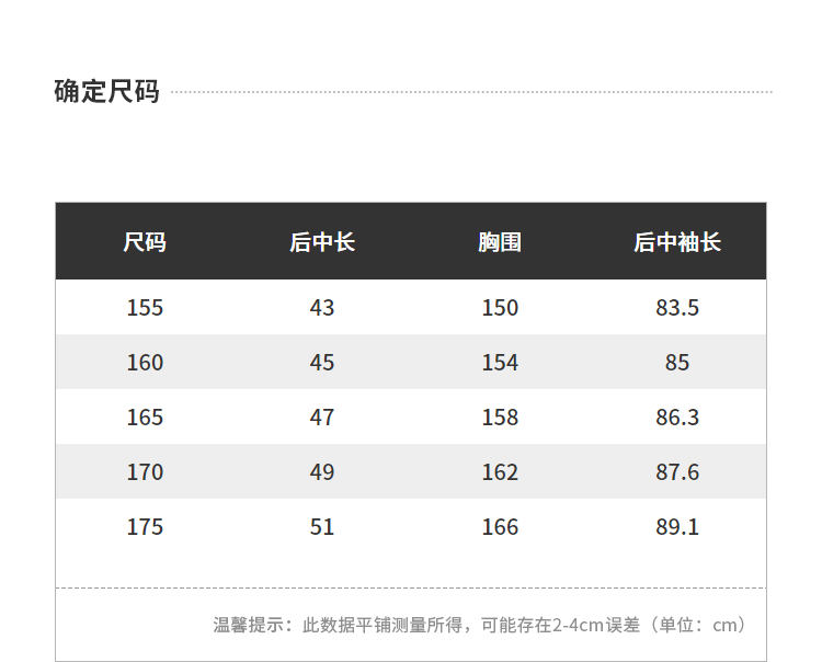 尺碼 155/80A 160/84A 165/88A 170/92A 175/96A 120/50 130/52 140/54 150/56