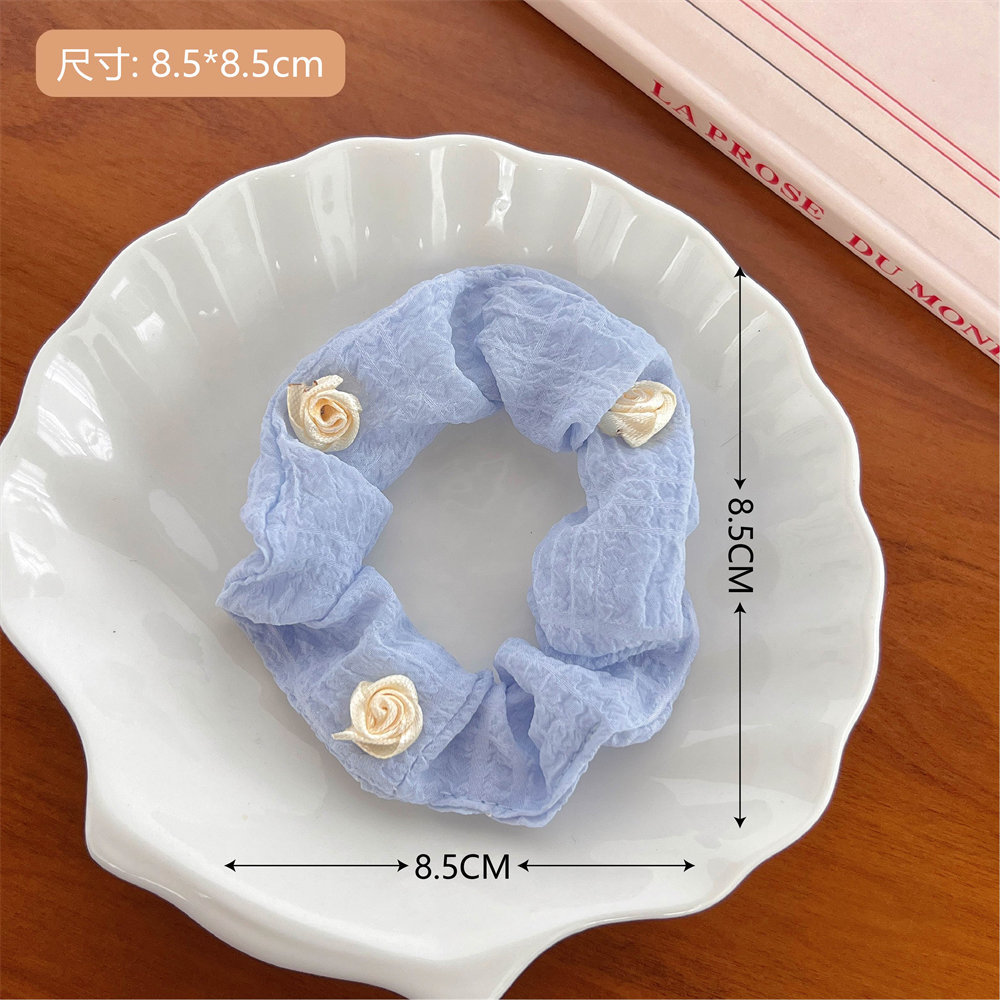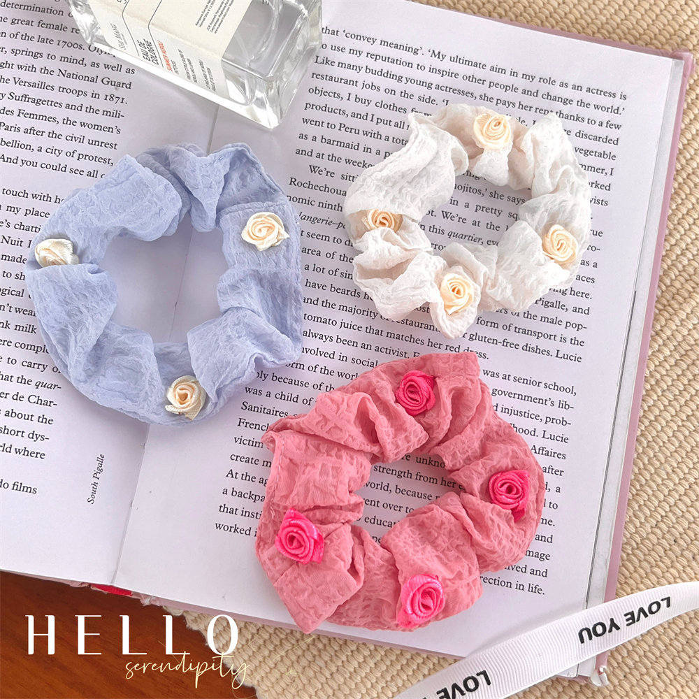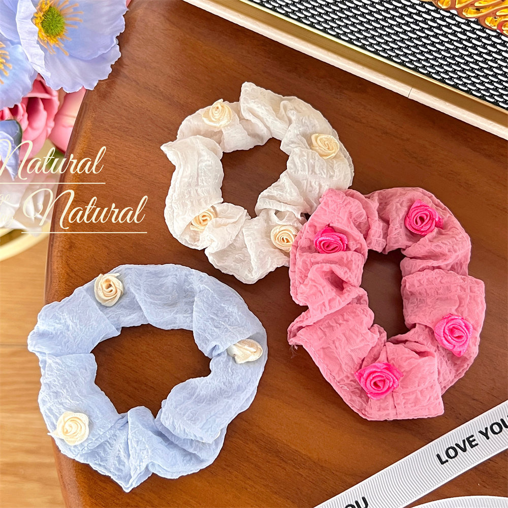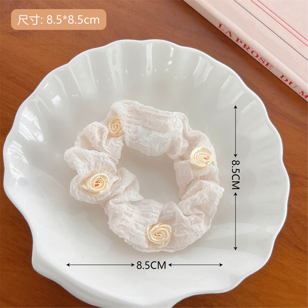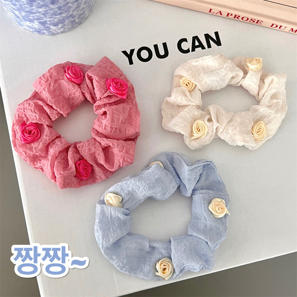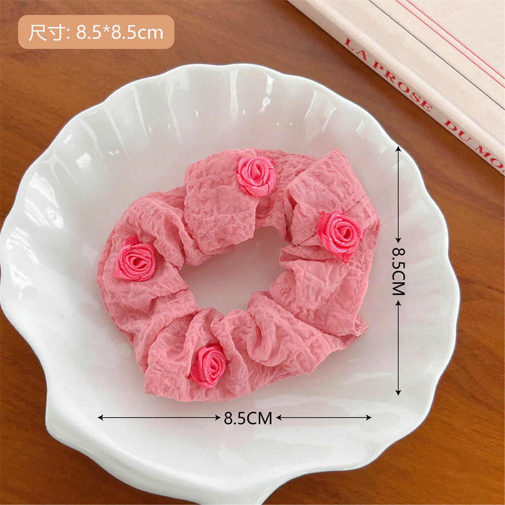 夏季法式玫瑰花大肠发圈少女高级感丸子头发饰优雅气质头绳大肠圈