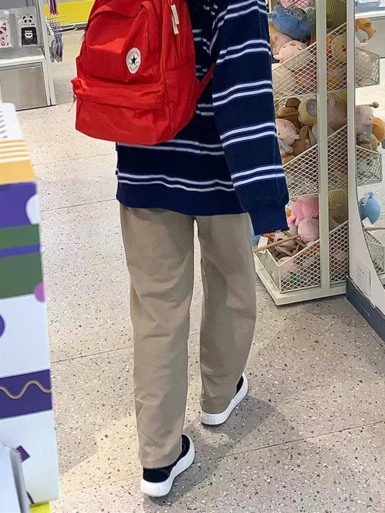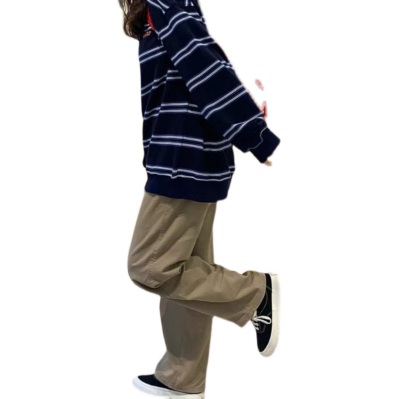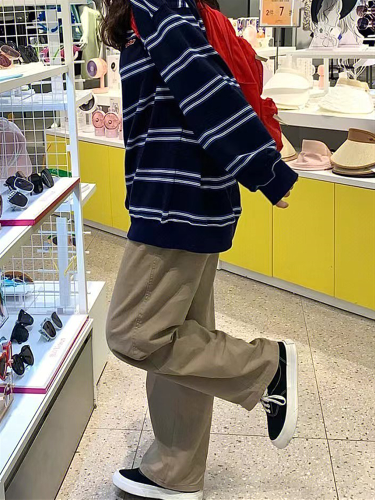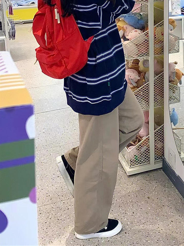 日系卡其色工裝褲子女春秋2023新款爆款直筒褲顯瘦高街休閒寬褲