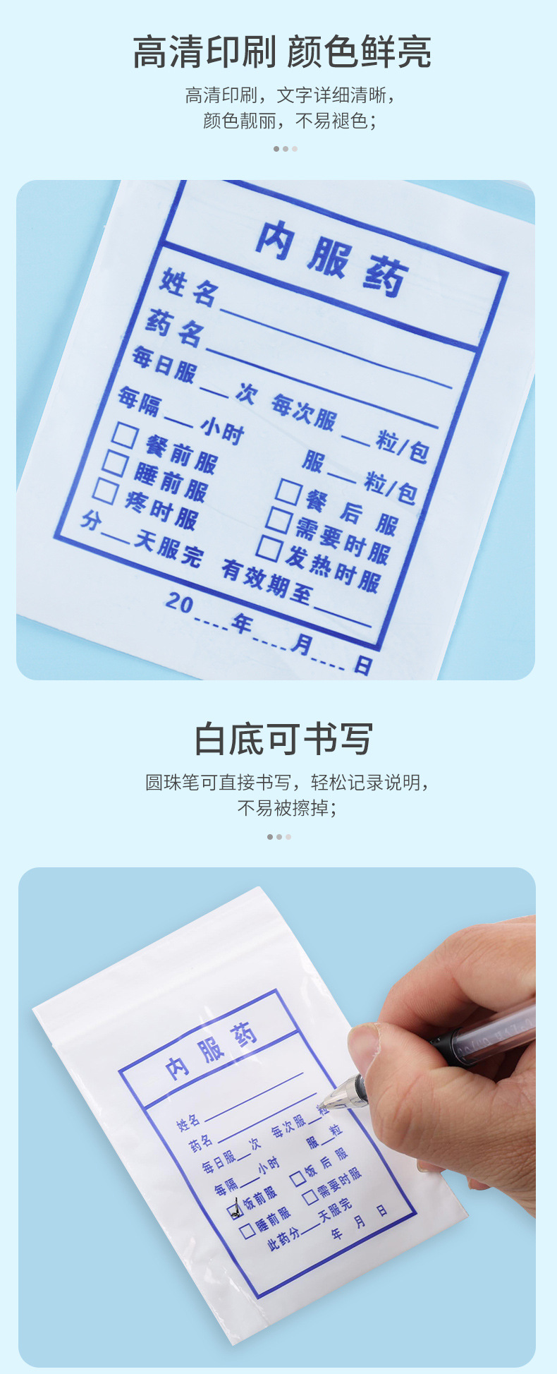 内服药袋一次性小药袋可书写西药袋胶囊分药袋pe自封袋工厂批发