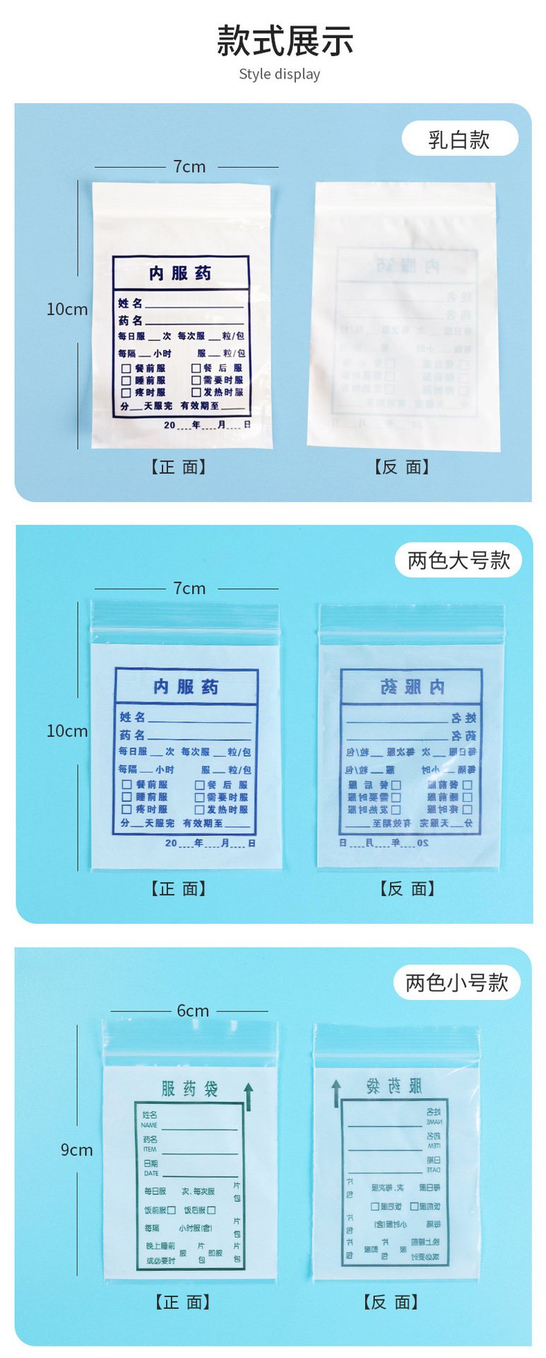 货号 JY内服药袋