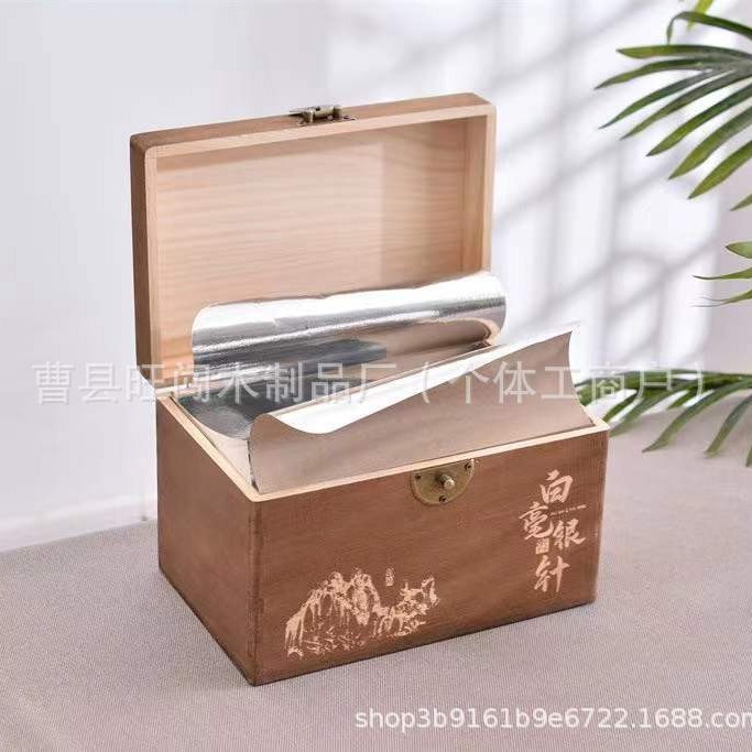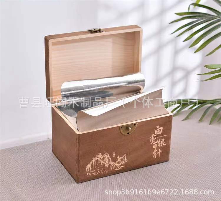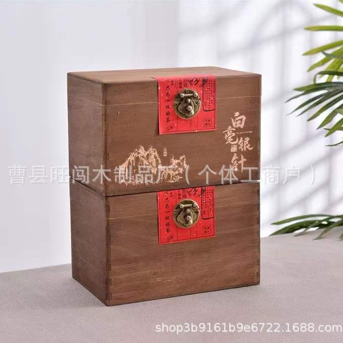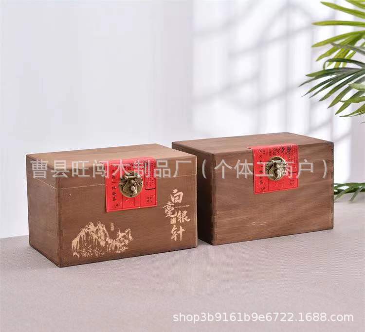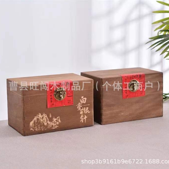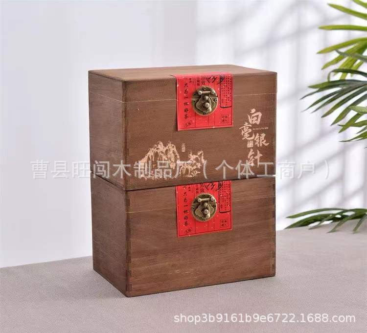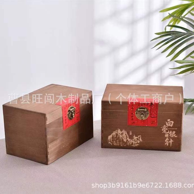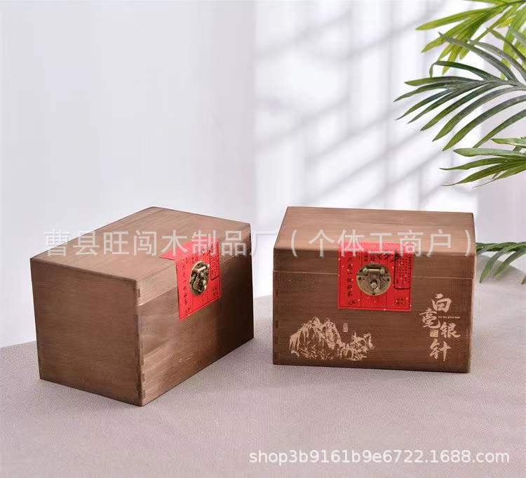 古典翻盖实木茶叶盒通用带锁散茶白毫银针包装木盒复古榆木茶叶盒