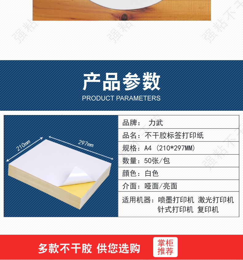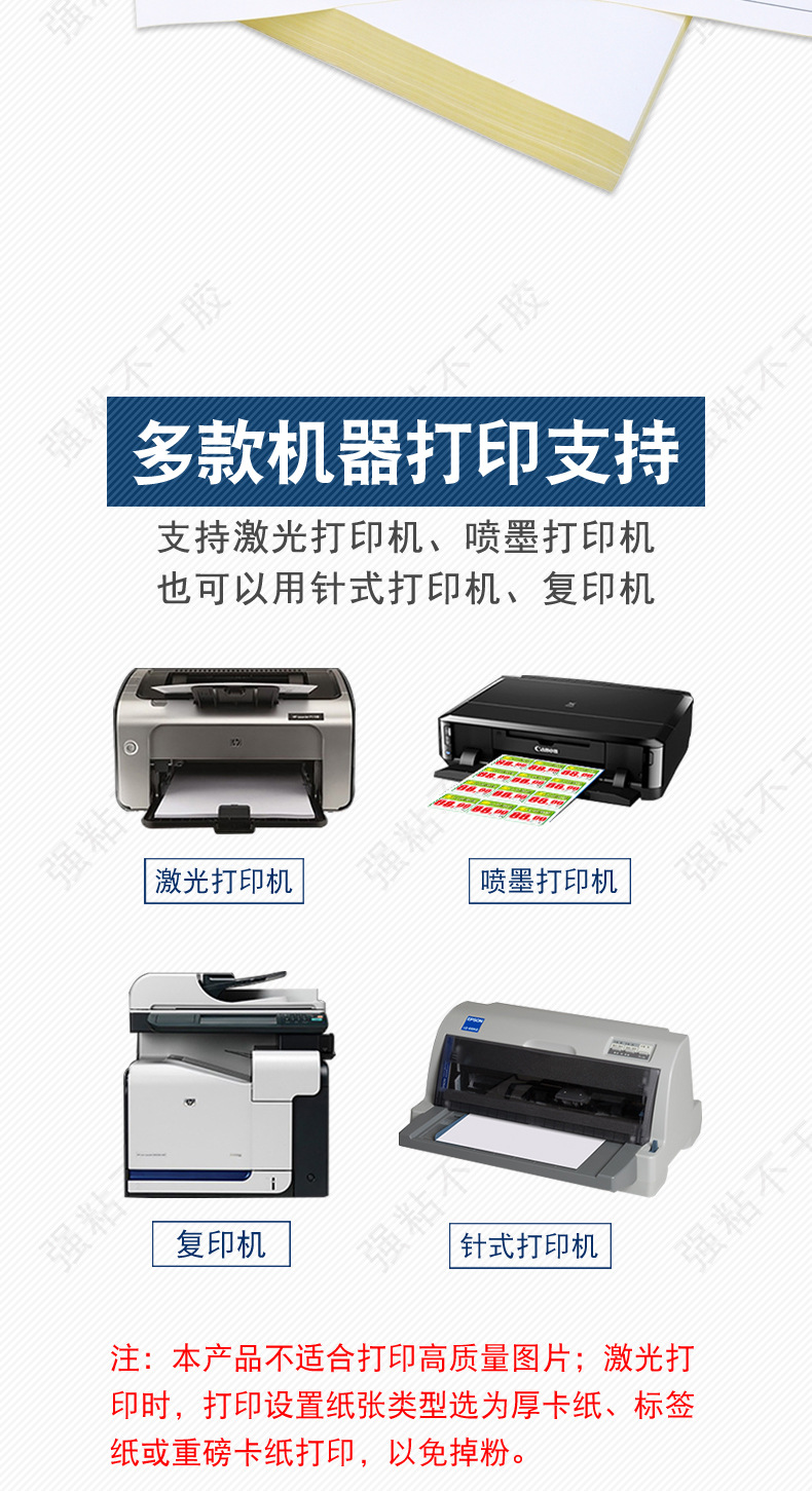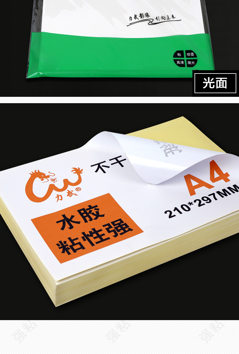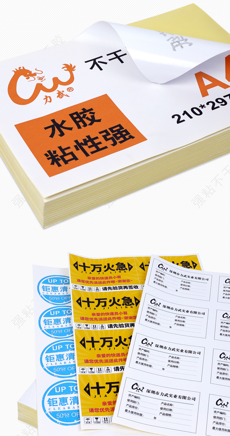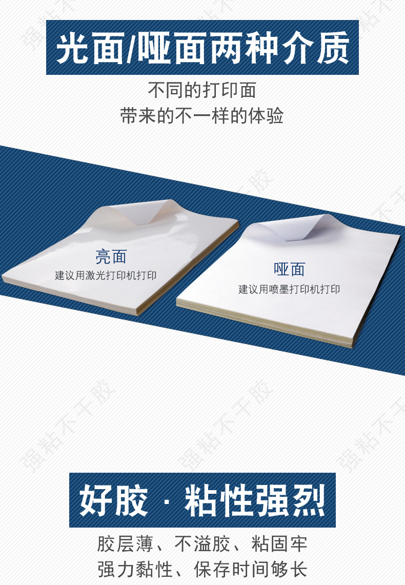 不干胶打印纸A4A3A5光面哑面空白书写办公标签纸激光喷墨背胶贴纸