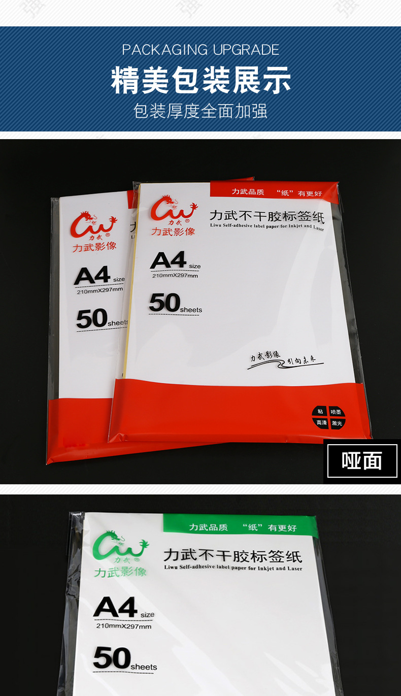 规格 A4 哑面 80g/50张,A4 光面 80g/50张