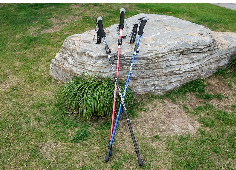 登山杖鋁合金摺疊超輕超短伸縮戶外手扙徒步爬山柺棍行山杖5節