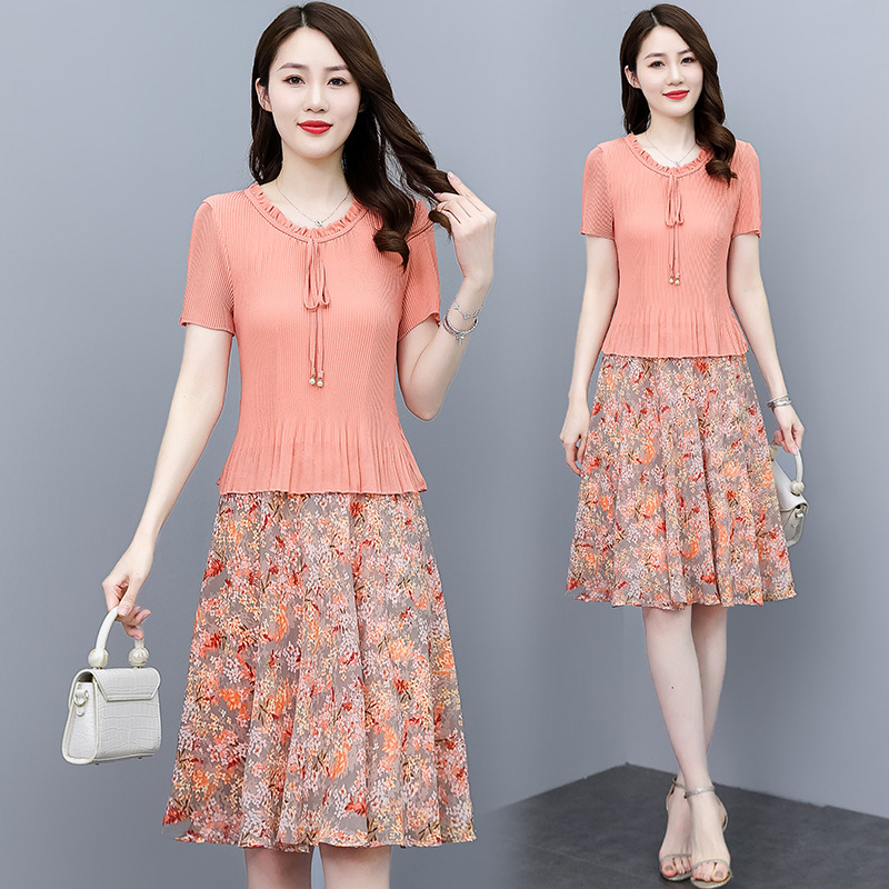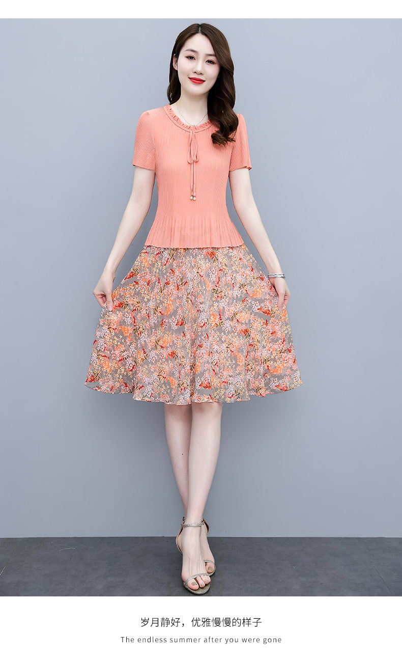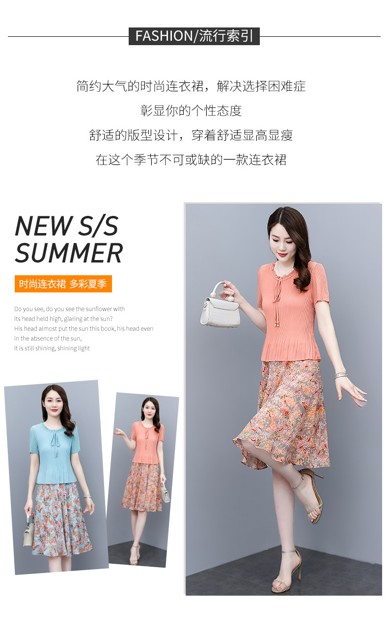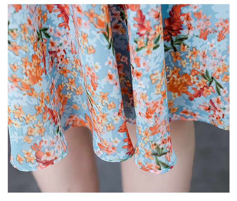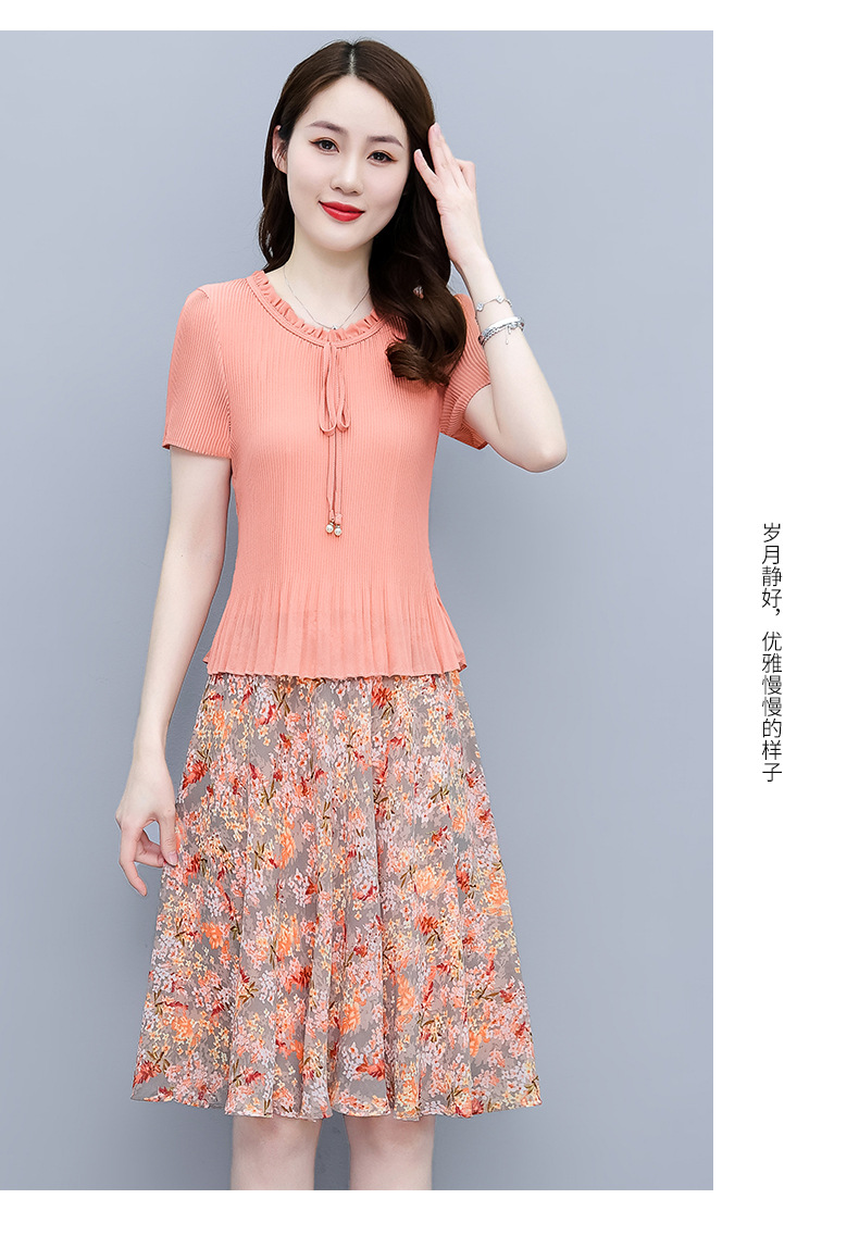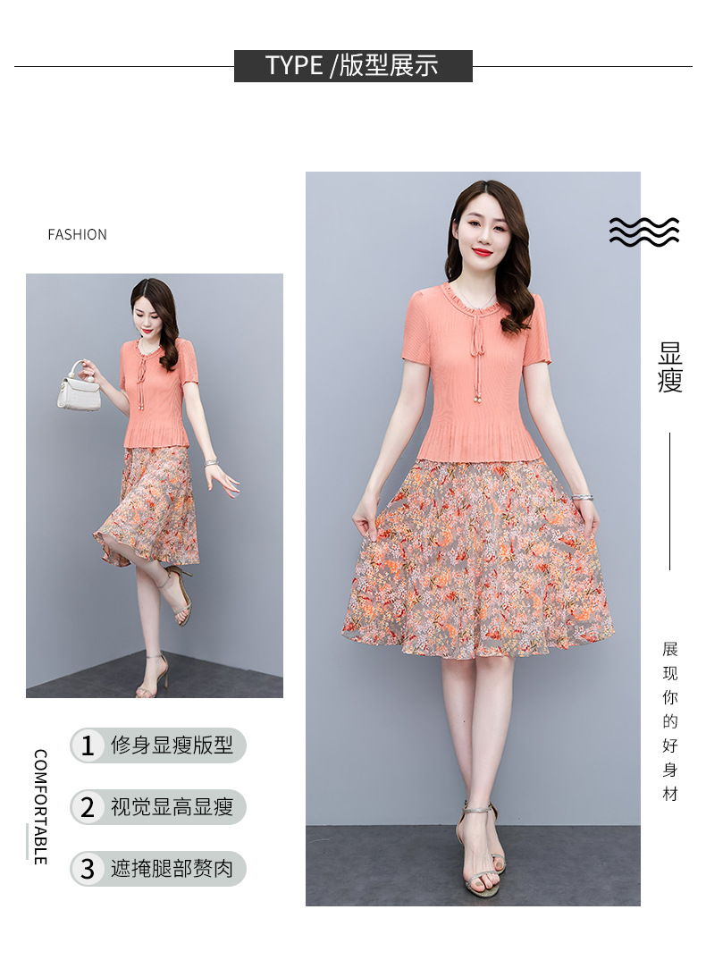 碎花雪纺短袖连衣裙夏2023年新款时尚气质洋气短袖假两件裙子夏