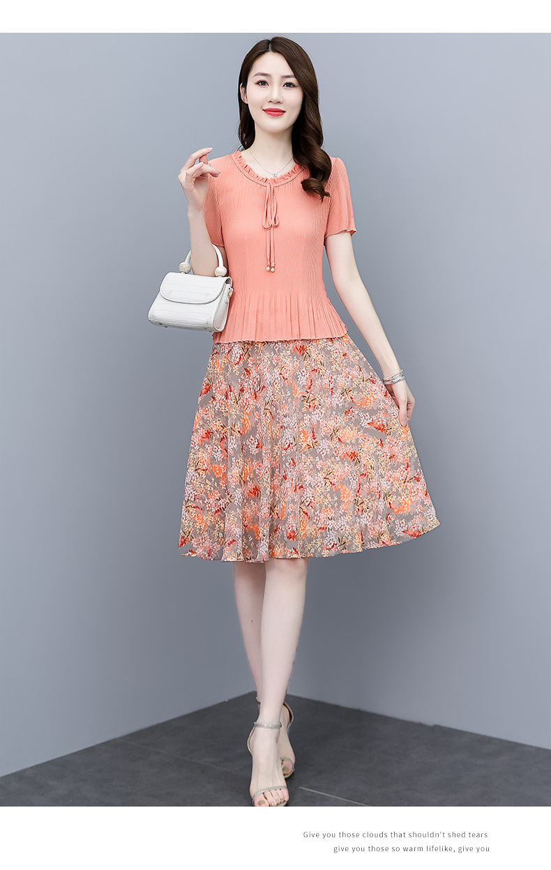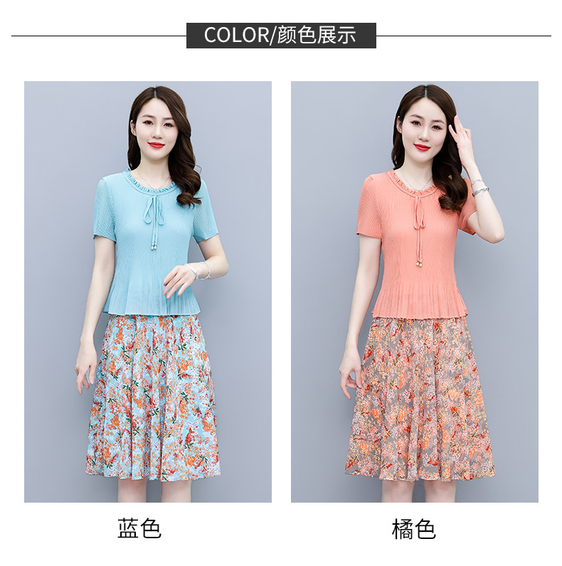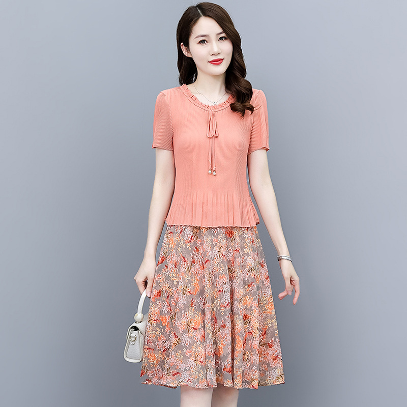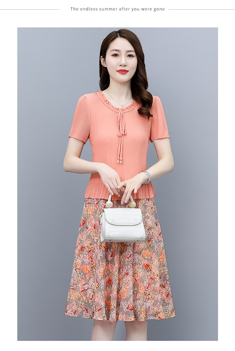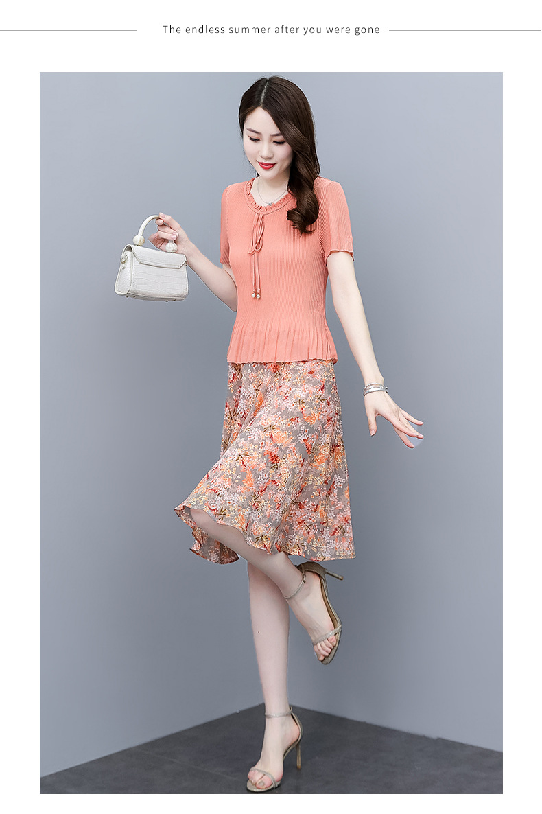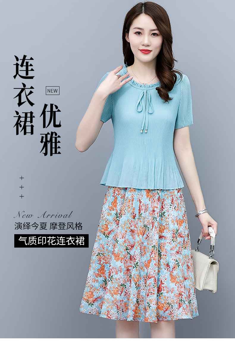 碎花雪纺短袖连衣裙夏2023年新款时尚气质洋气短袖假两件裙子夏