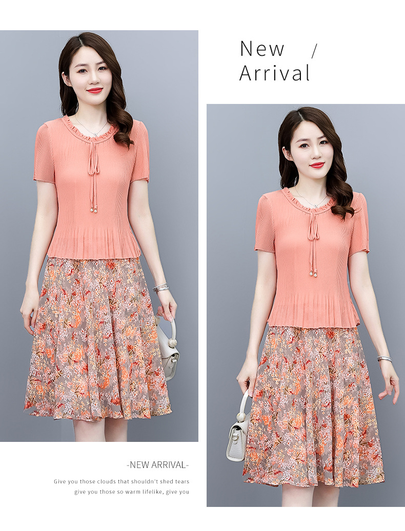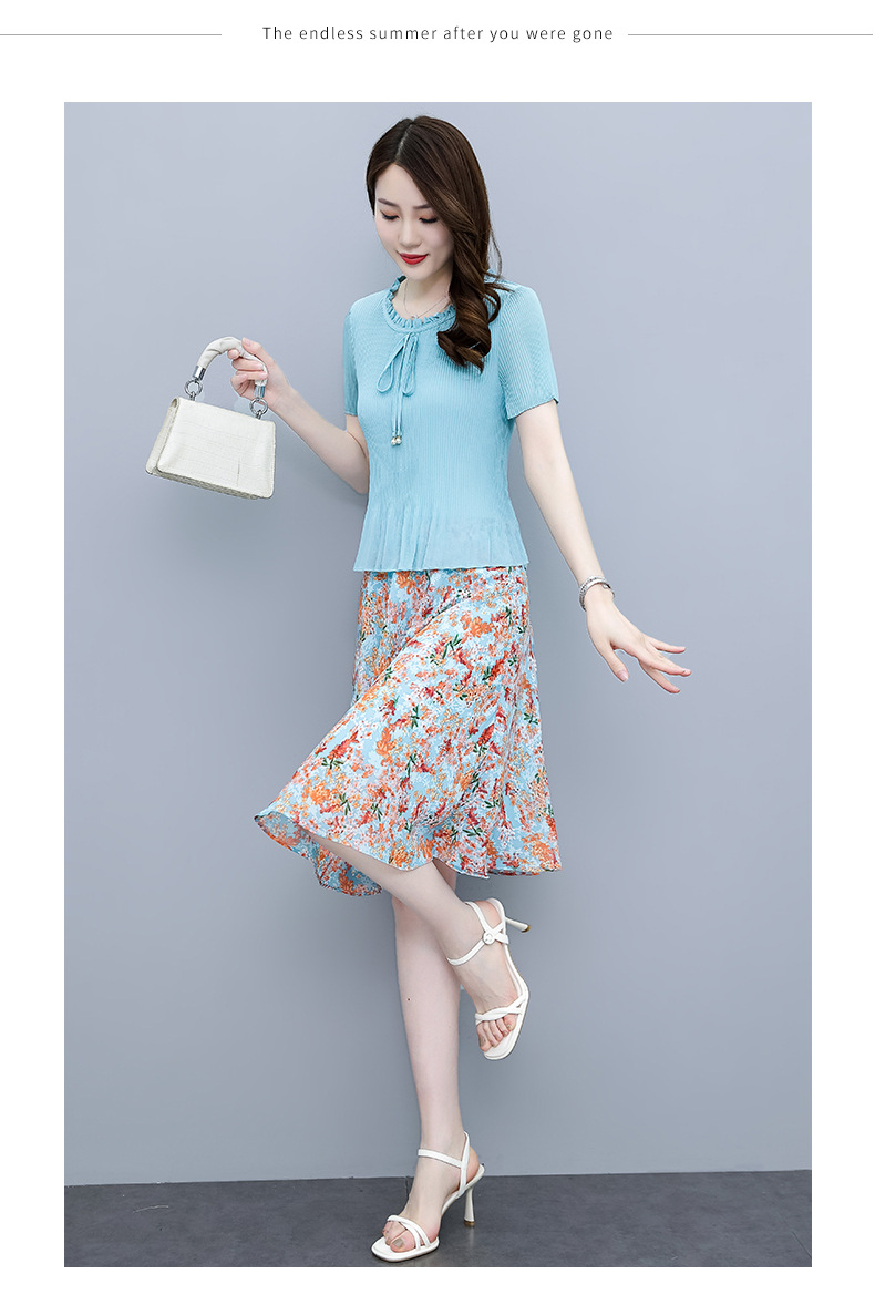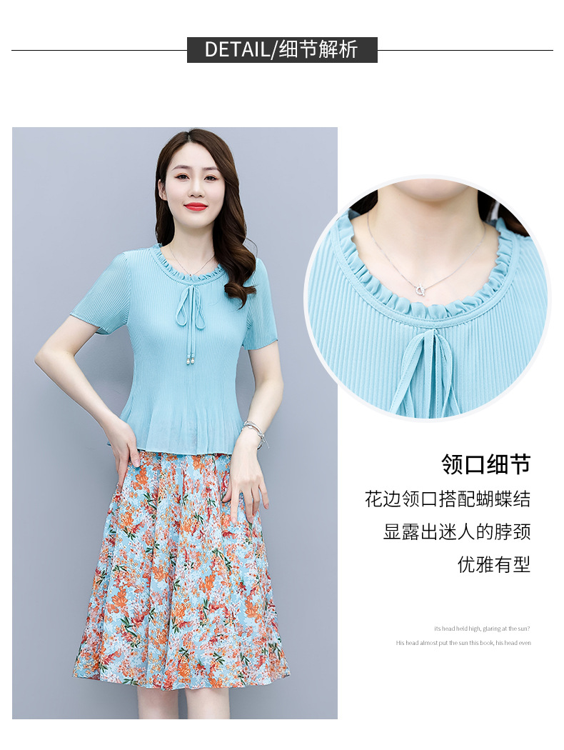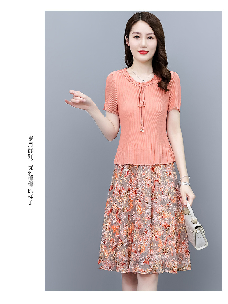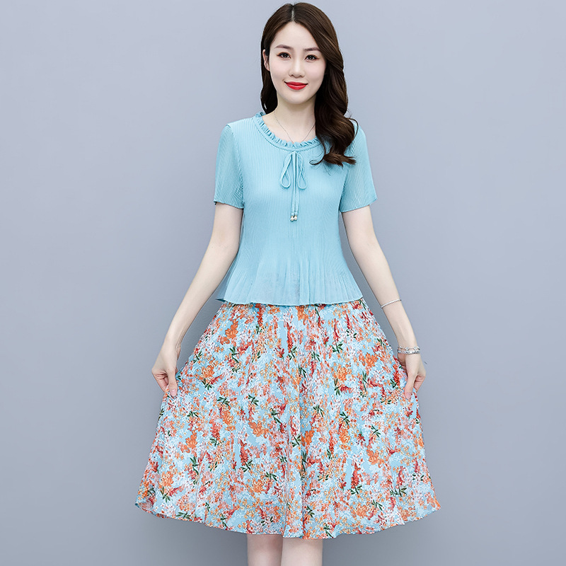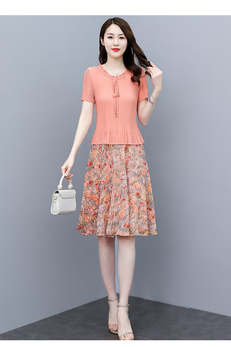 碎花雪纺短袖连衣裙夏2023年新款时尚气质洋气短袖假两件裙子夏
