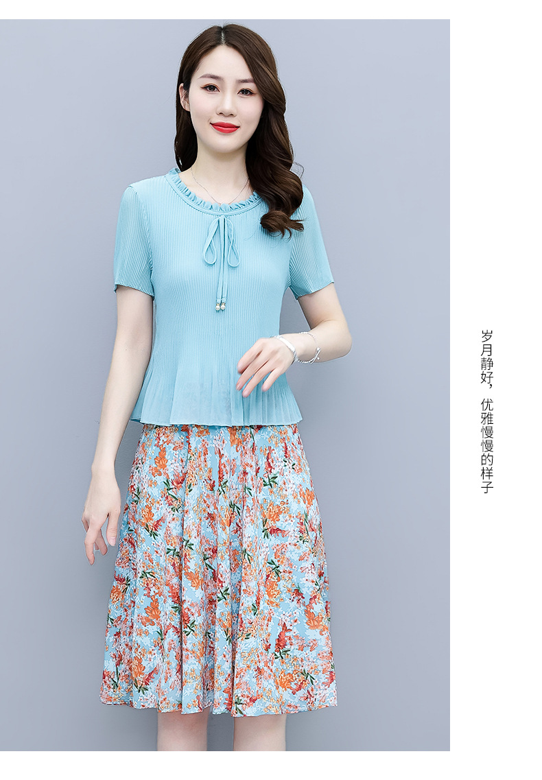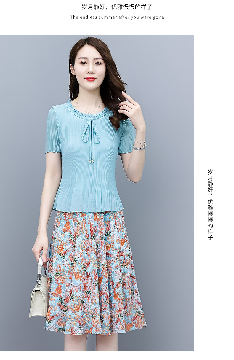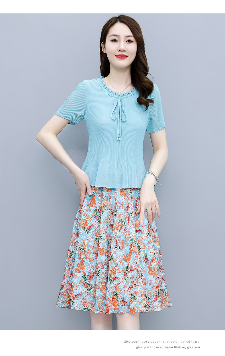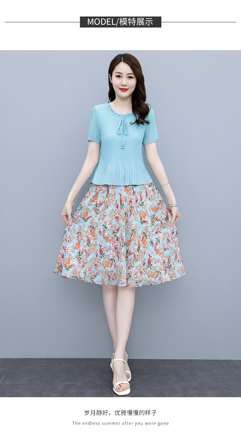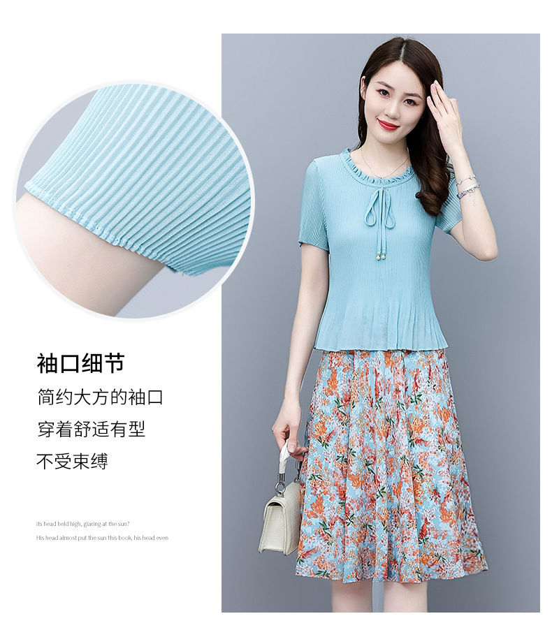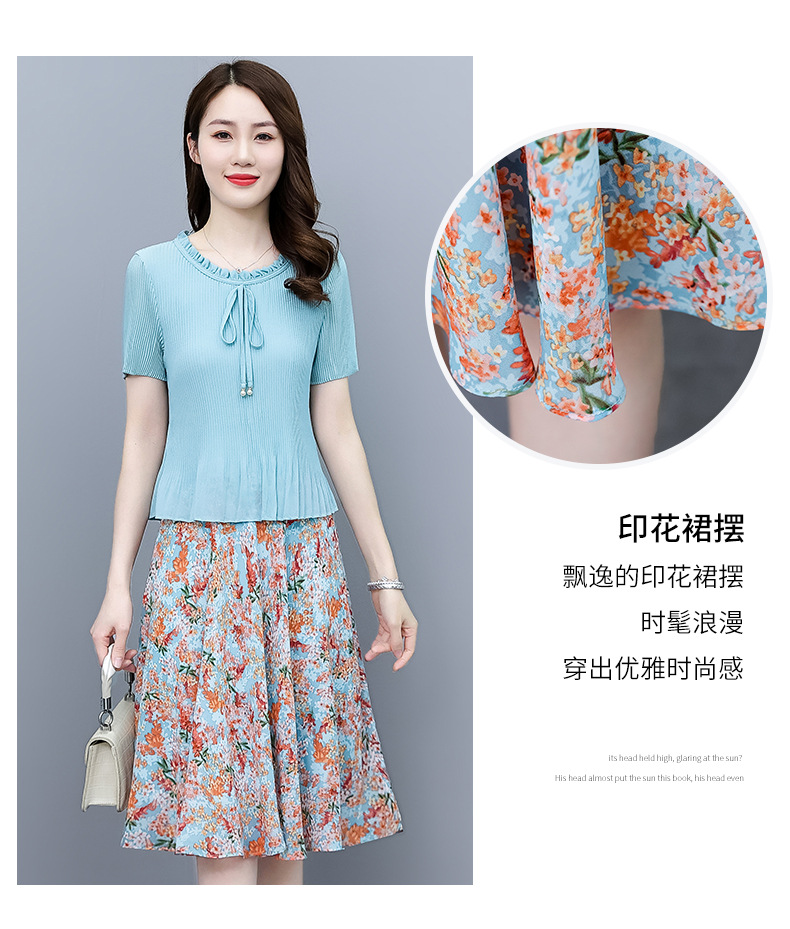 碎花雪纺短袖连衣裙夏2023年新款时尚气质洋气短袖假两件裙子夏