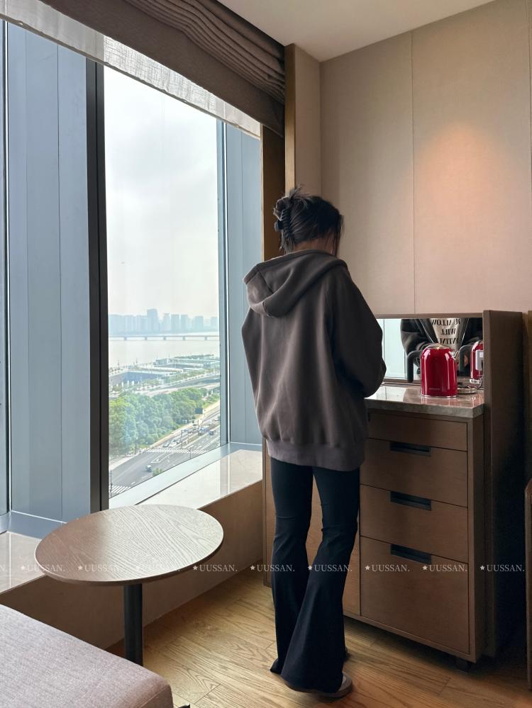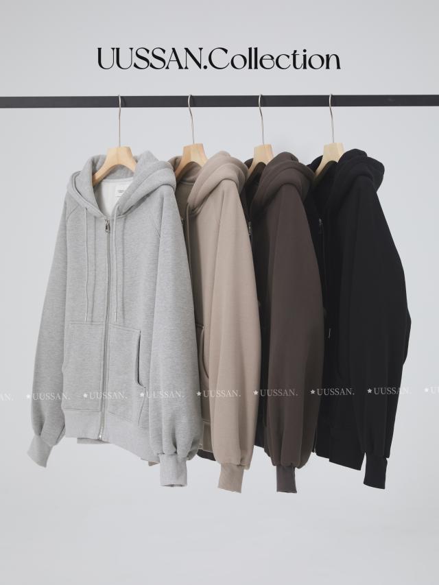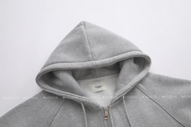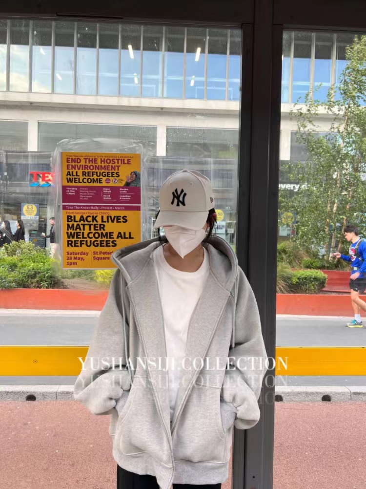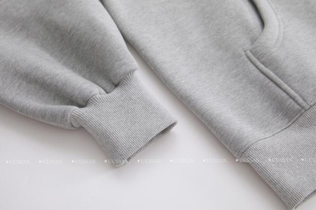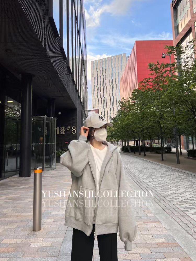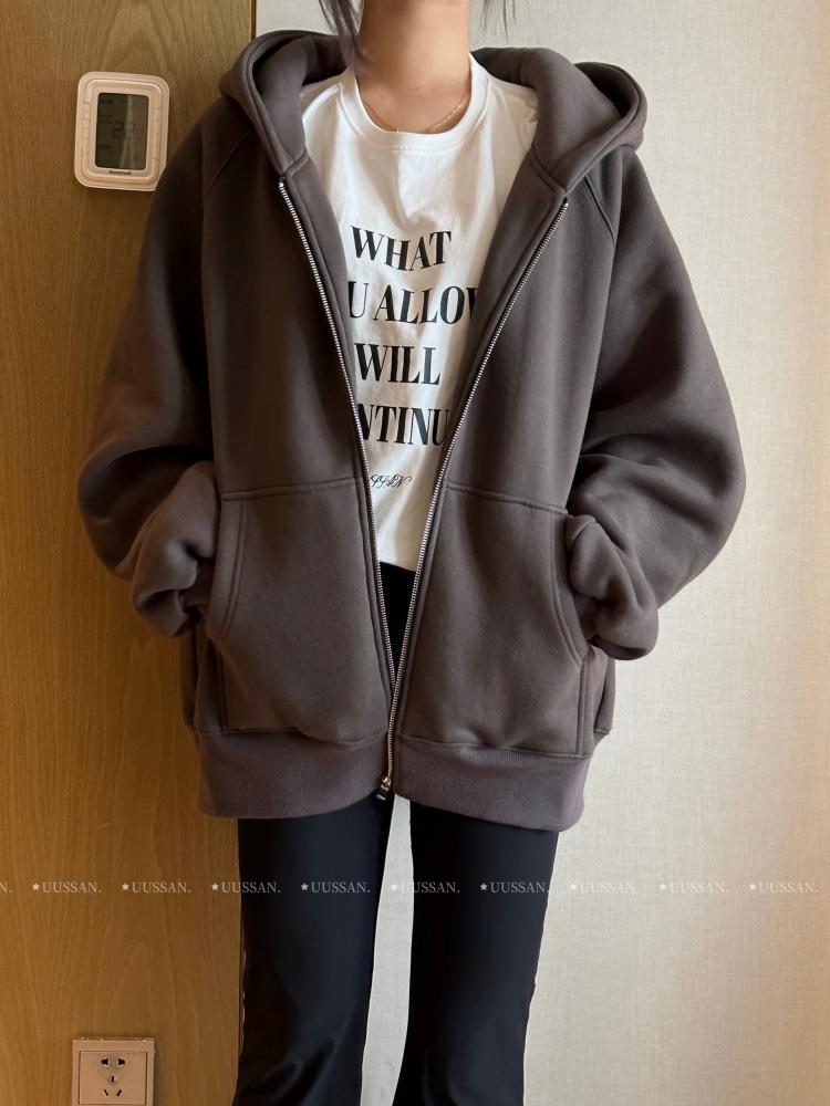 「UUSSAN羽扇絲集」慵懶風連帽加絨衛衣寬鬆休閒外套開衫女2022灰
