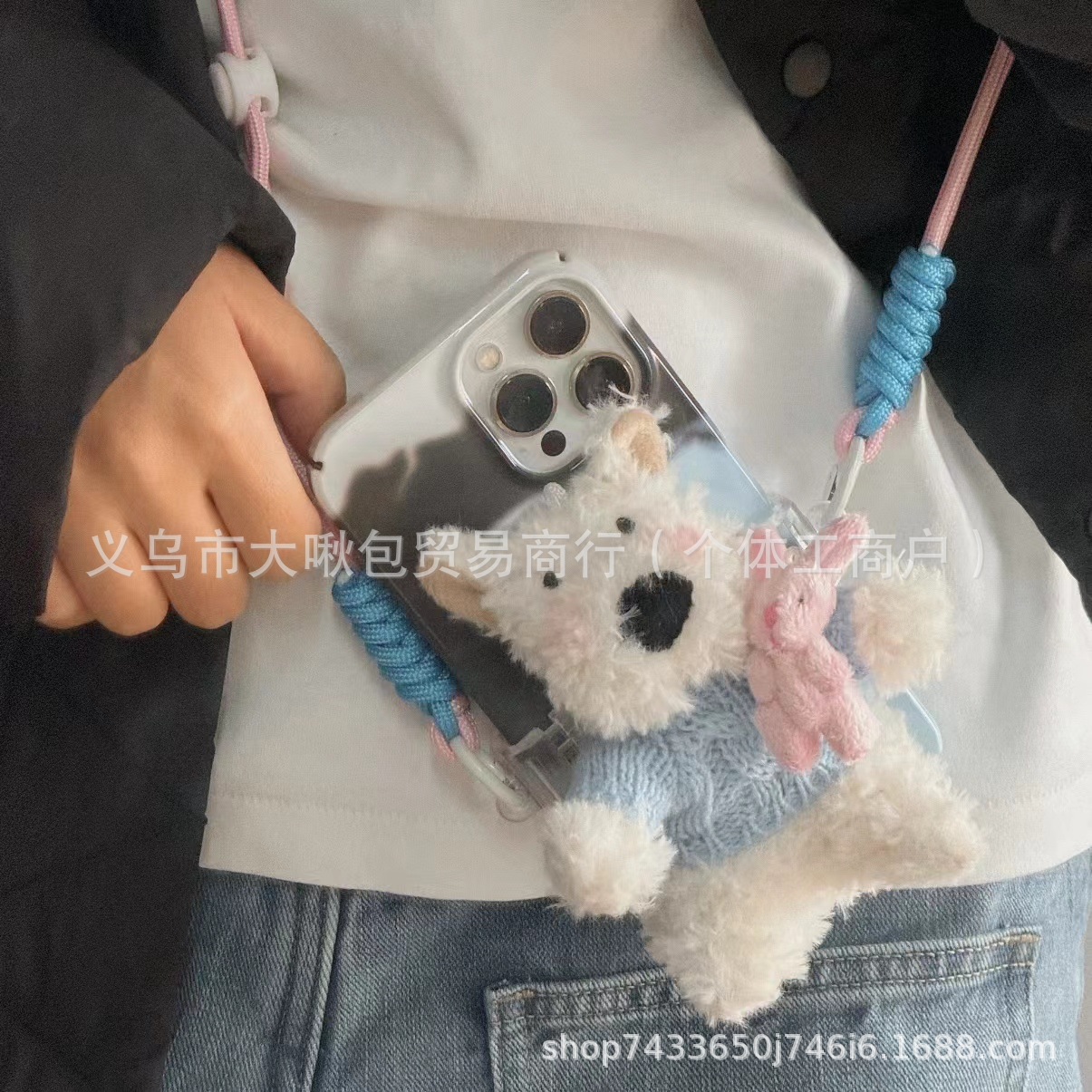 可爱西高地潦草小狗手机背夹斜跨链毛绒公仔挂件闺蜜送人礼物批发