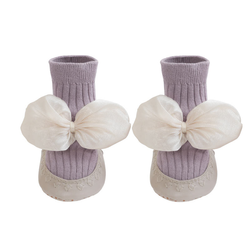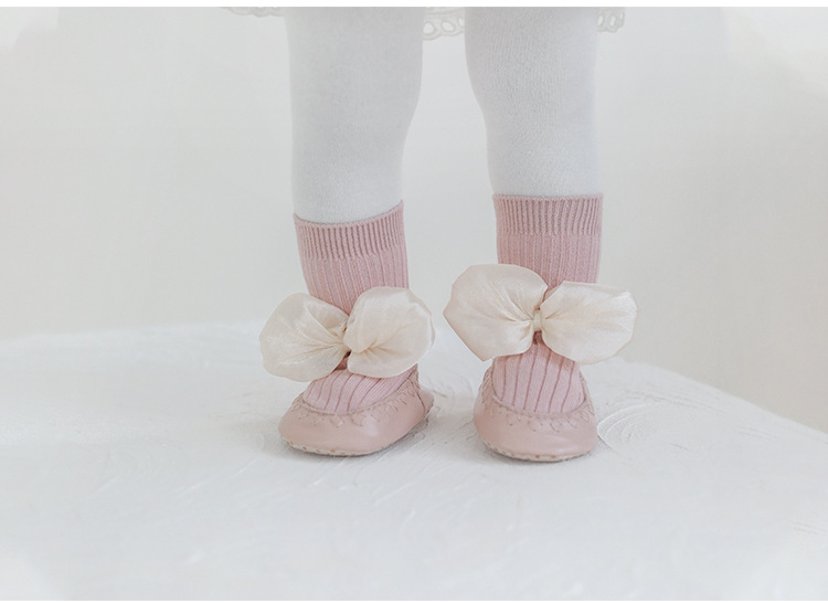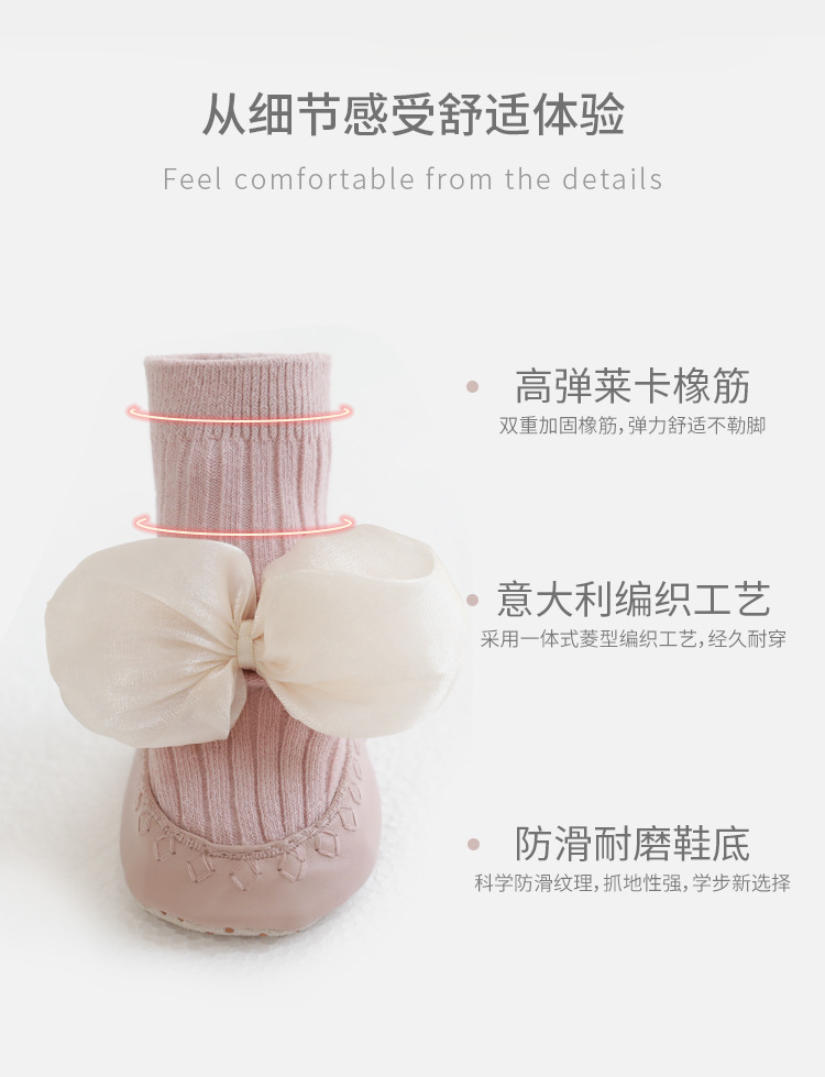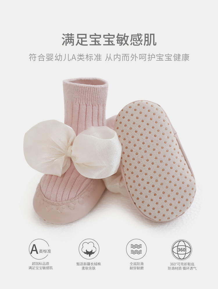 婴儿地板鞋袜2022秋冬新品韩国公主蝴蝶结宝宝学步鞋袜可爱皮底鞋