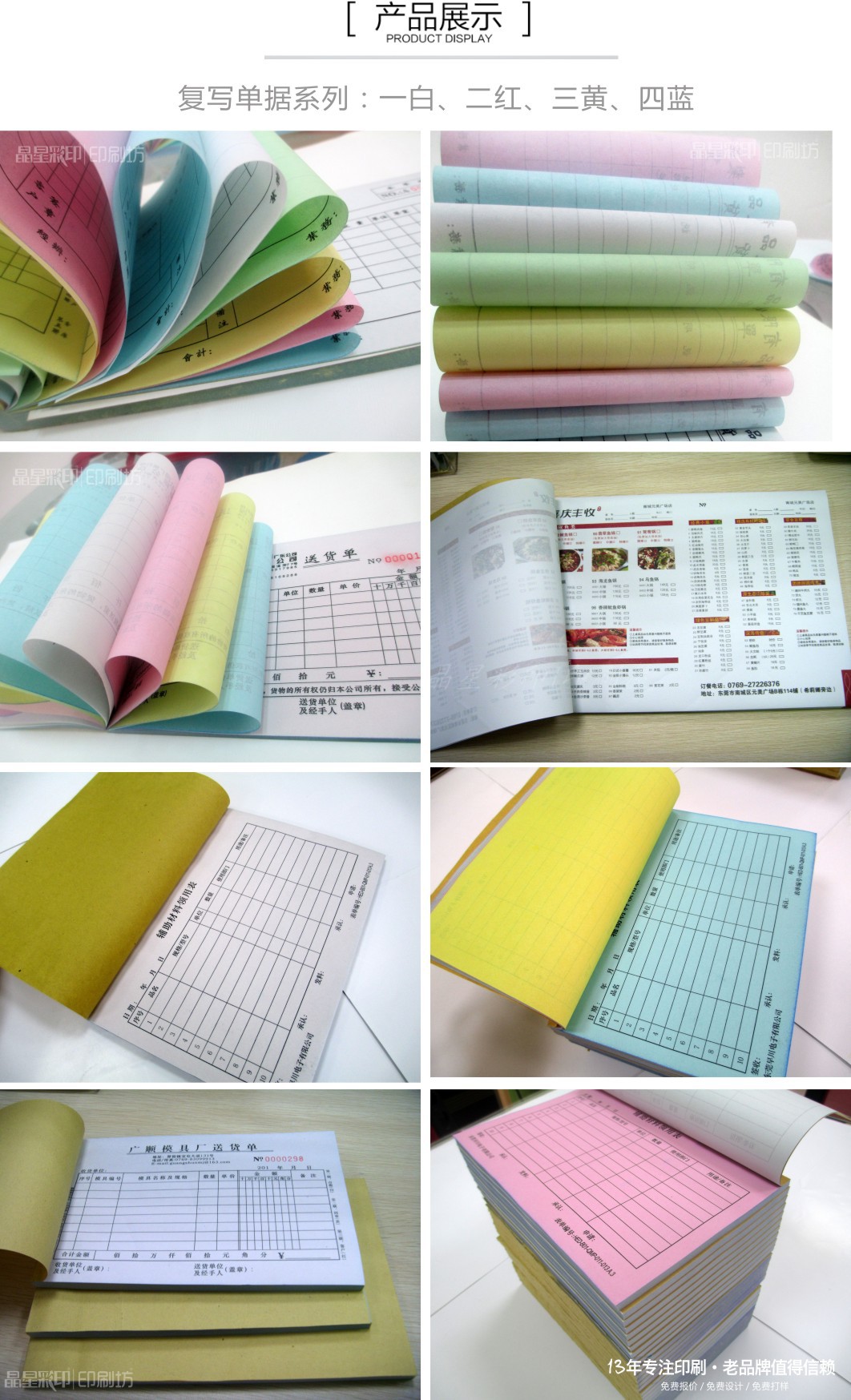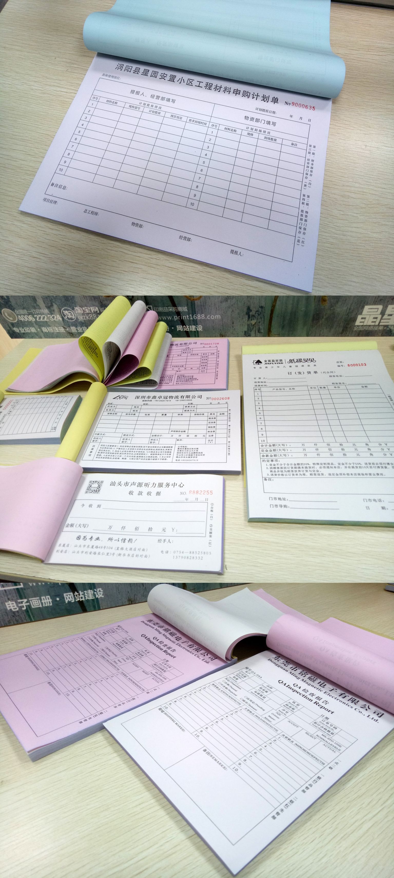 表格印刷,主要印刷各种票据、表格纸。例如:送货单、销售单,登记表、出库单、入库单、点餐单、货运单、收费单据、信息记录纸等。