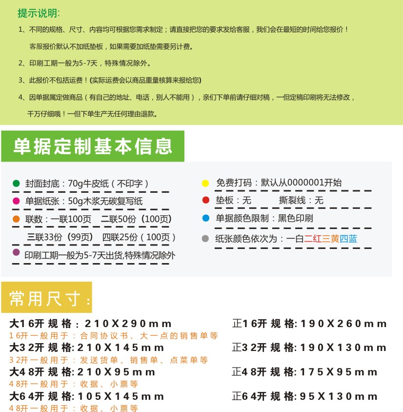 特别提示:本品为订制品,客户文件已确认OK,下单生产将无法改动表单内容。因为订制品的有印刷内容不能进行二次销售,此类问题不支持退货!