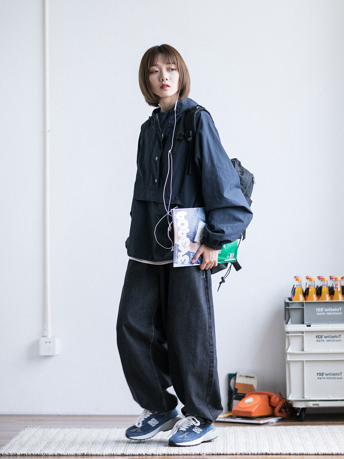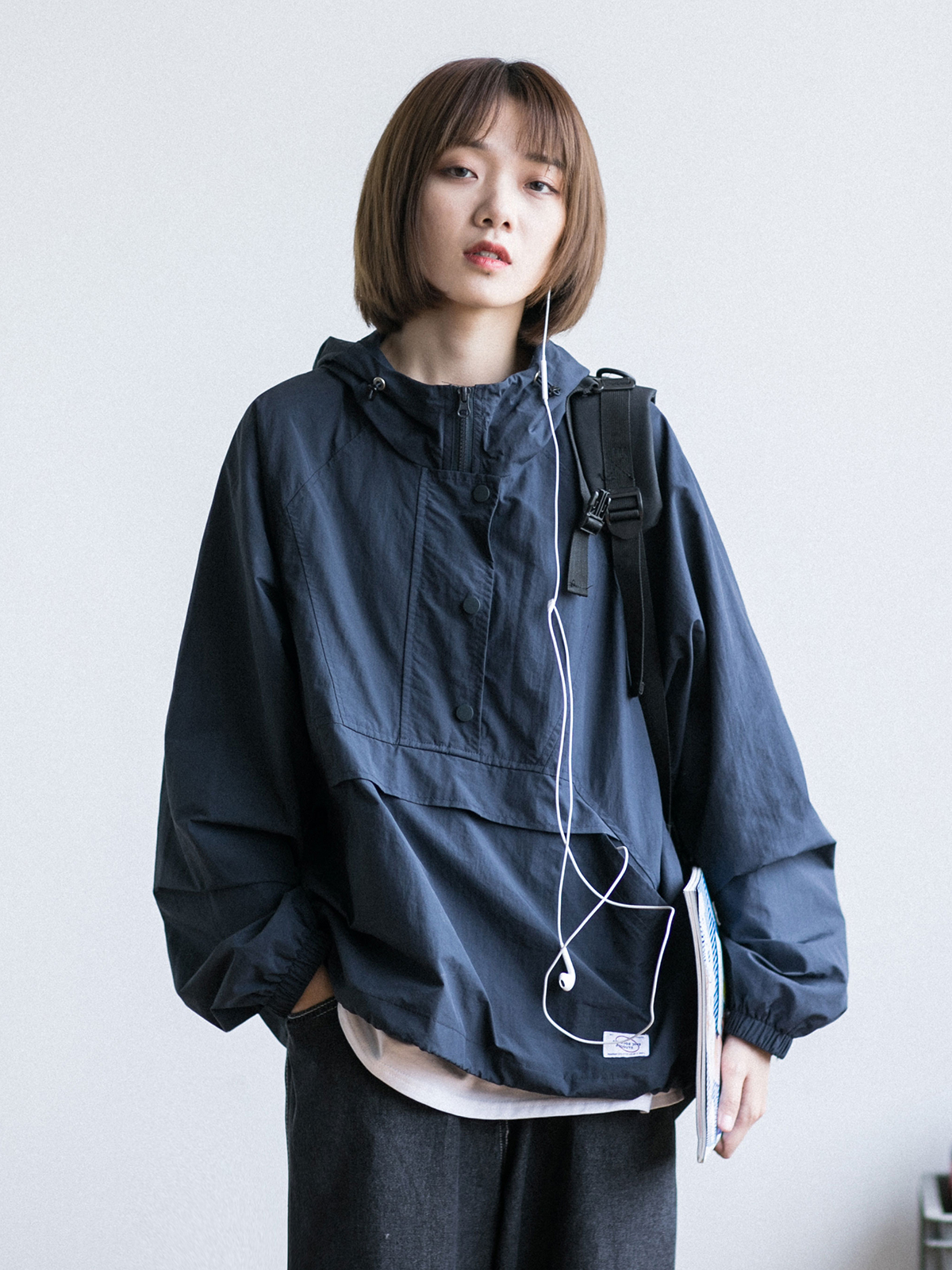 日系登山連帽寬鬆戶外衝鋒外套男女潮牌春秋復古機能純色套頭夾克
