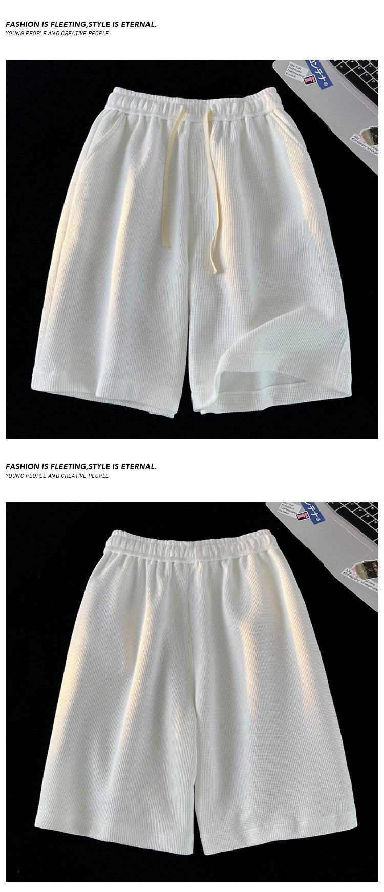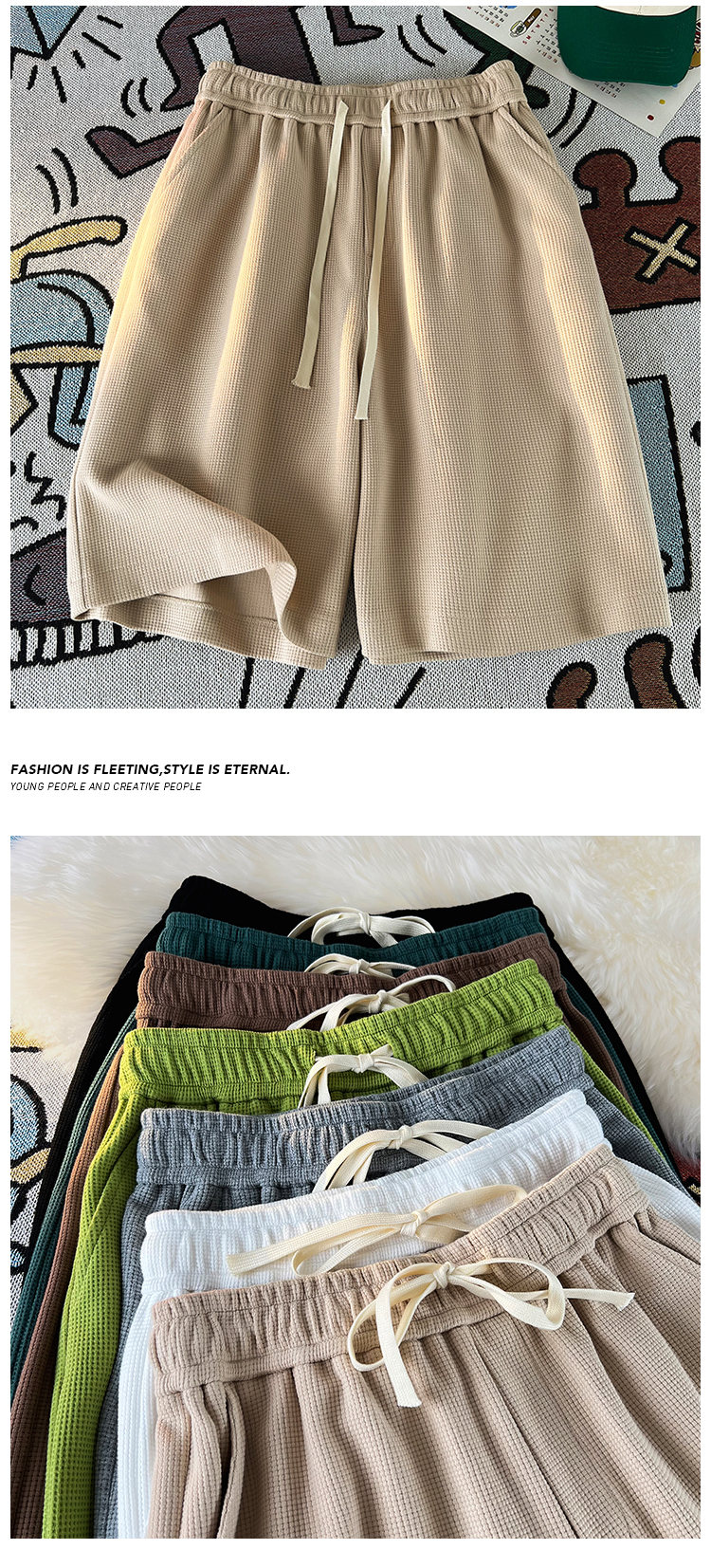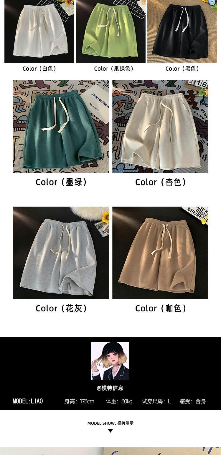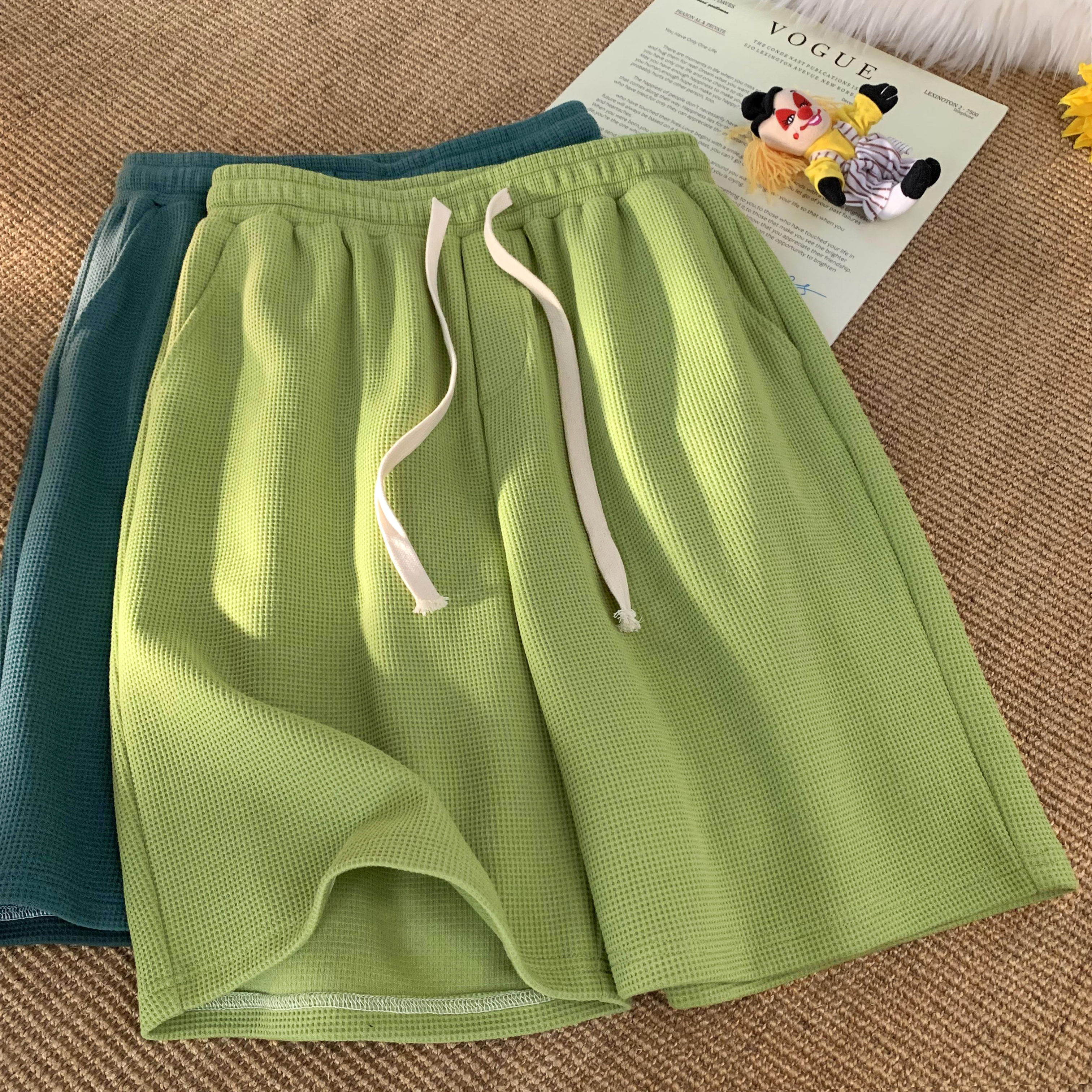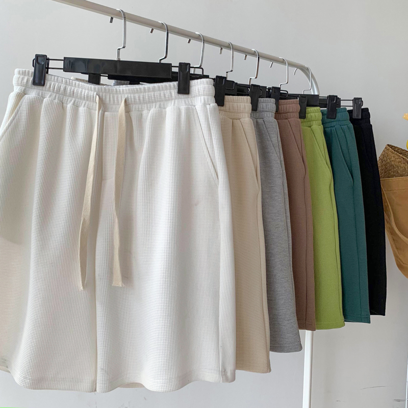 華夫格運動短褲女2023新款夏季薄款五分褲子寬鬆休閒大尺碼純棉五分褲