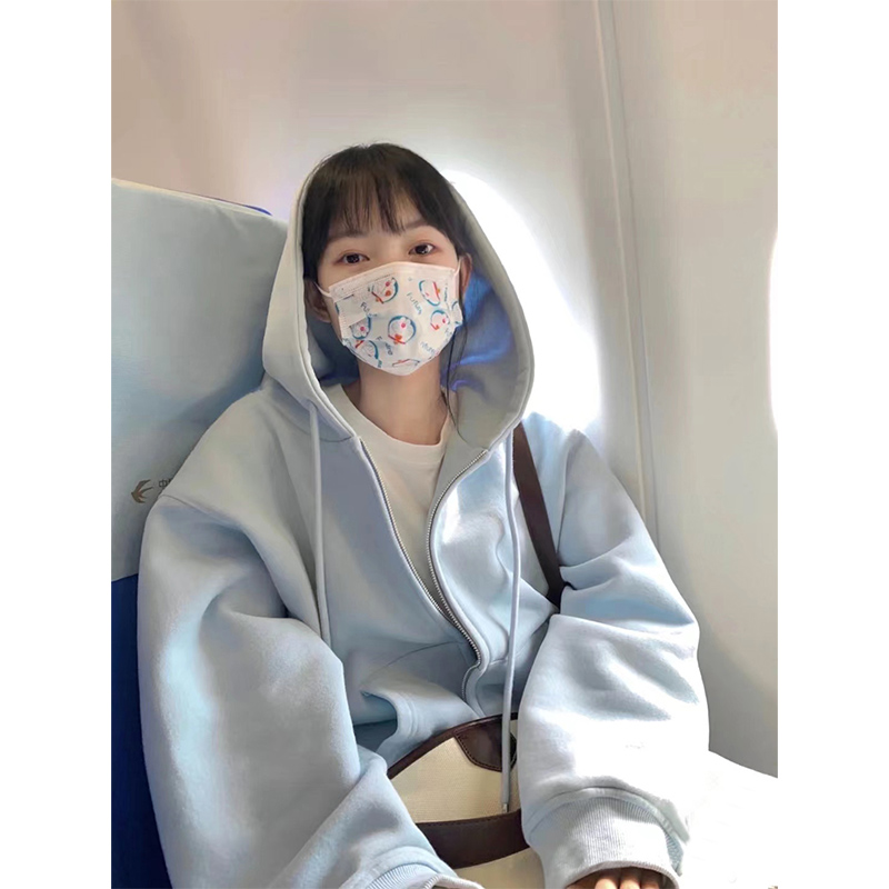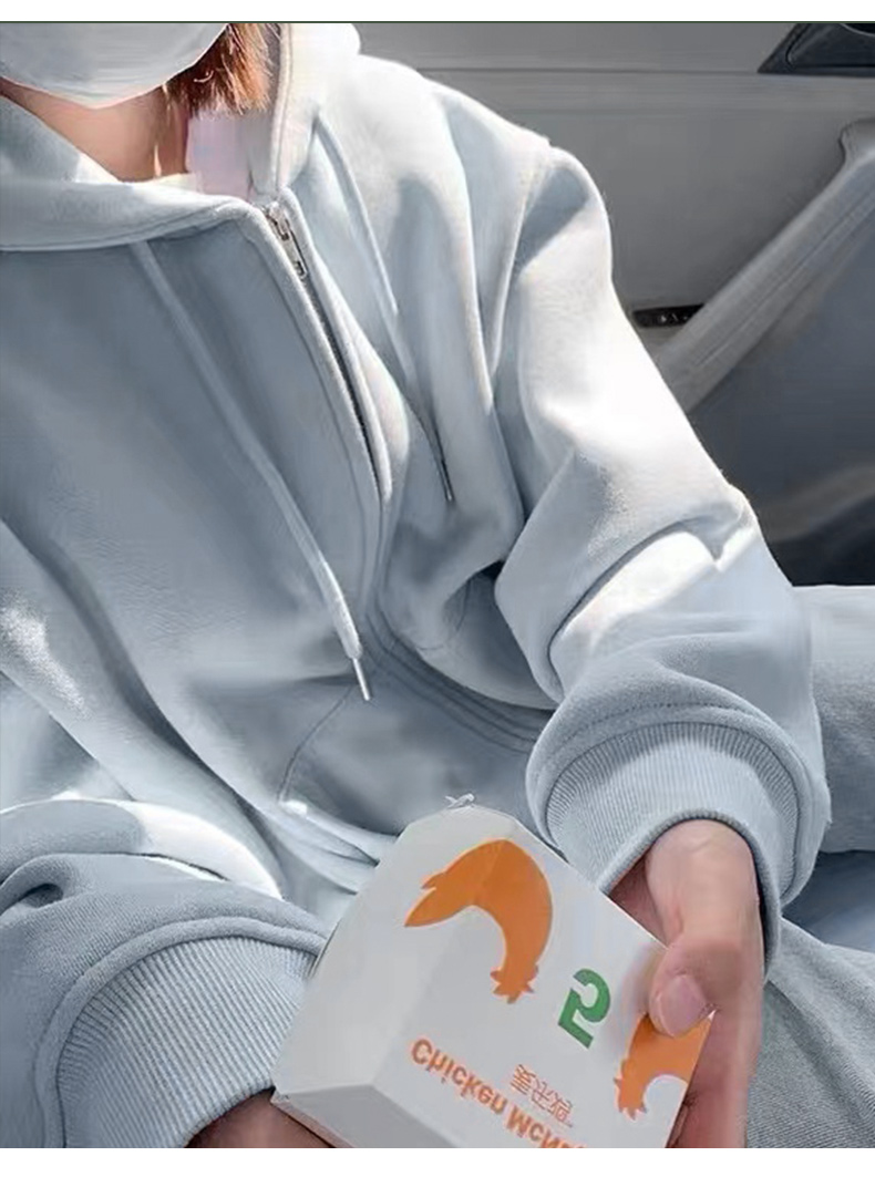 秋季連帽藍色運動衫外套女春秋2023新款女裝爆款運動套裝開衫早秋厚