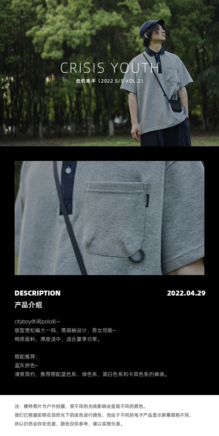 危機青年 cityboy休閒polo衫男女 日系復古簡約口袋拉夫·勞倫馬球衫短袖T恤