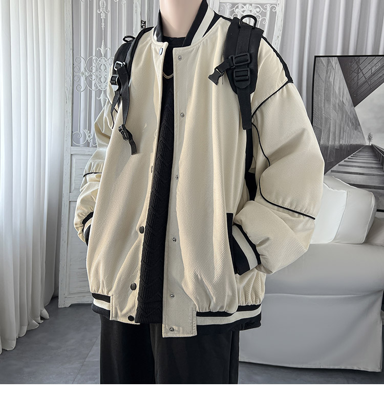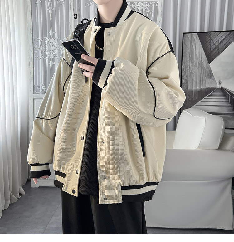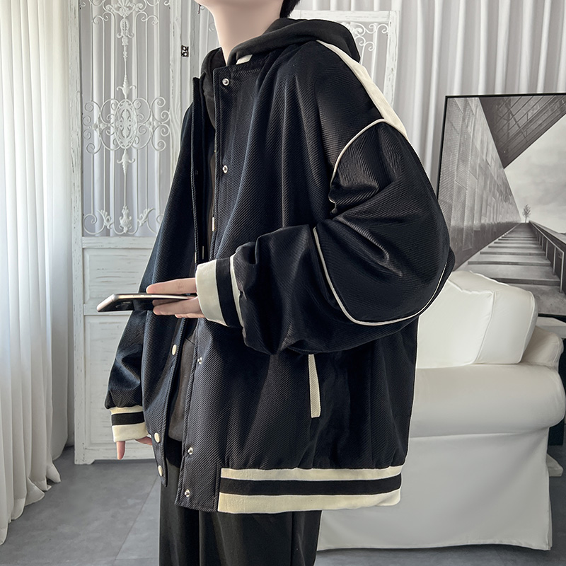 棒球服夾克春秋設計感拼接vibe潮流外套男寬鬆高街情侶款休閒上衣