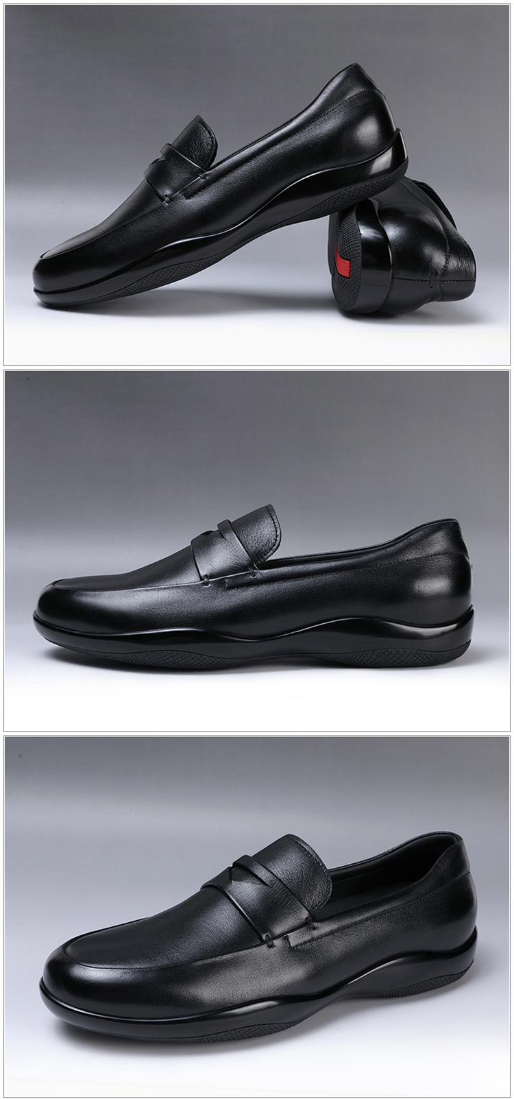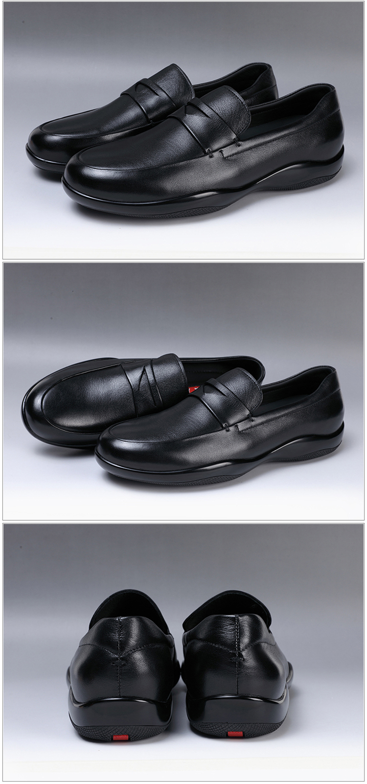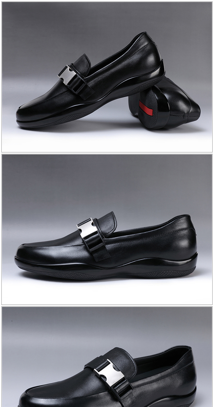 新款歐洲站外貿真皮高端軟牛皮男鞋子p家商務休閒大牌套腳板鞋